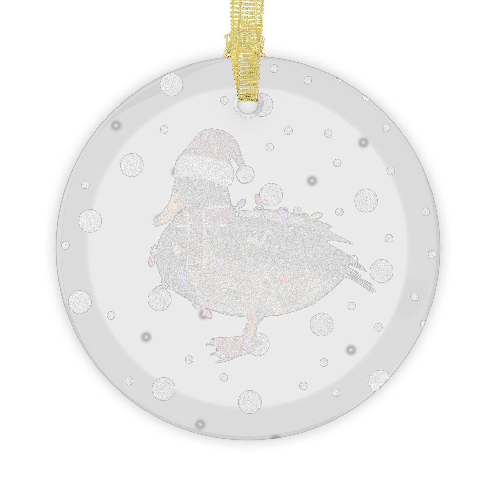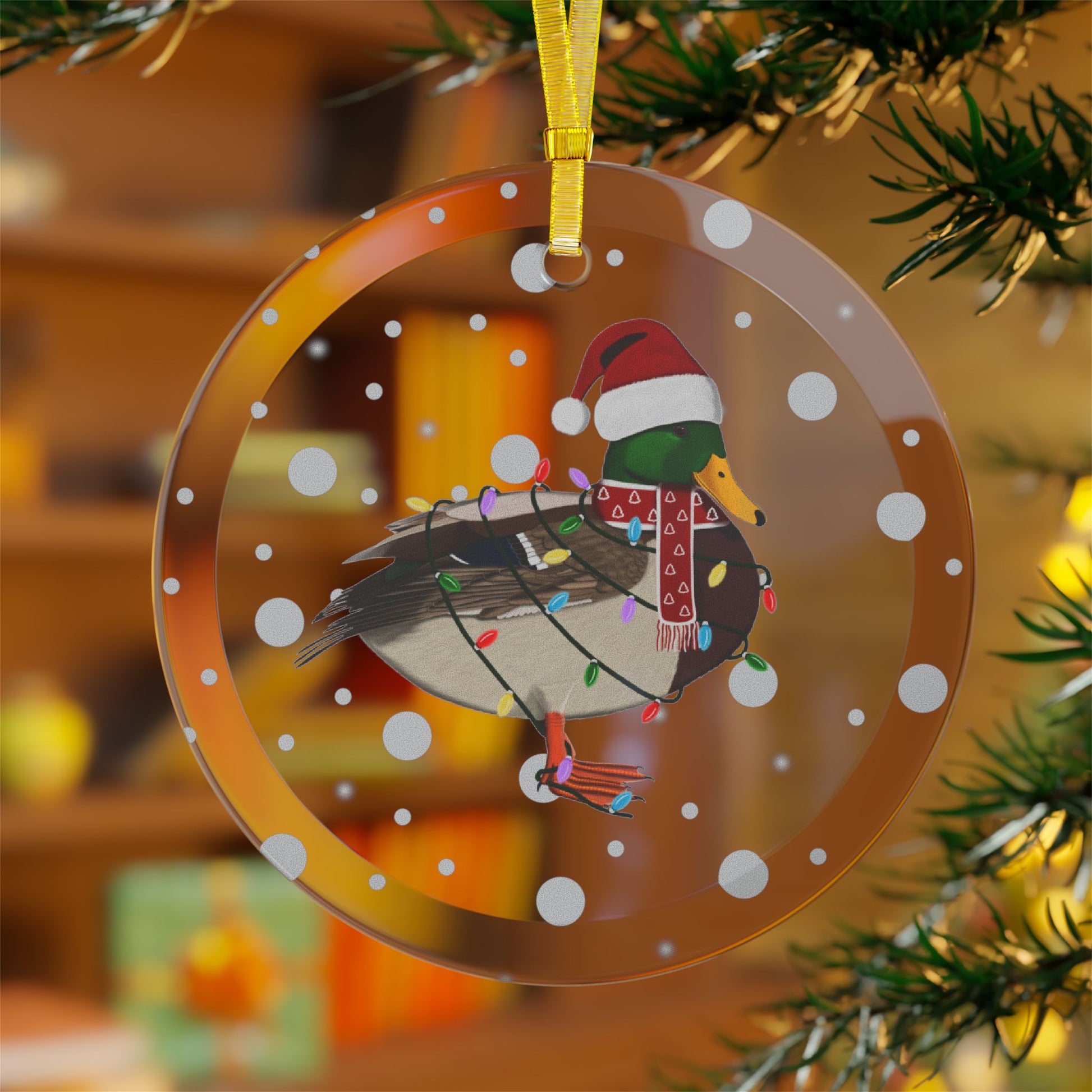 Mallard as Santa Claus with Fairy Lights Christmas Glass Ornament