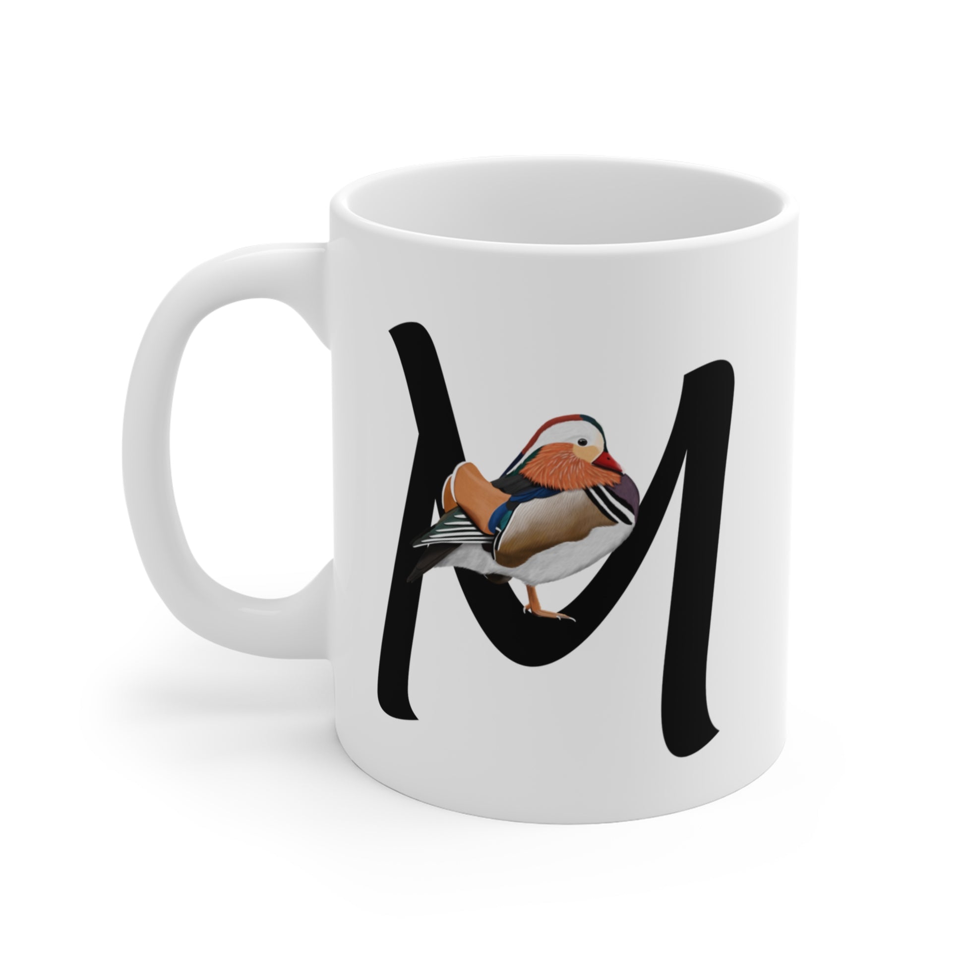 Mandarin Duck Letter M Bird Ceramic Mug 11oz White