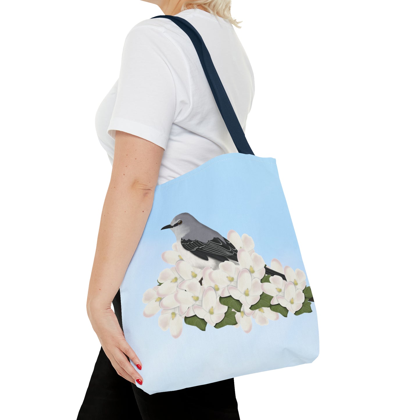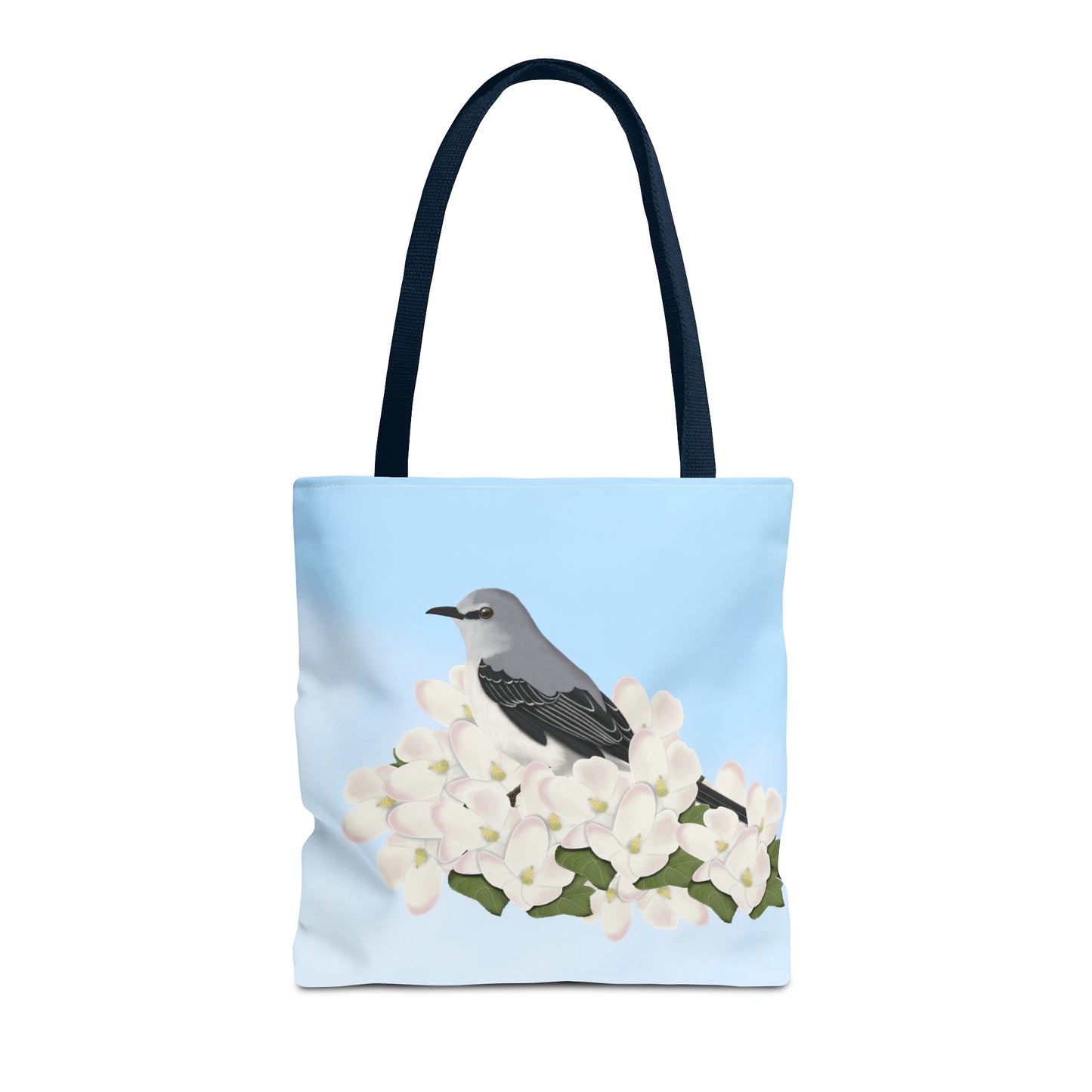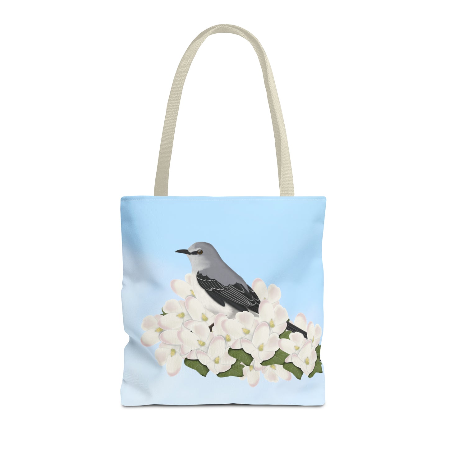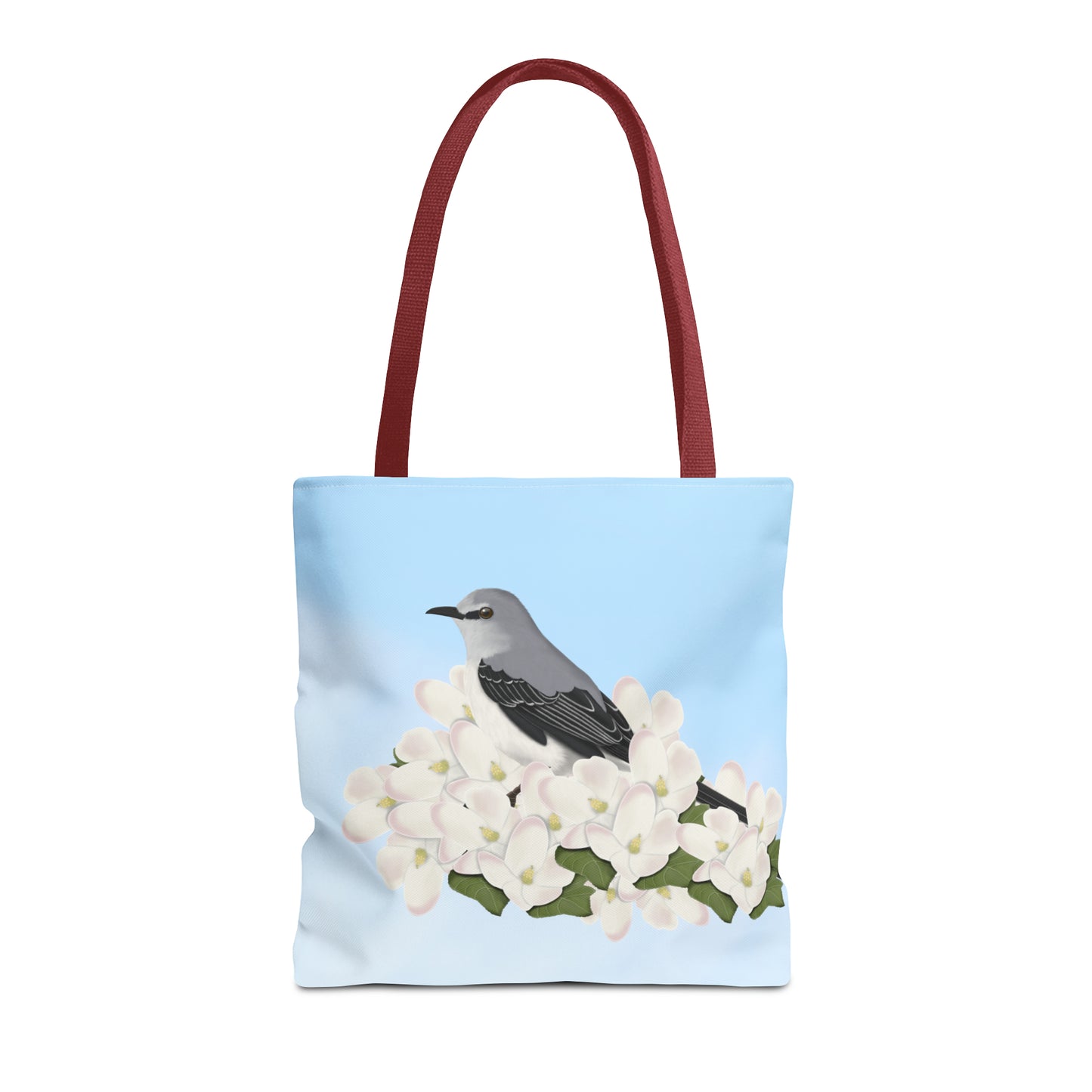 Mockingbird in Spring Blossoms Bird Tote Bag 16"x16"