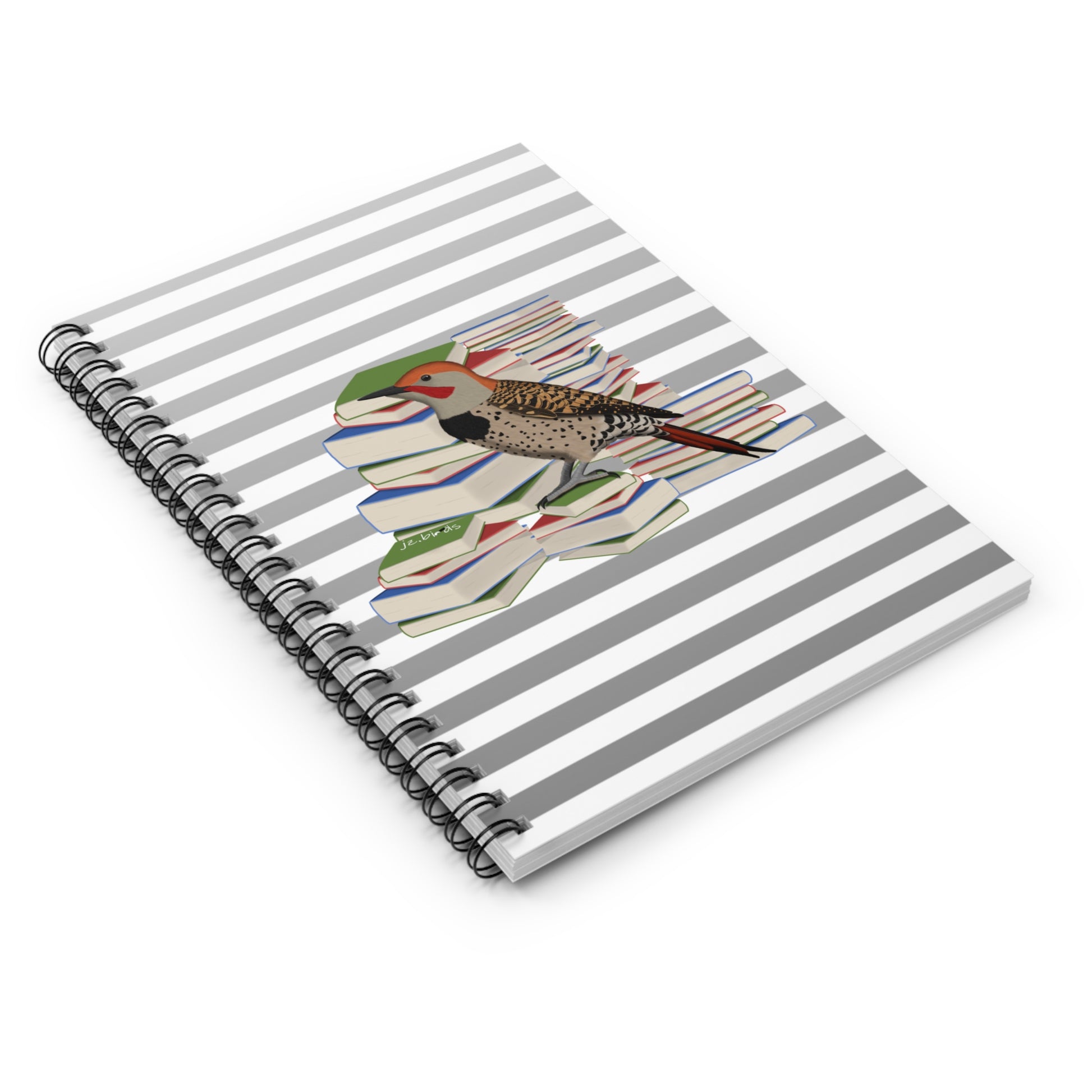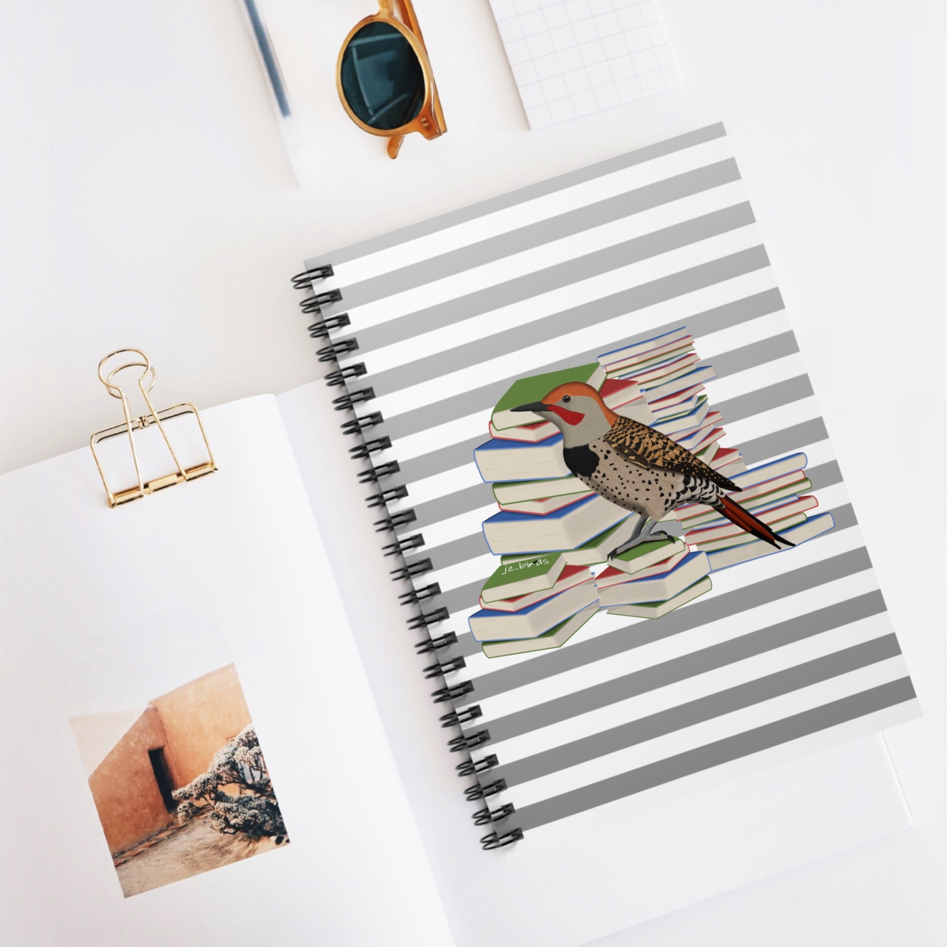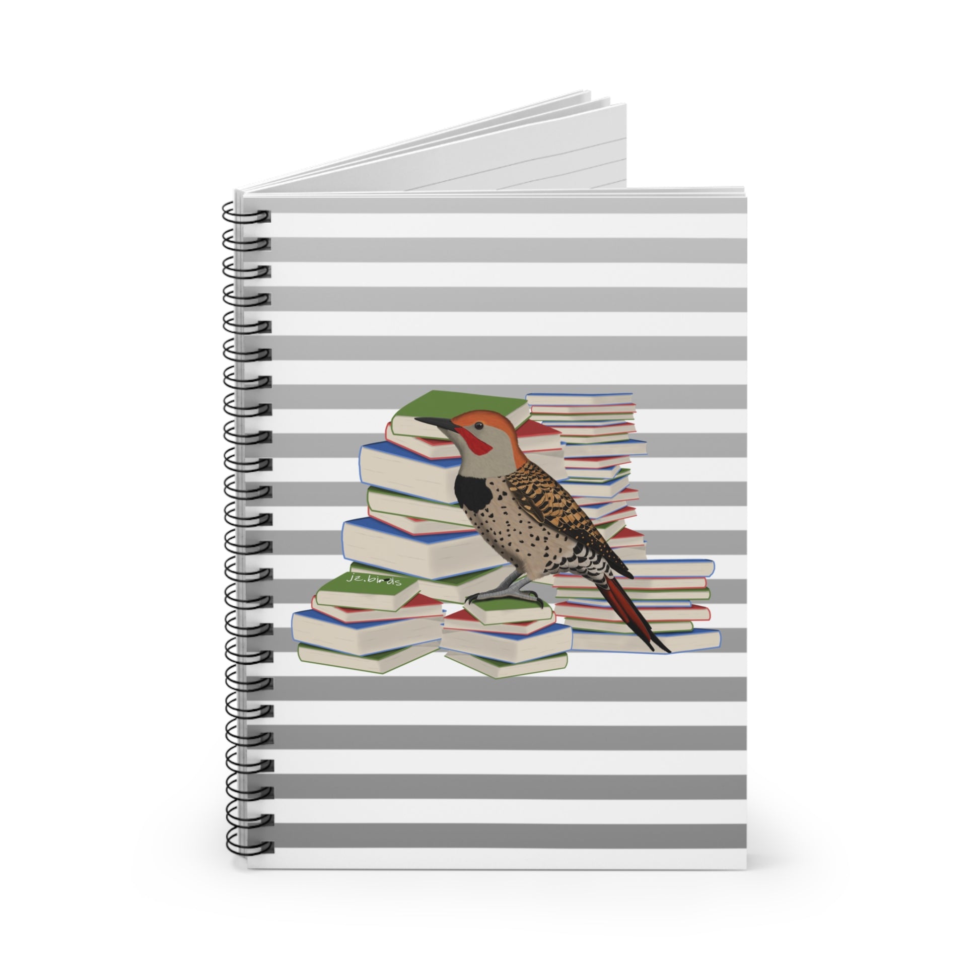 Northern Flicker Bird with Books Birdlover Bookworm Spiral Notebook Ruled Line 6" x 8"