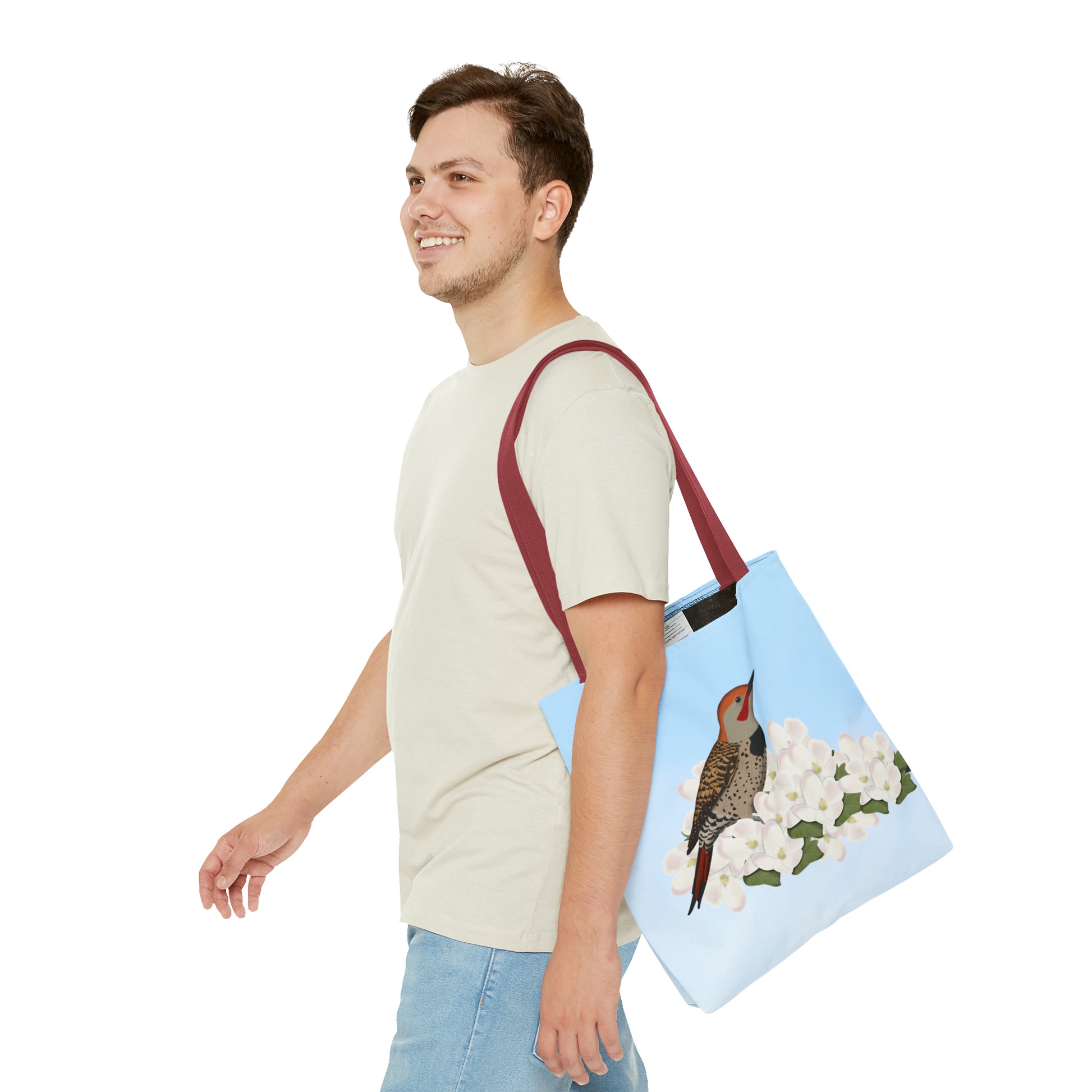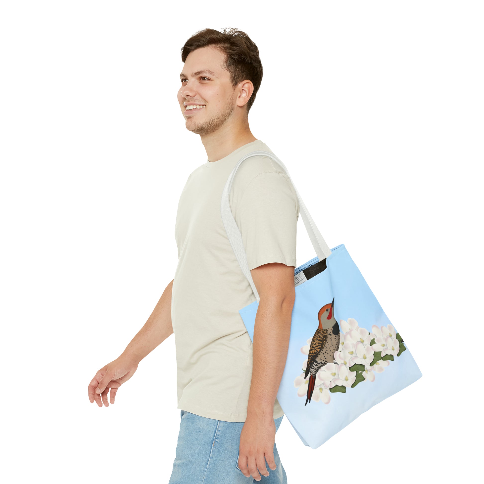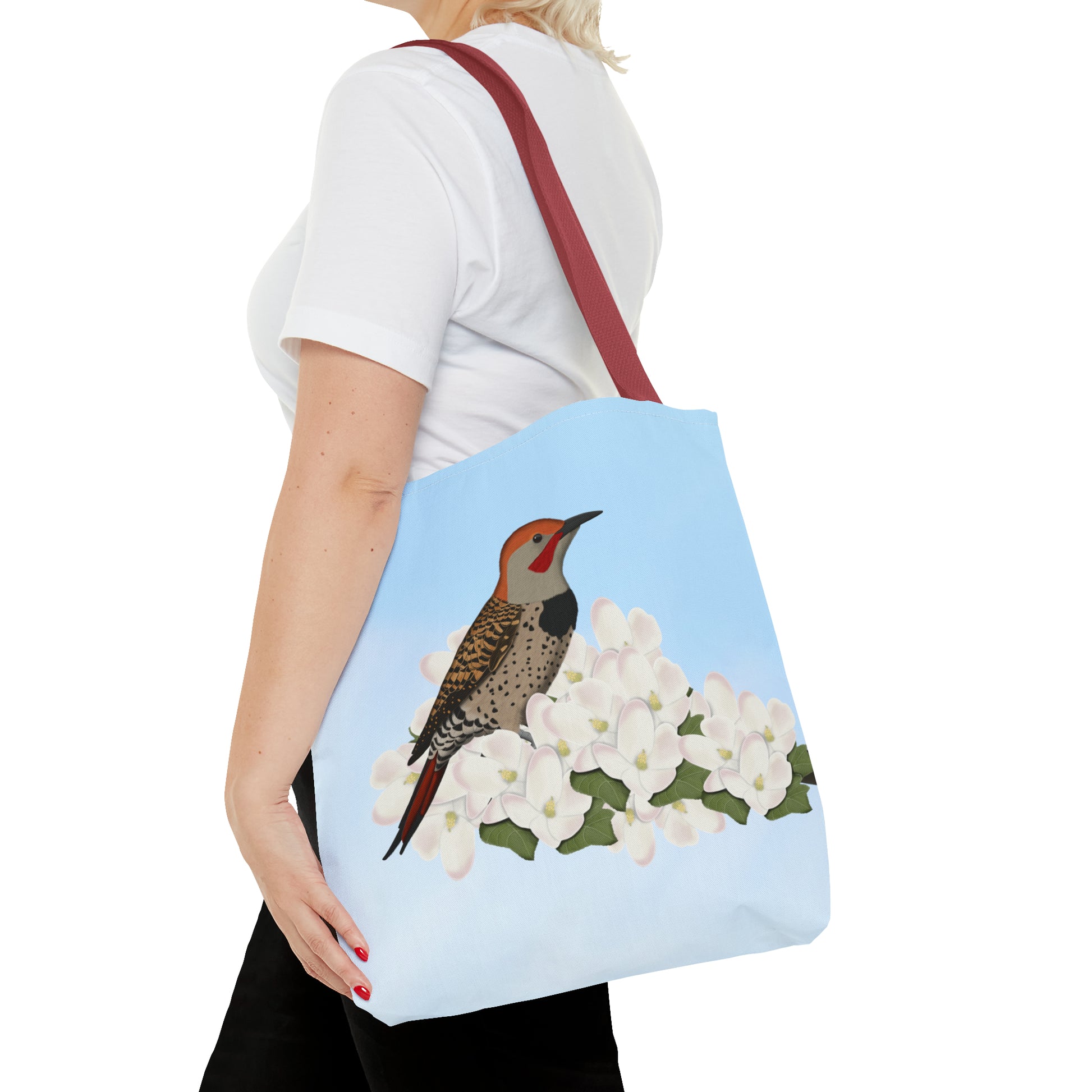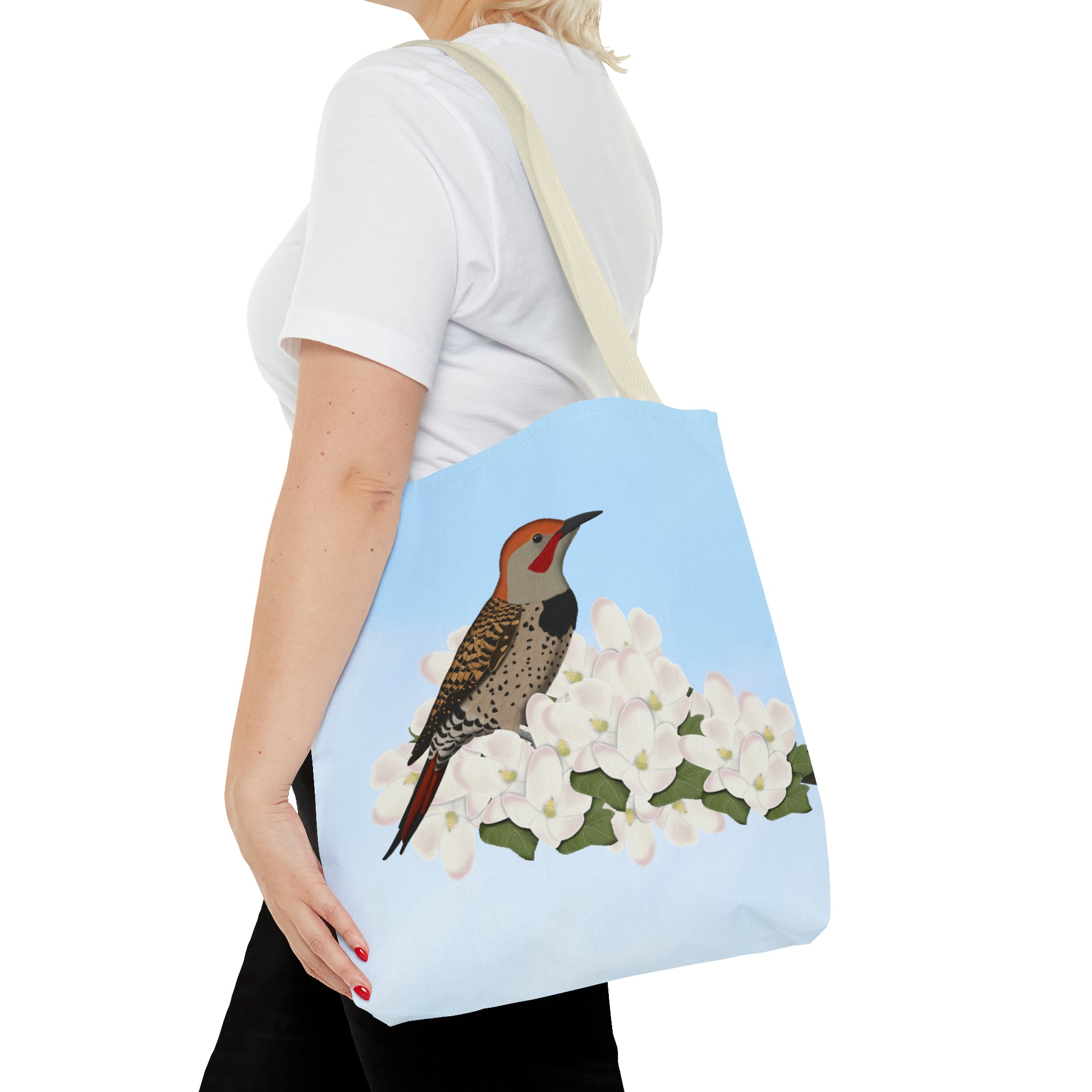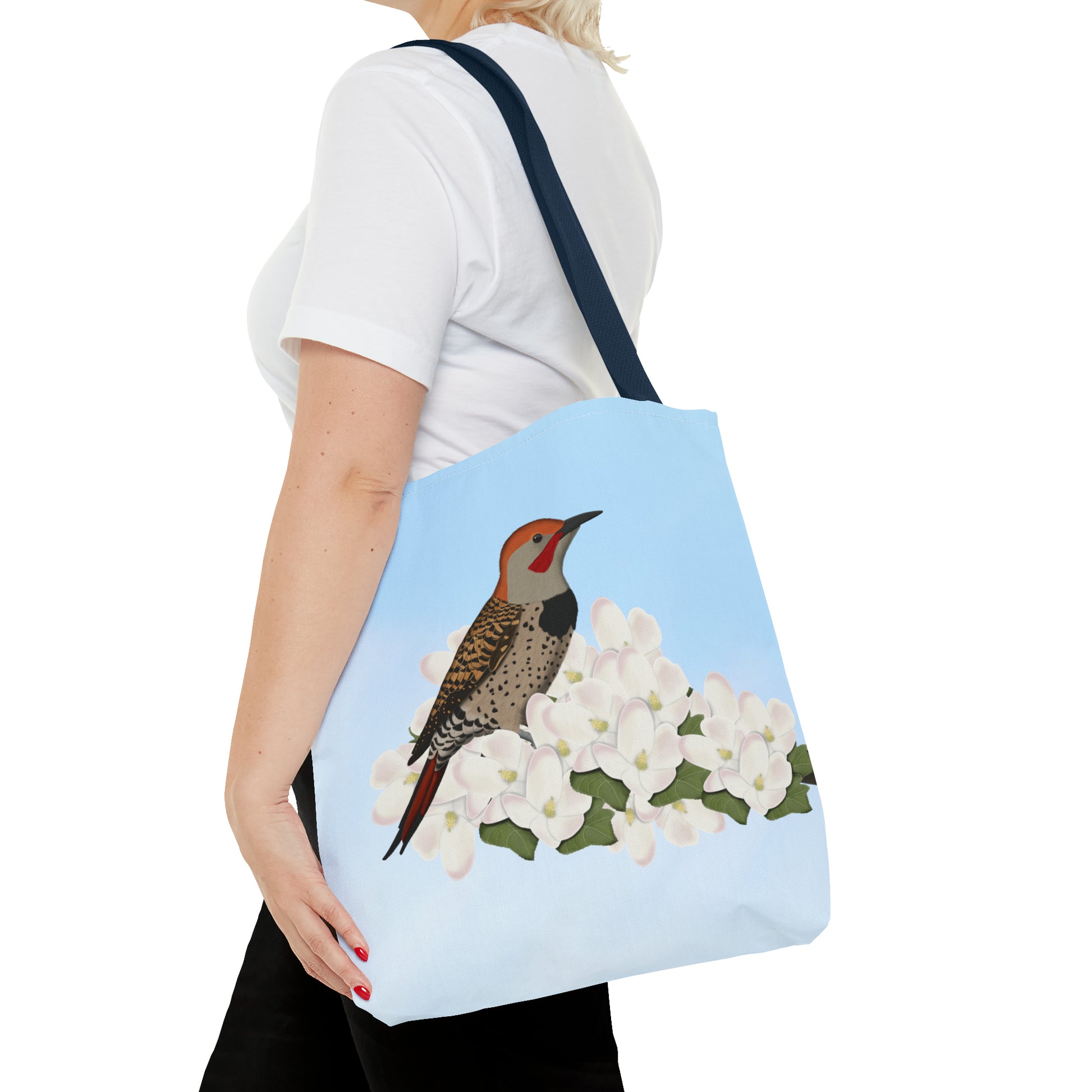Northern Flicker in Spring Blossoms Bird Tote Bag 16"x16"
