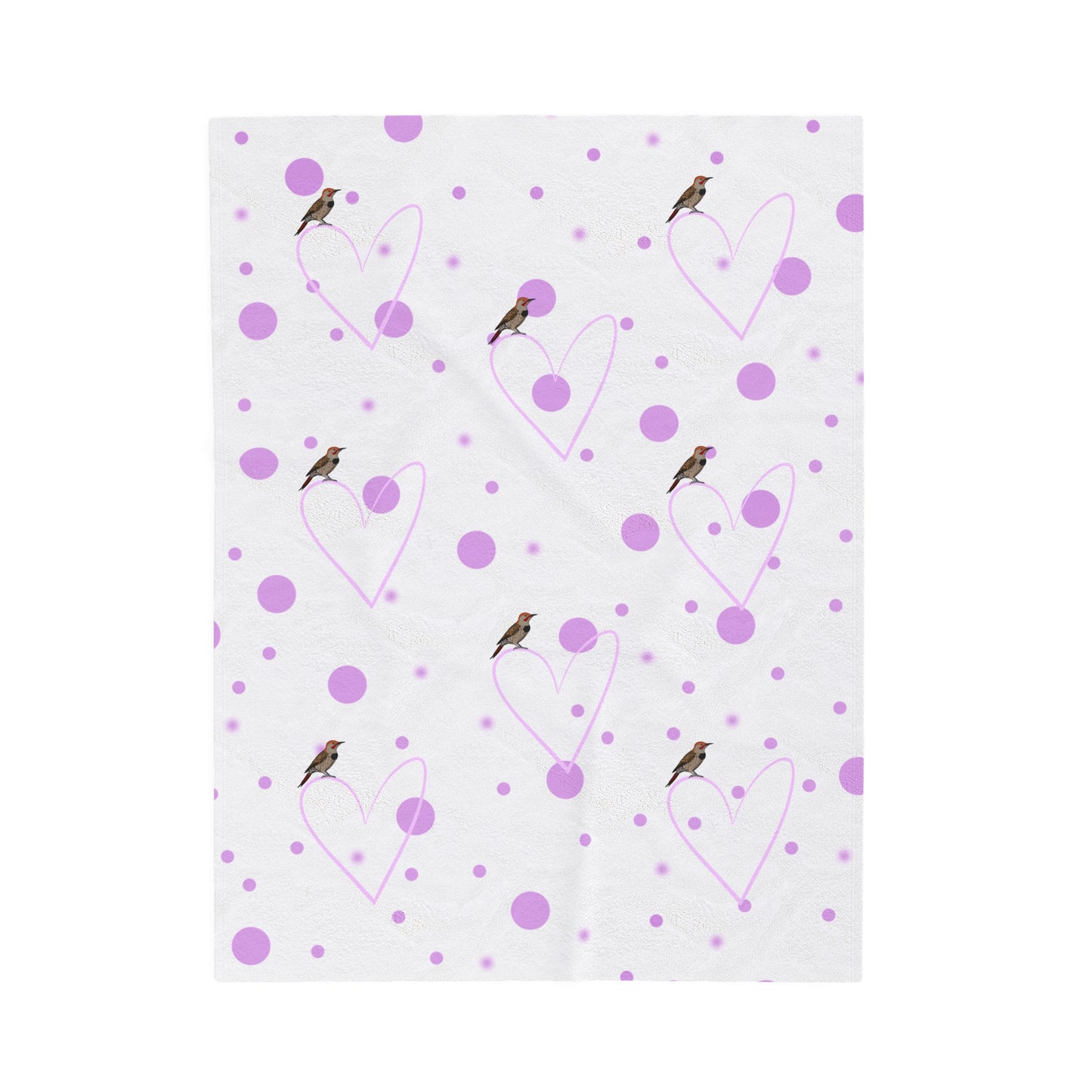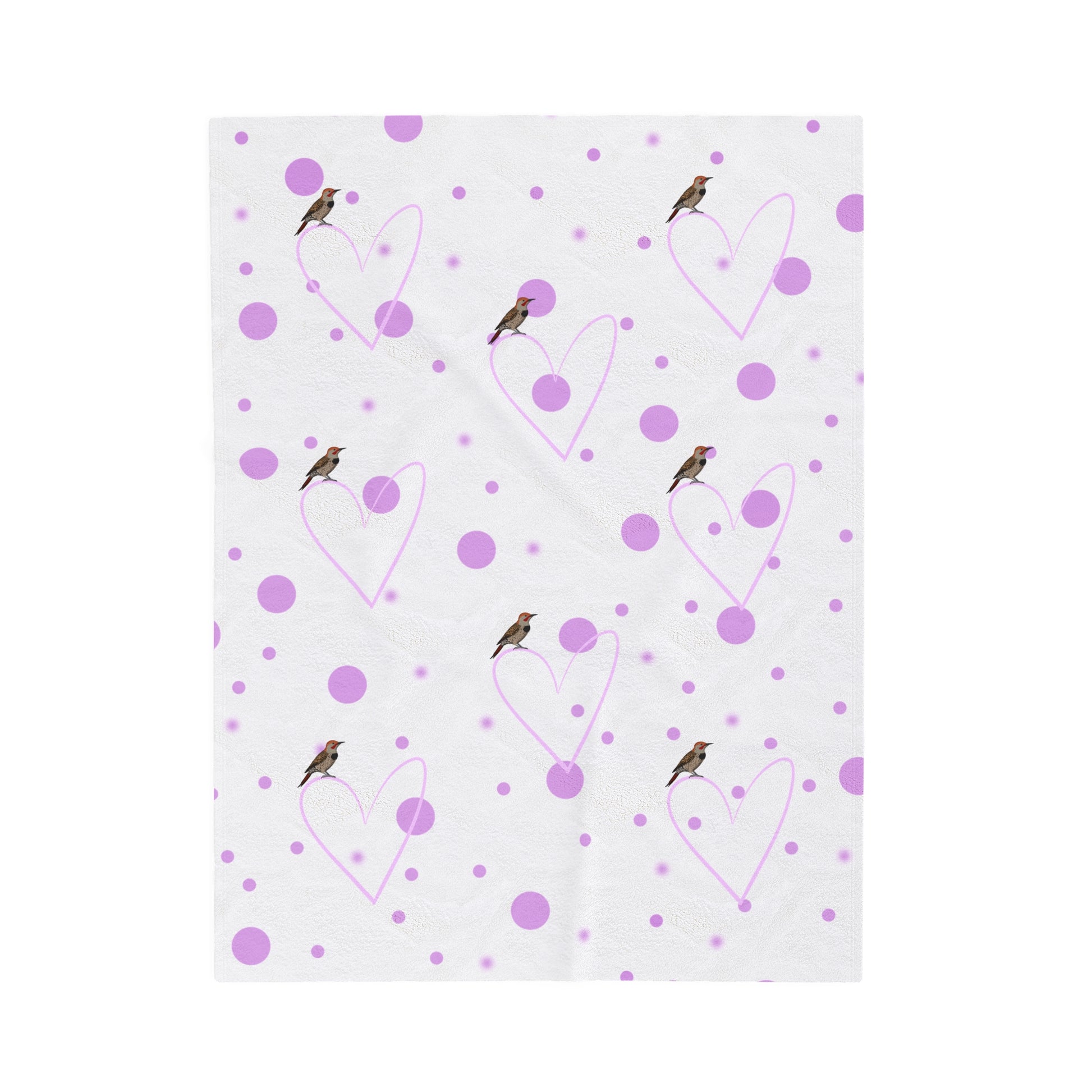 Northern Flicker Valentine's Day Bird Velveteen Plush Blanket Pink Hearts and Dots