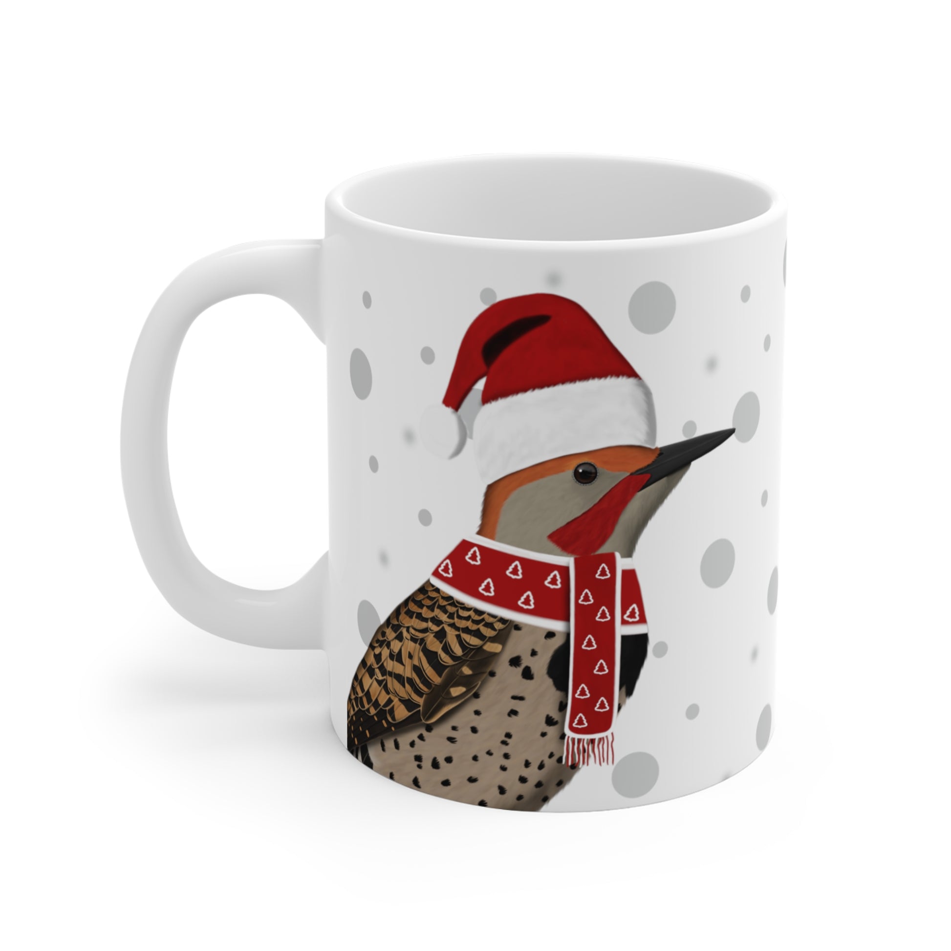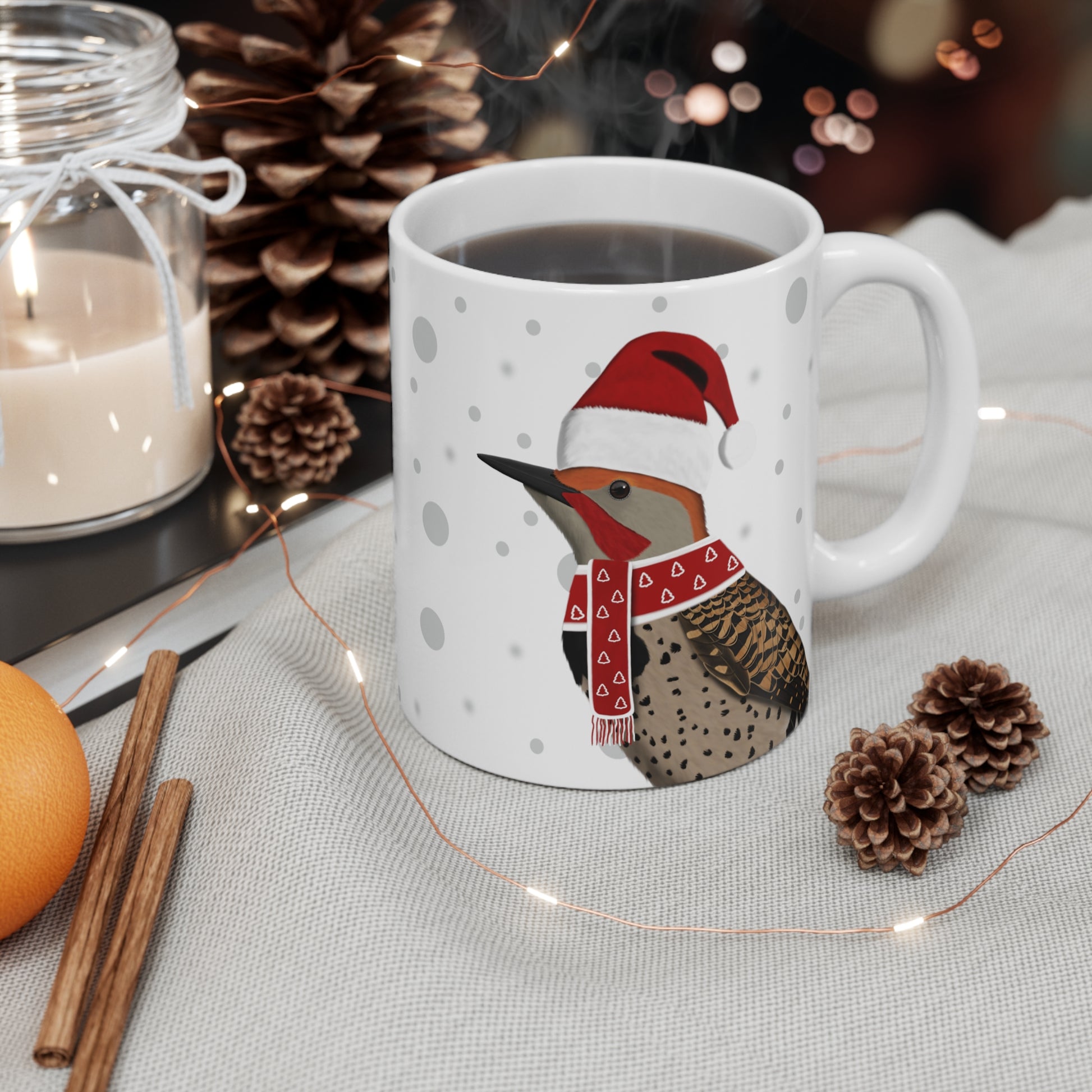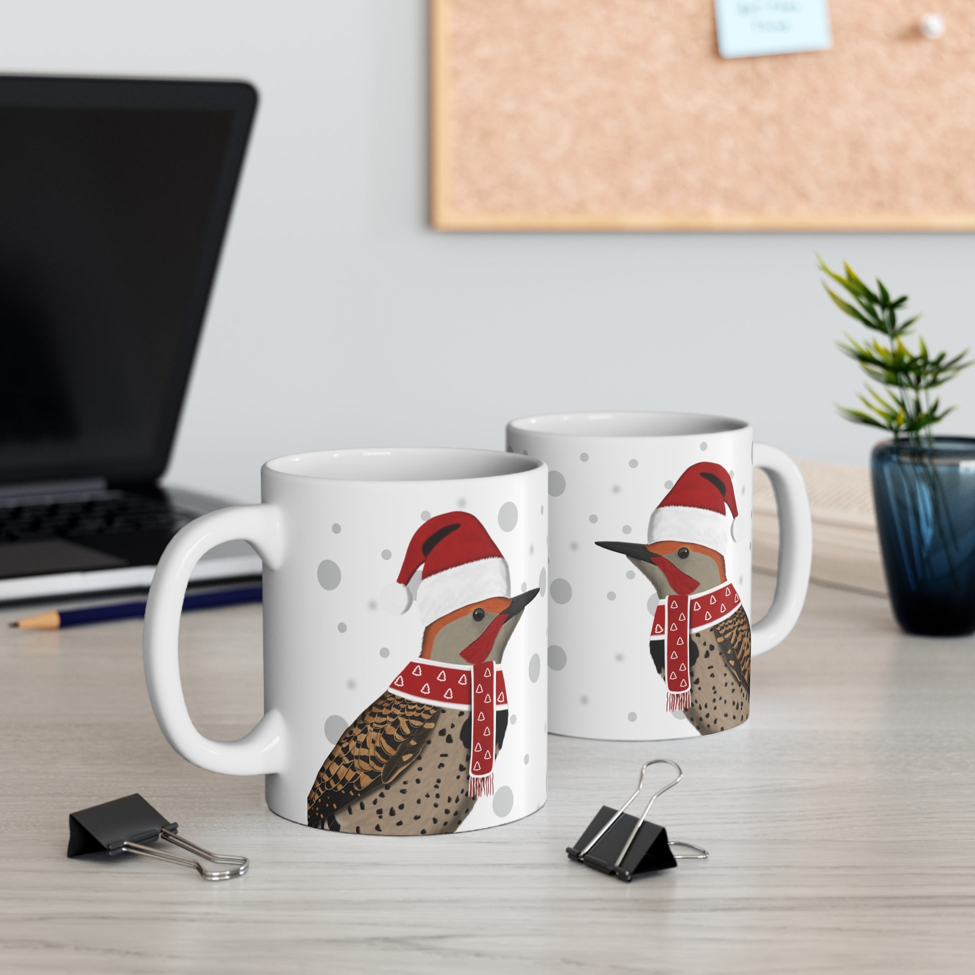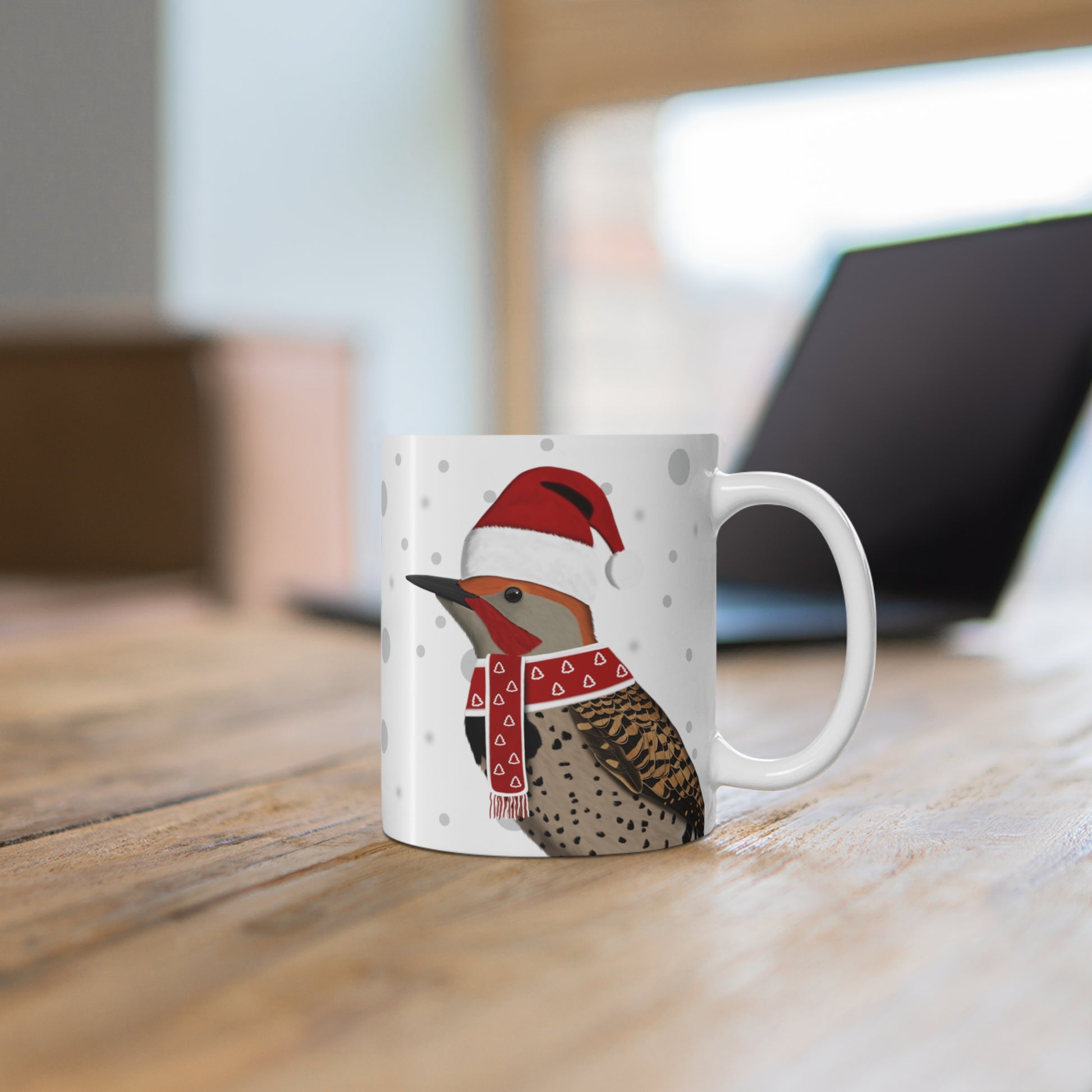 Add a festive touch to your Christmas morning routine with our Northern Flicker bird ceramic mug. The charming Northern Flicker with a red santa hat and scarf design will bring joy to your holidays. Enjoy your favorite beverage in this 11oz ceramic mug, perfect for cozying up by the fireplace.