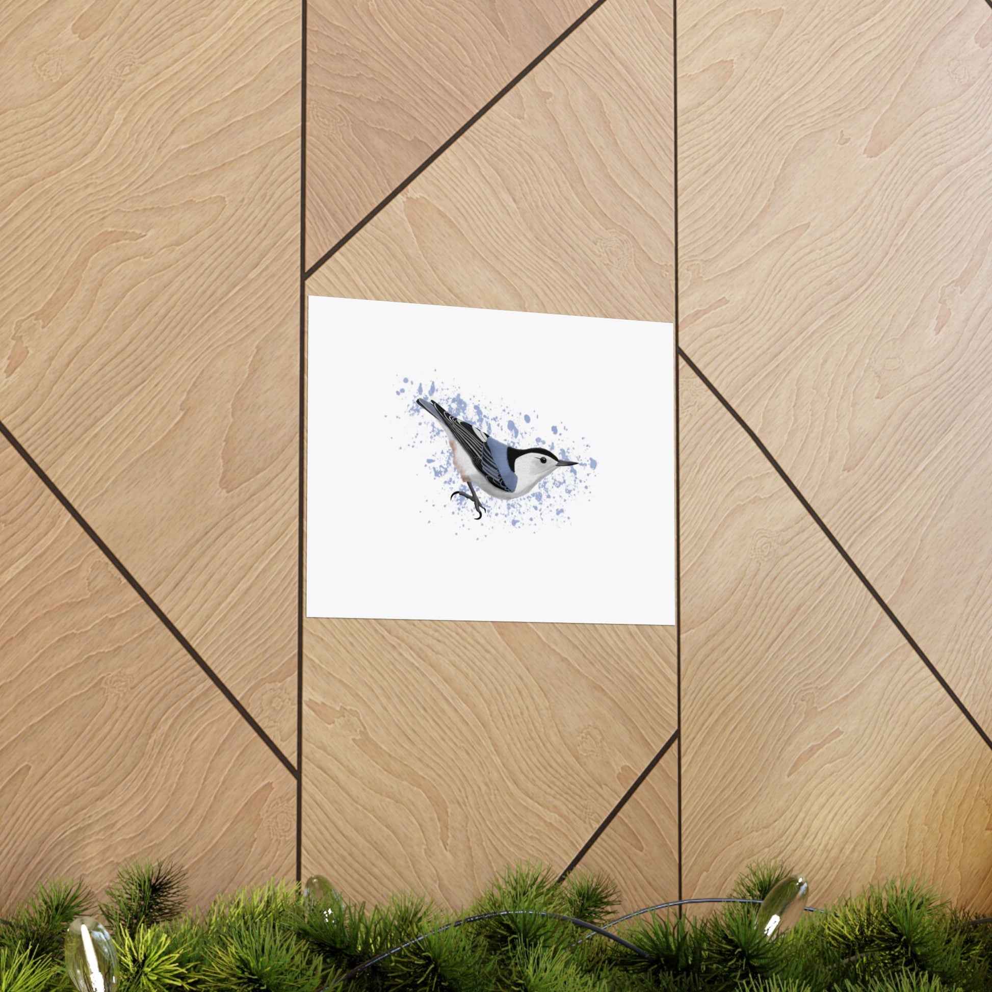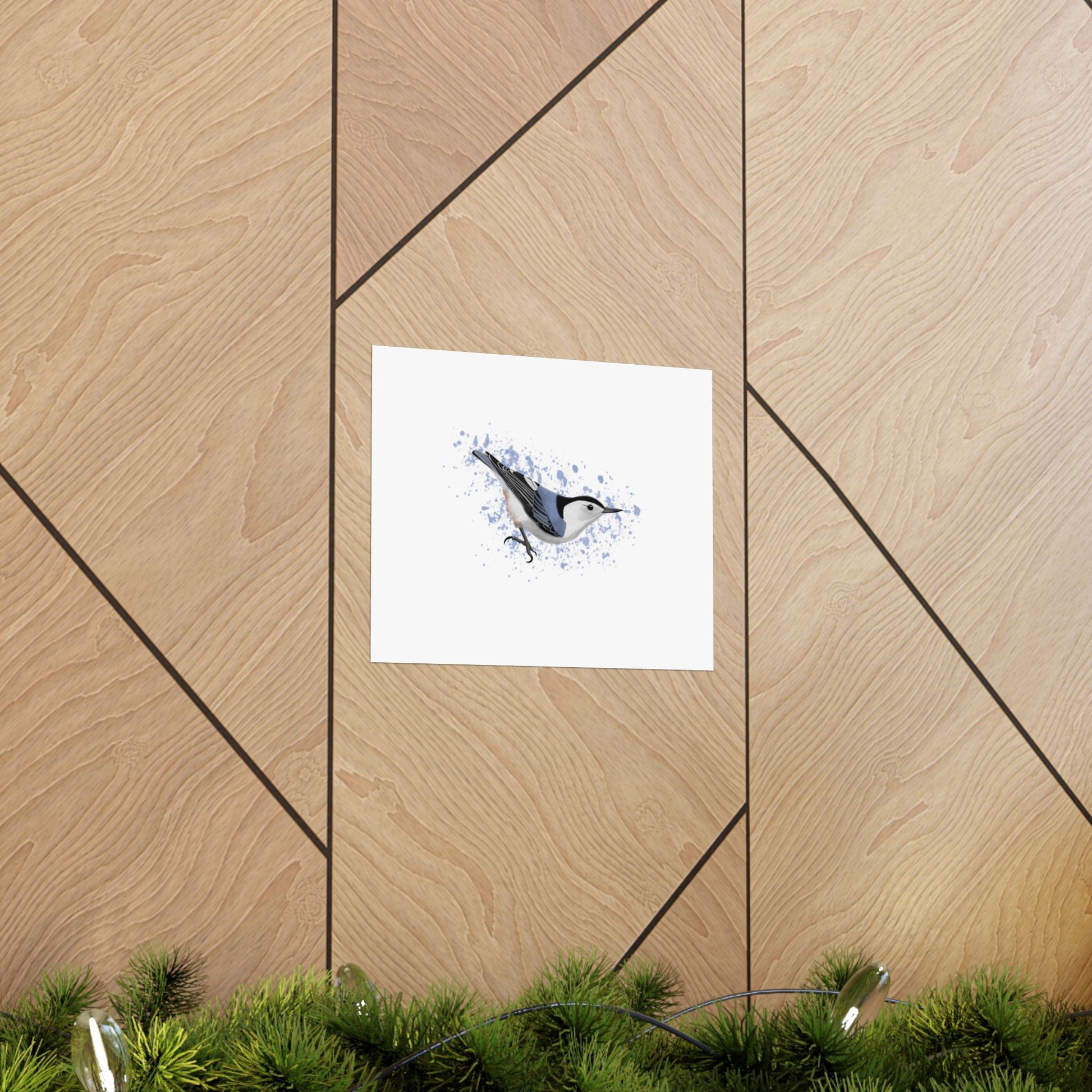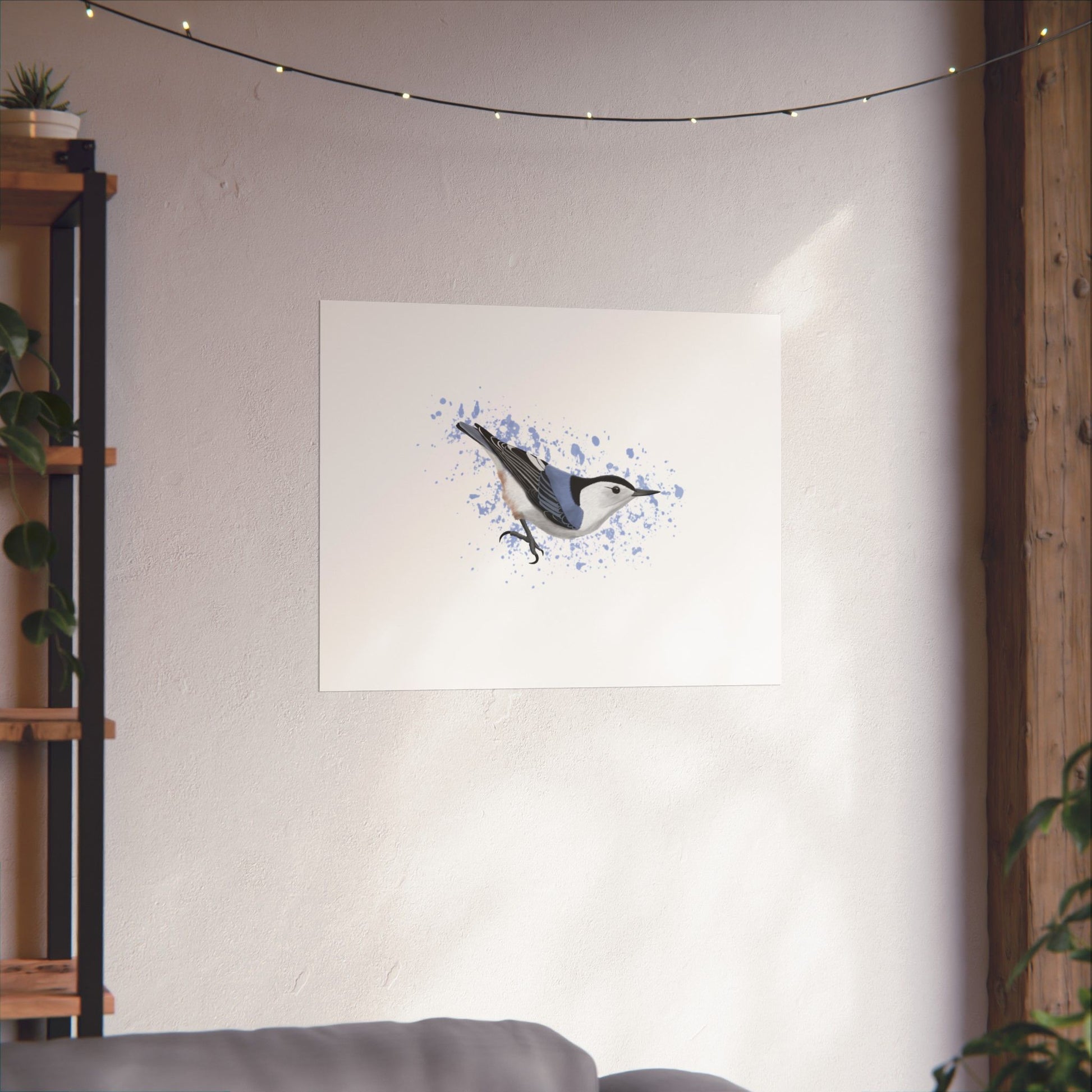 Enhance your home decor with our high-quality matte poster featuring beautiful backyard birds. Crafted with precision and detail, our Nuthatch poster is perfect for bird lovers and brings a touch of nature indoors. Enjoy the calming presence of these birds in your home.