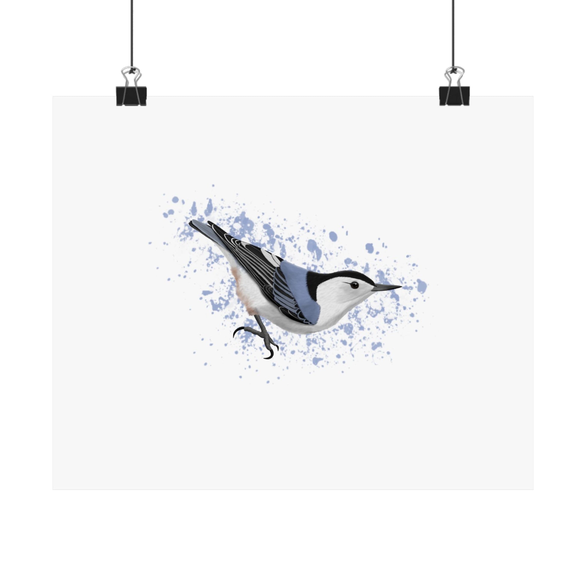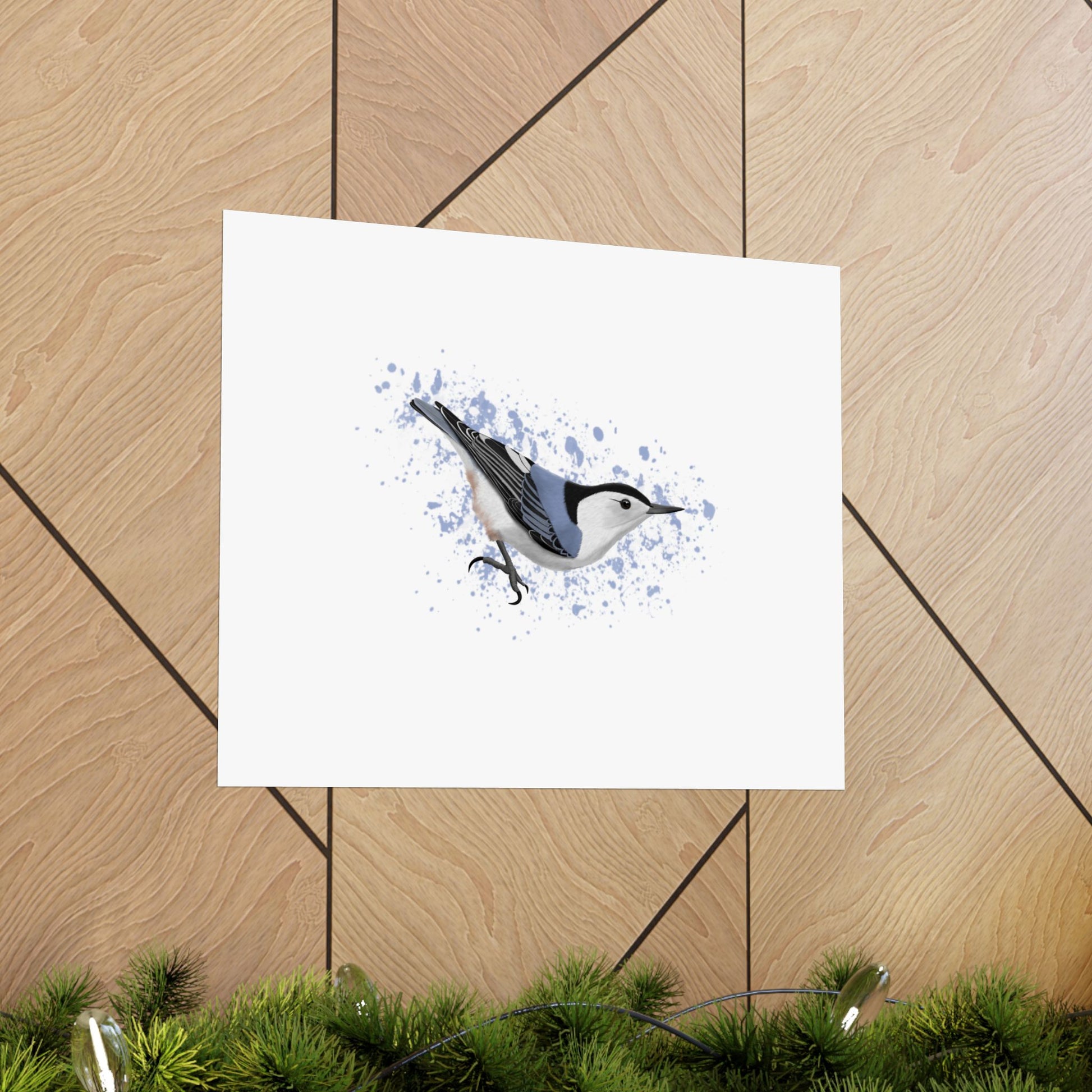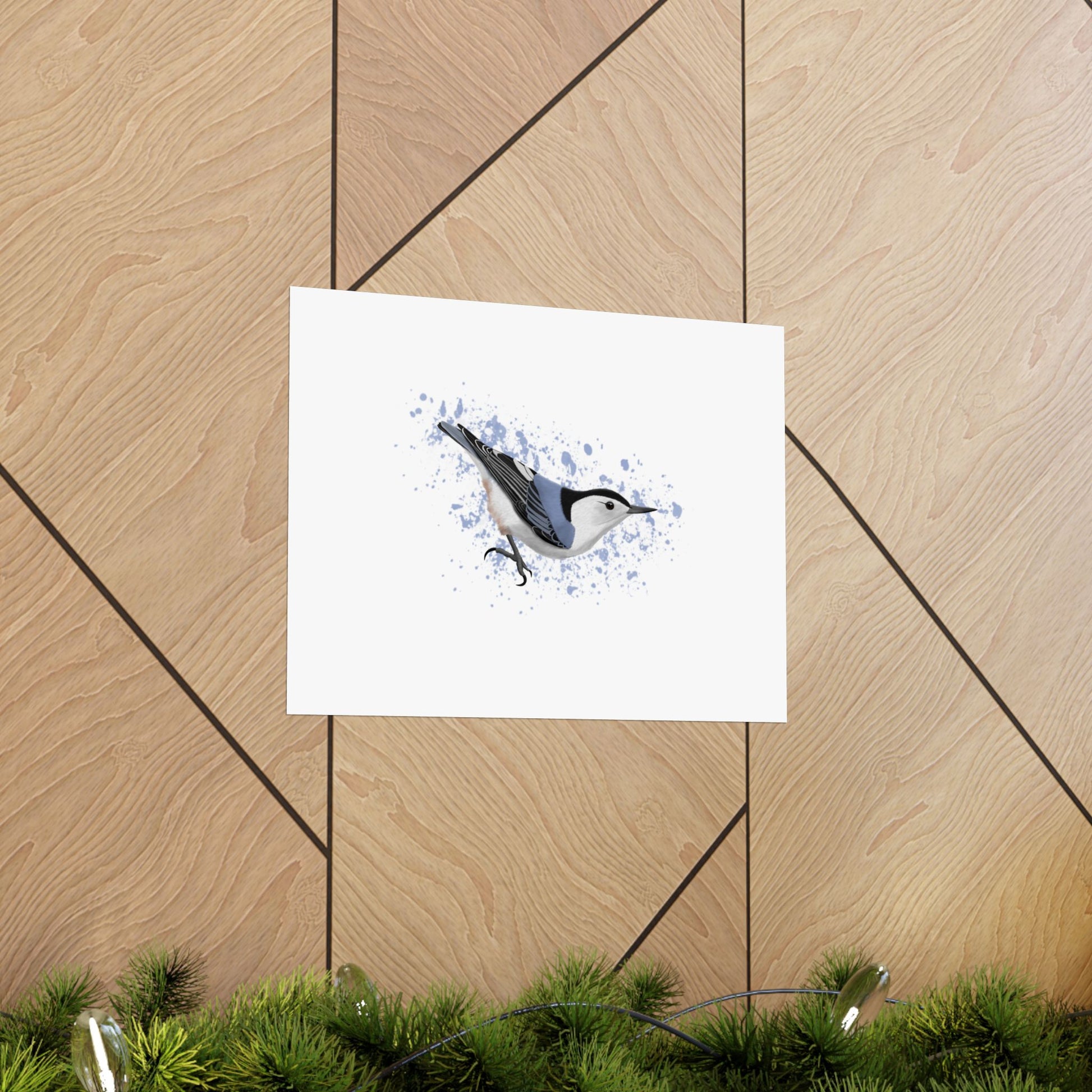 Enhance your home decor with our high-quality matte poster featuring beautiful backyard birds. Crafted with precision and detail, our Nuthatch poster is perfect for bird lovers and brings a touch of nature indoors. Enjoy the calming presence of these birds in your home.