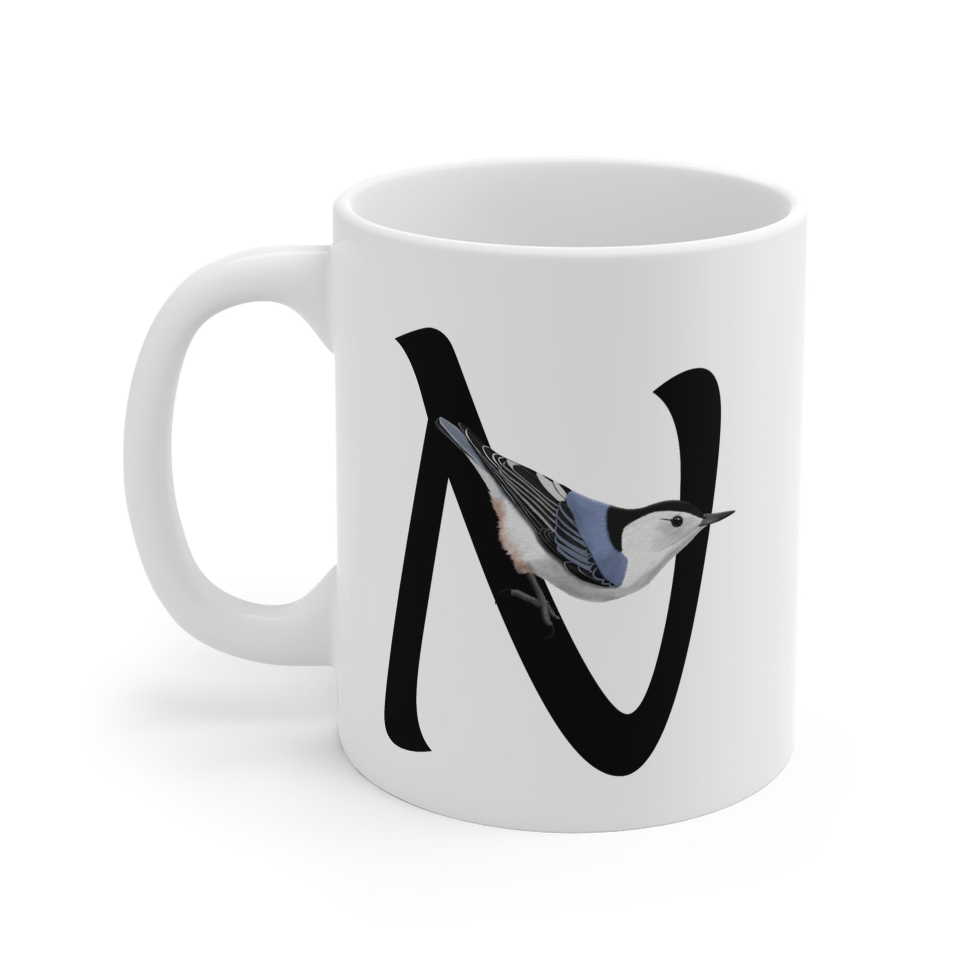 Nuthatch Letter N Bird Ceramic Mug 11oz White