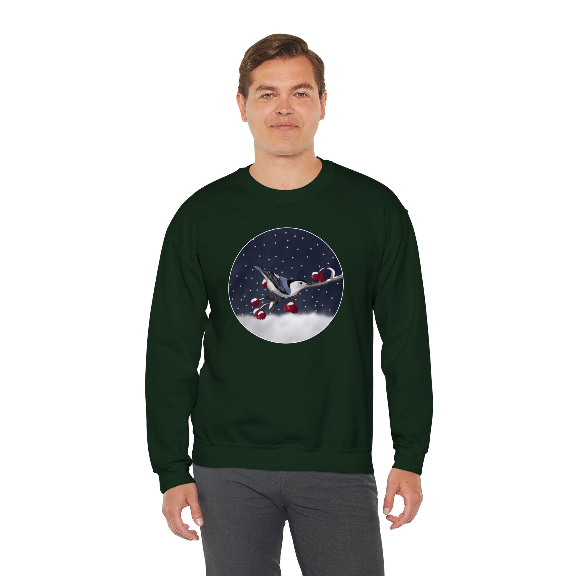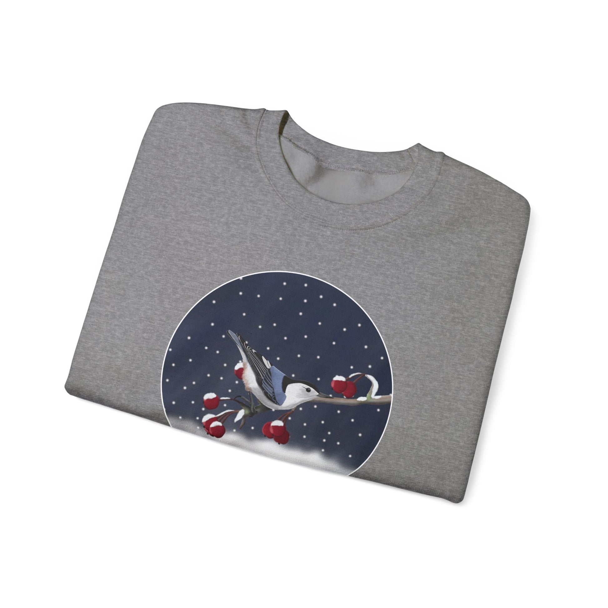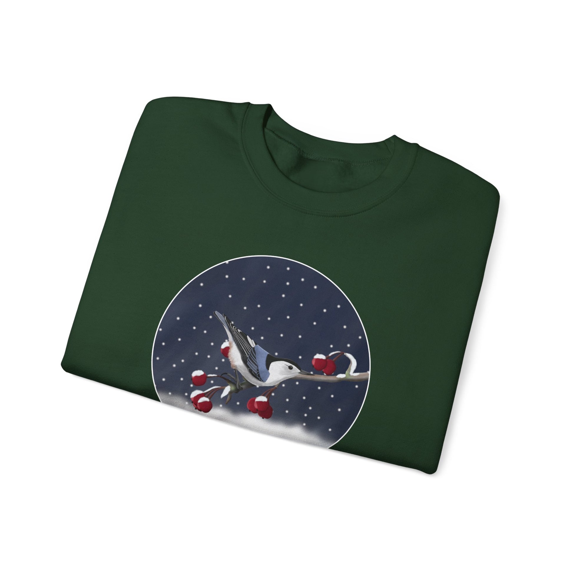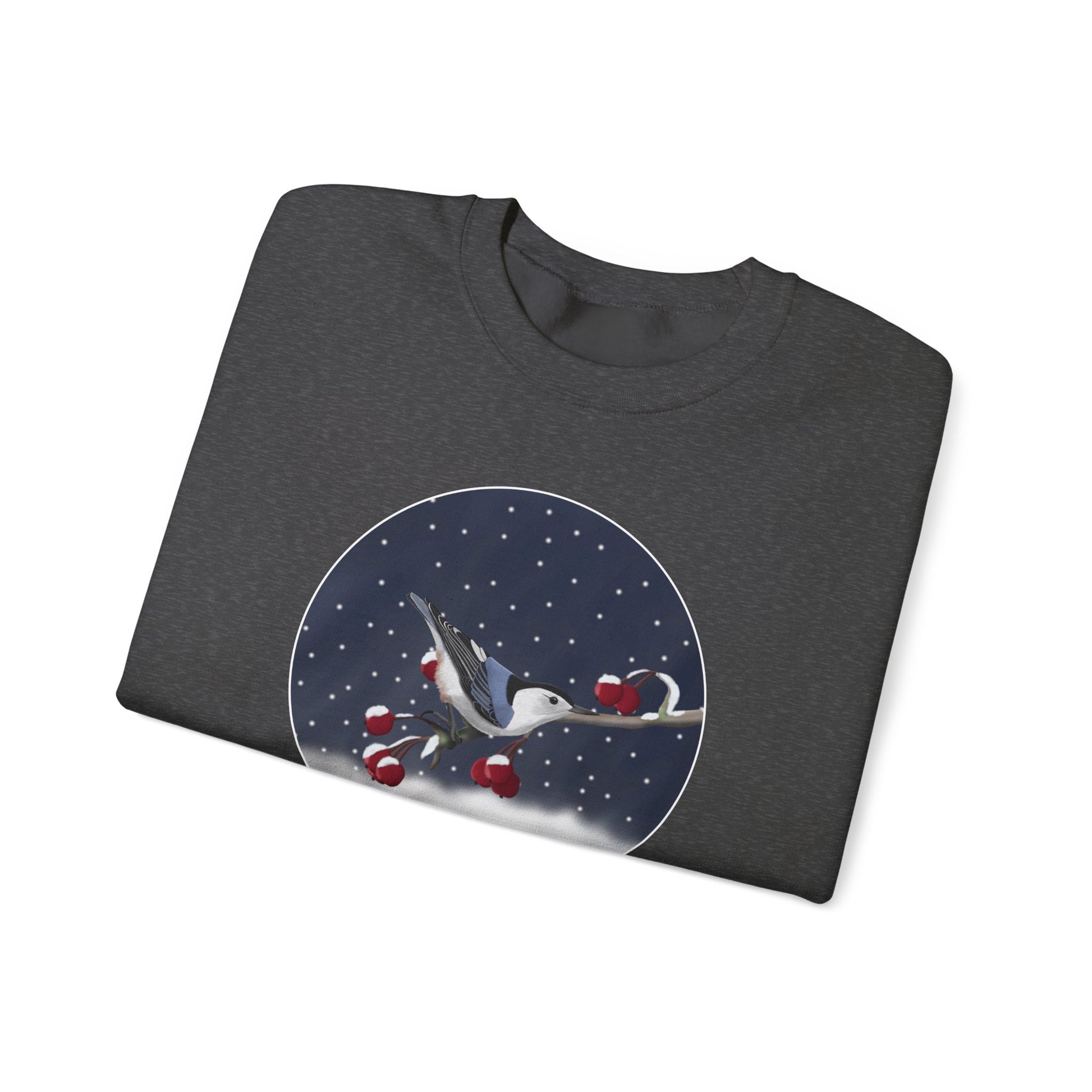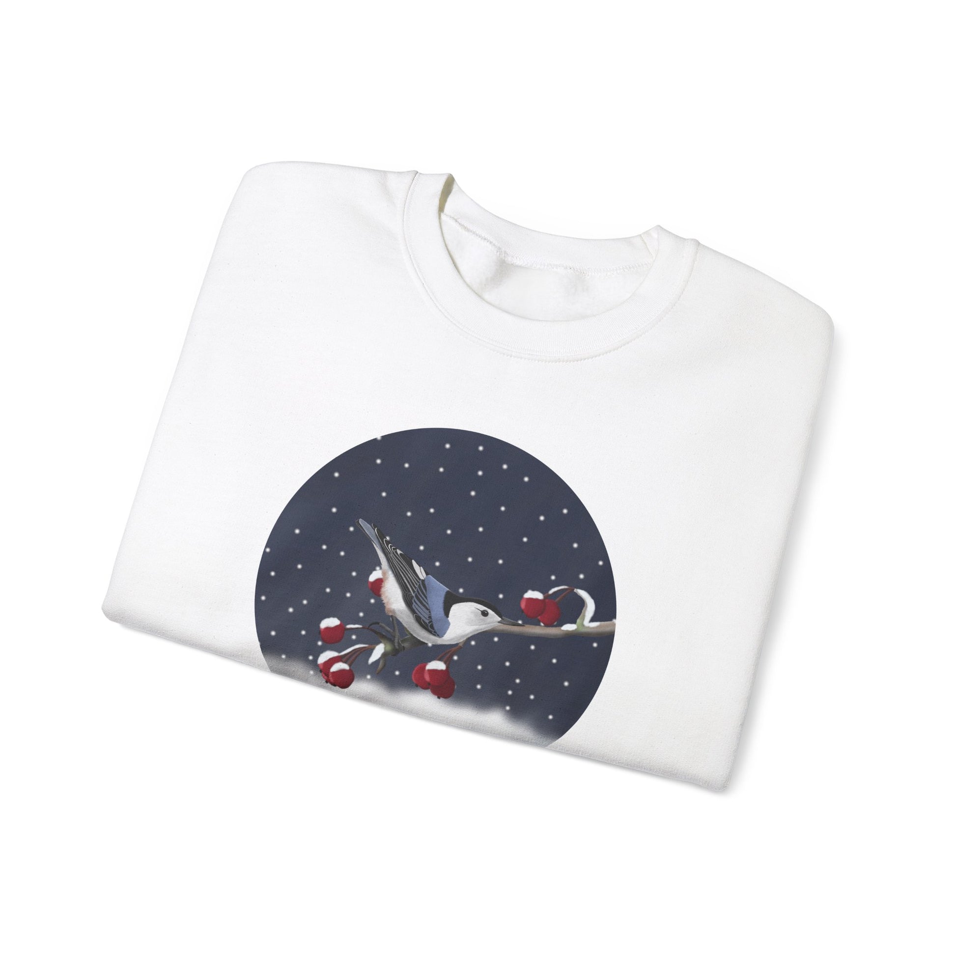 Nuthatch on a Winter Branch Christmas Bird Sweatshirt