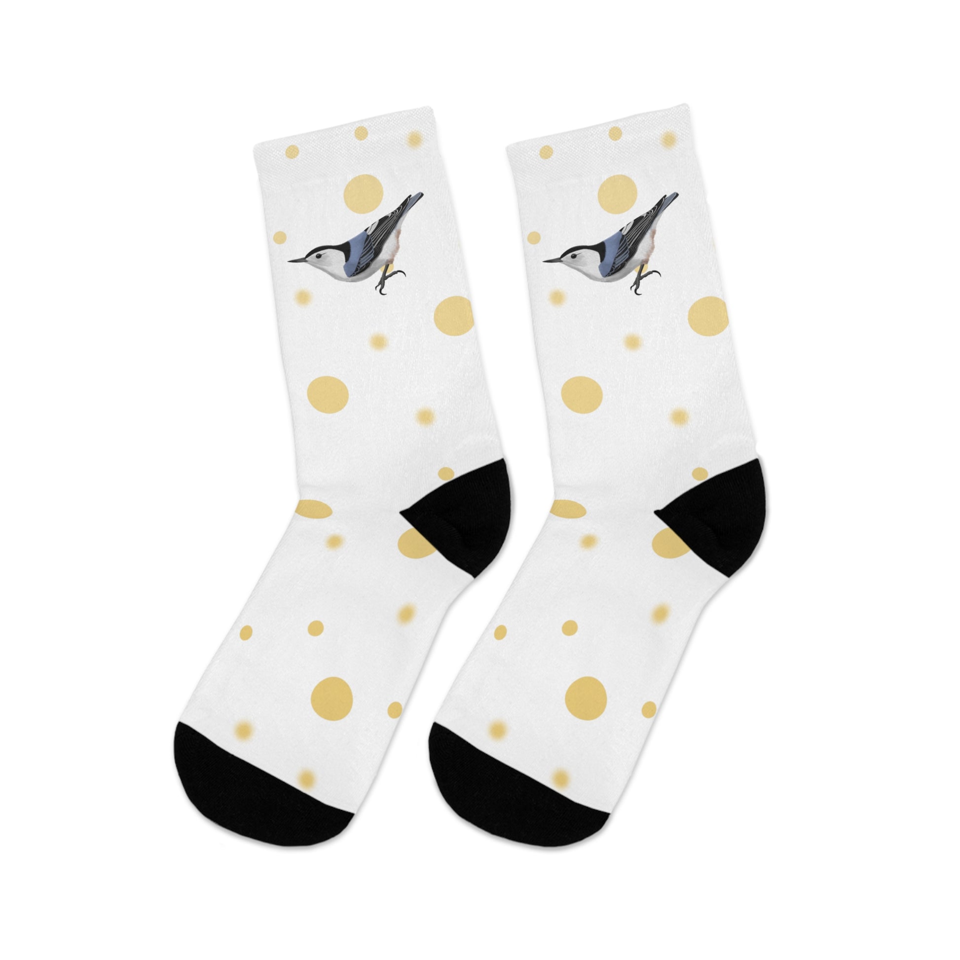 Nuthatch with Golden Dots Birding & Birdwatching Bird Socks White