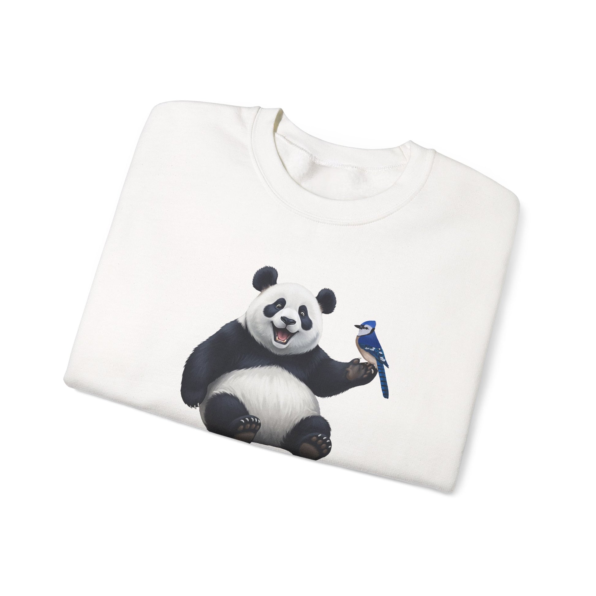 Ready to add some seriously cute and funny vibes to your wardrobe? Our new sweatshirt showcases a happy panda bear with a Blue Jay bird, creating a hilarious graphic design that's simply irresistible. This isn't just any animal sweatshirt; it's a statement piece for anyone who loves a good laugh and adorable animals and birds.