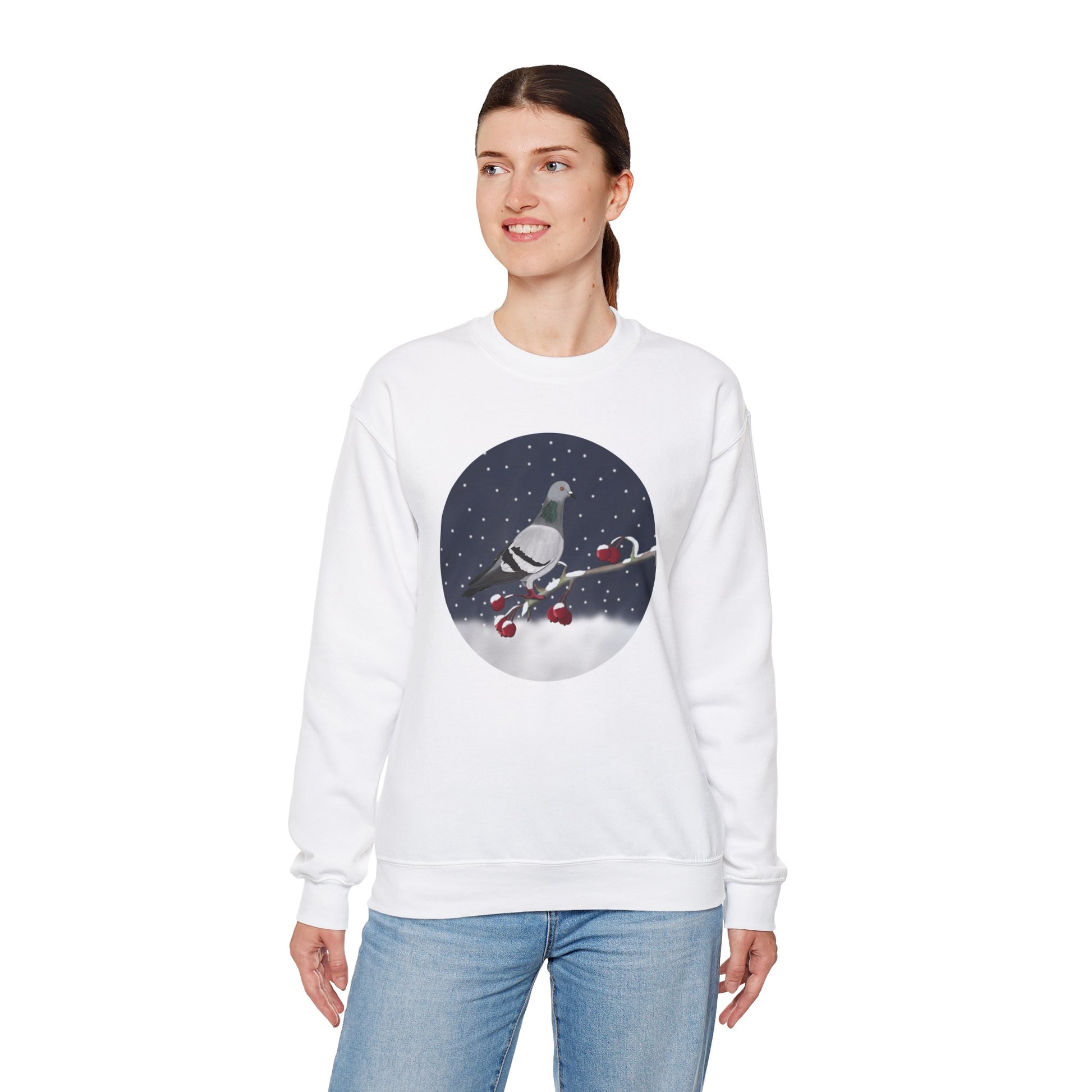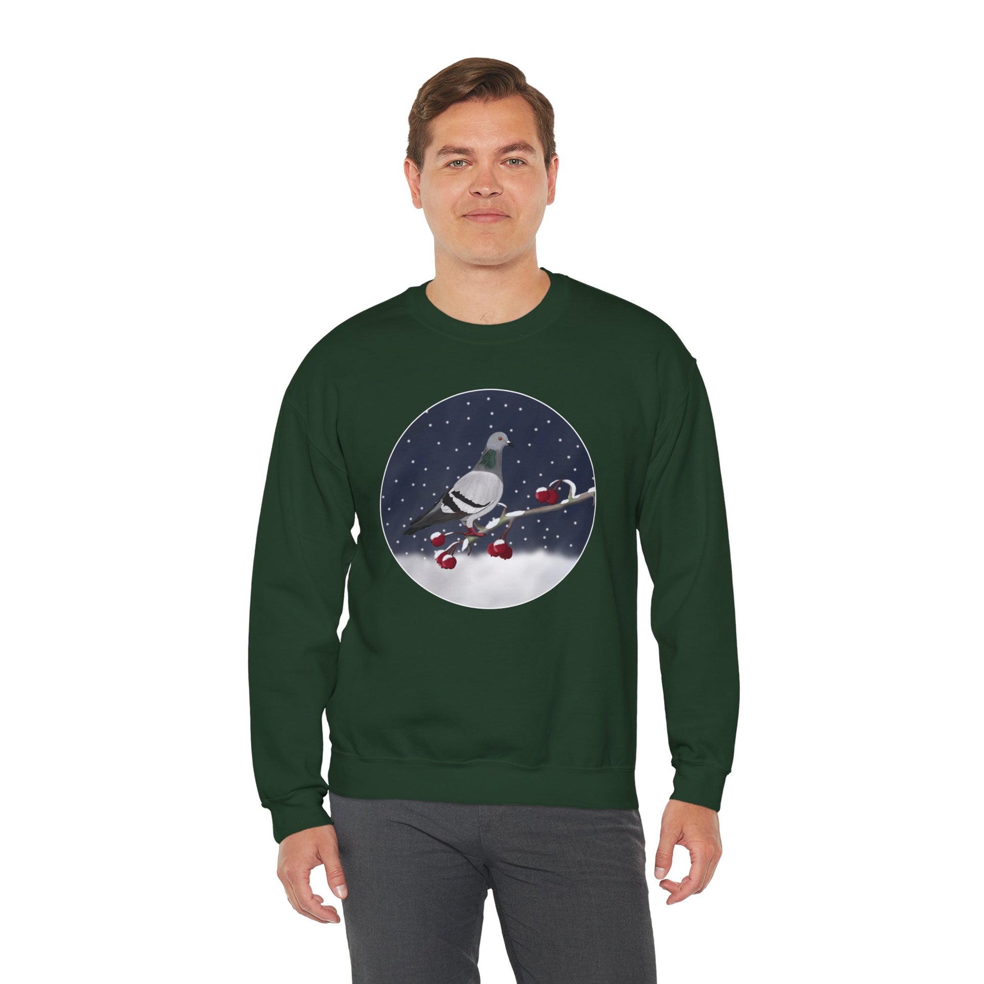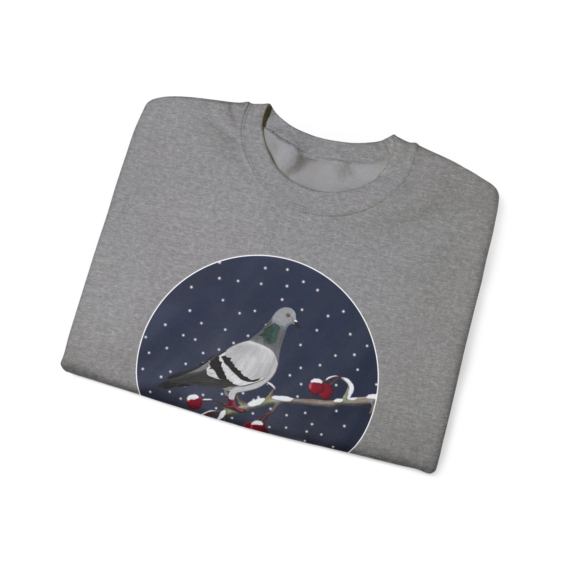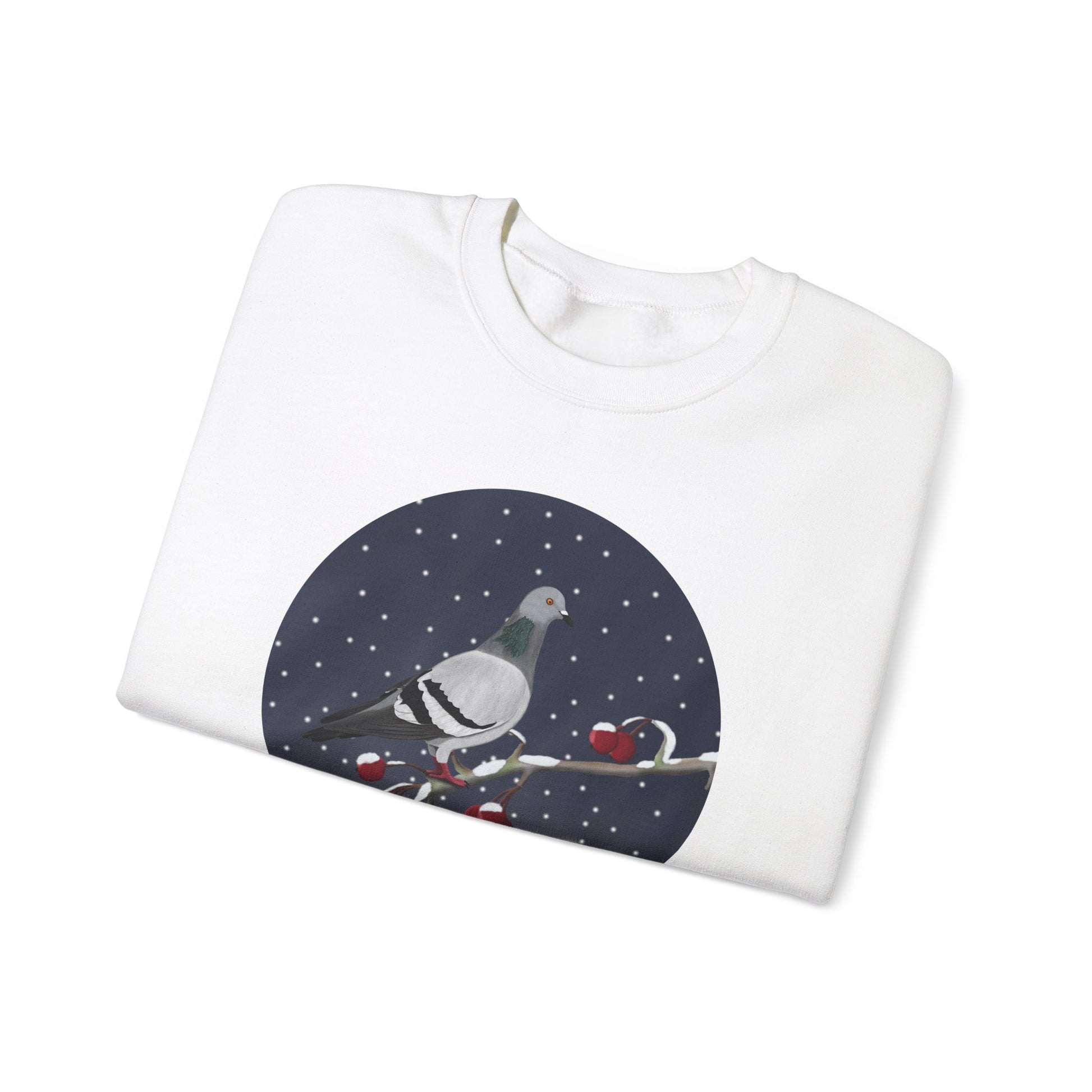 Show off your love for Christmas and birds with this unique sweatshirt. Featuring a Pigeon on a winter branch bird design, this is the perfect gift for any birdwatcher or a fun addition to your Christmas outfit. Spread some holiday cheer with this cute and stylish design.