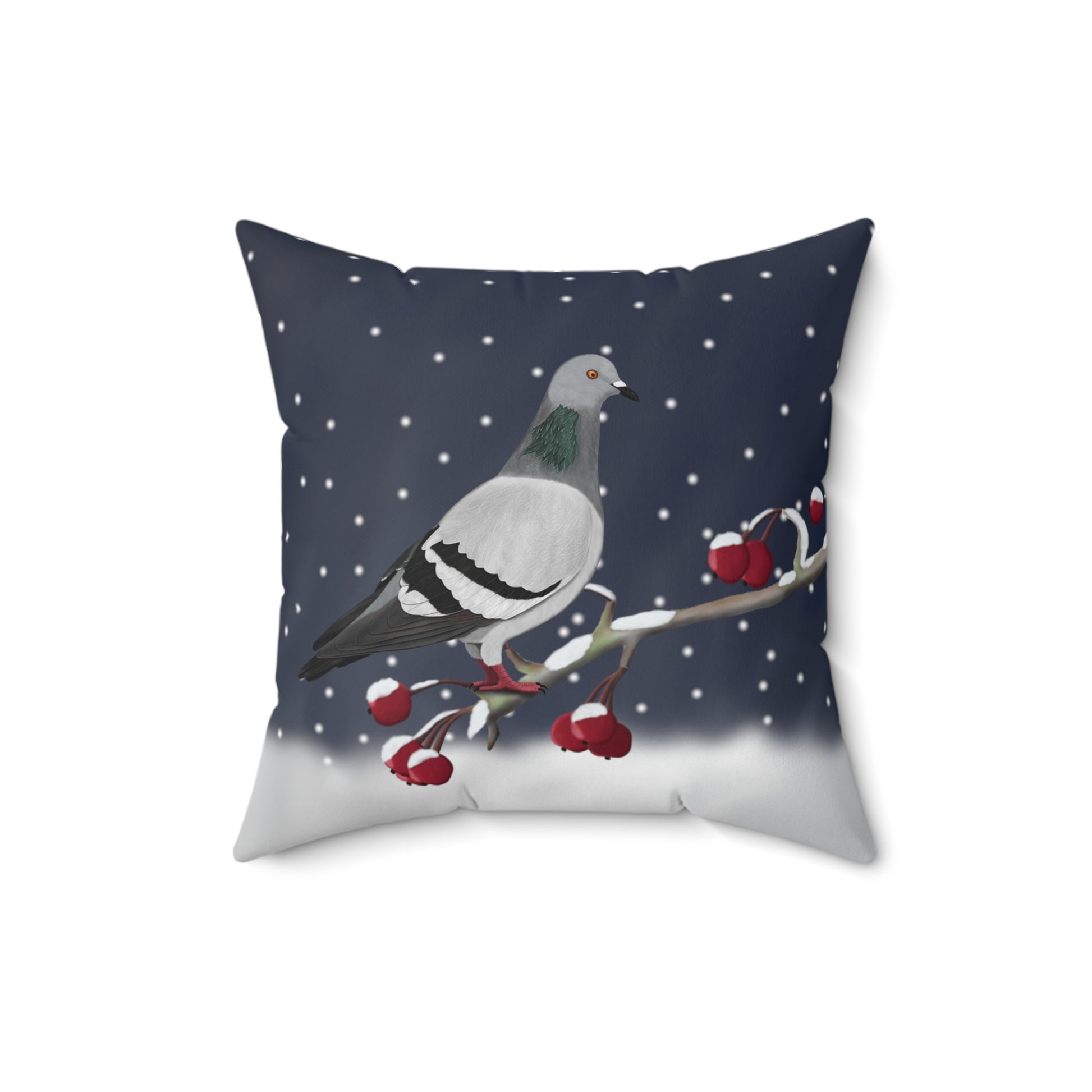 Pigeon on a Winter Branch Christmas Bird Pillow