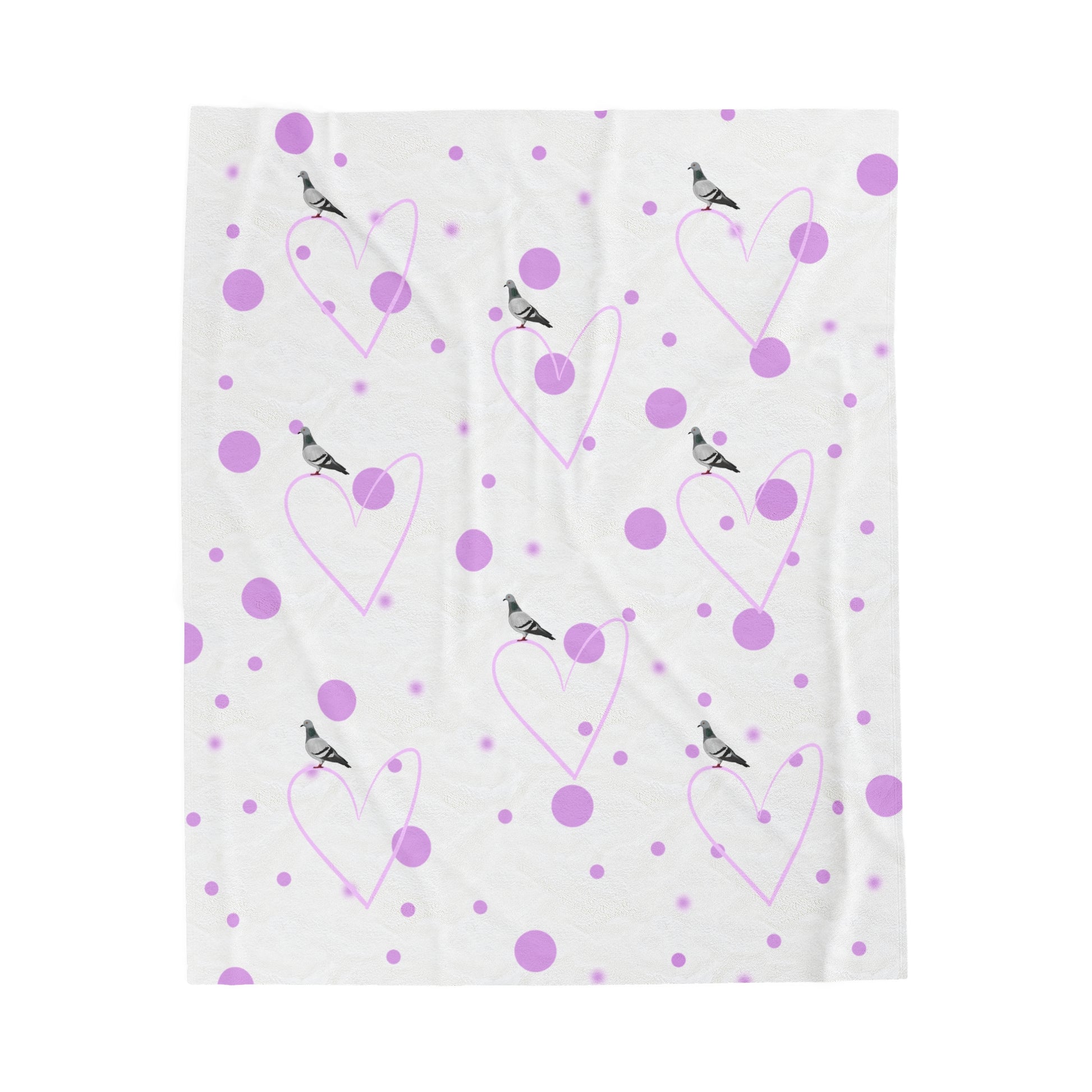 Pigeon Valentine's Day Bird Velveteen Plush Blanket Pink Hearts and Dots