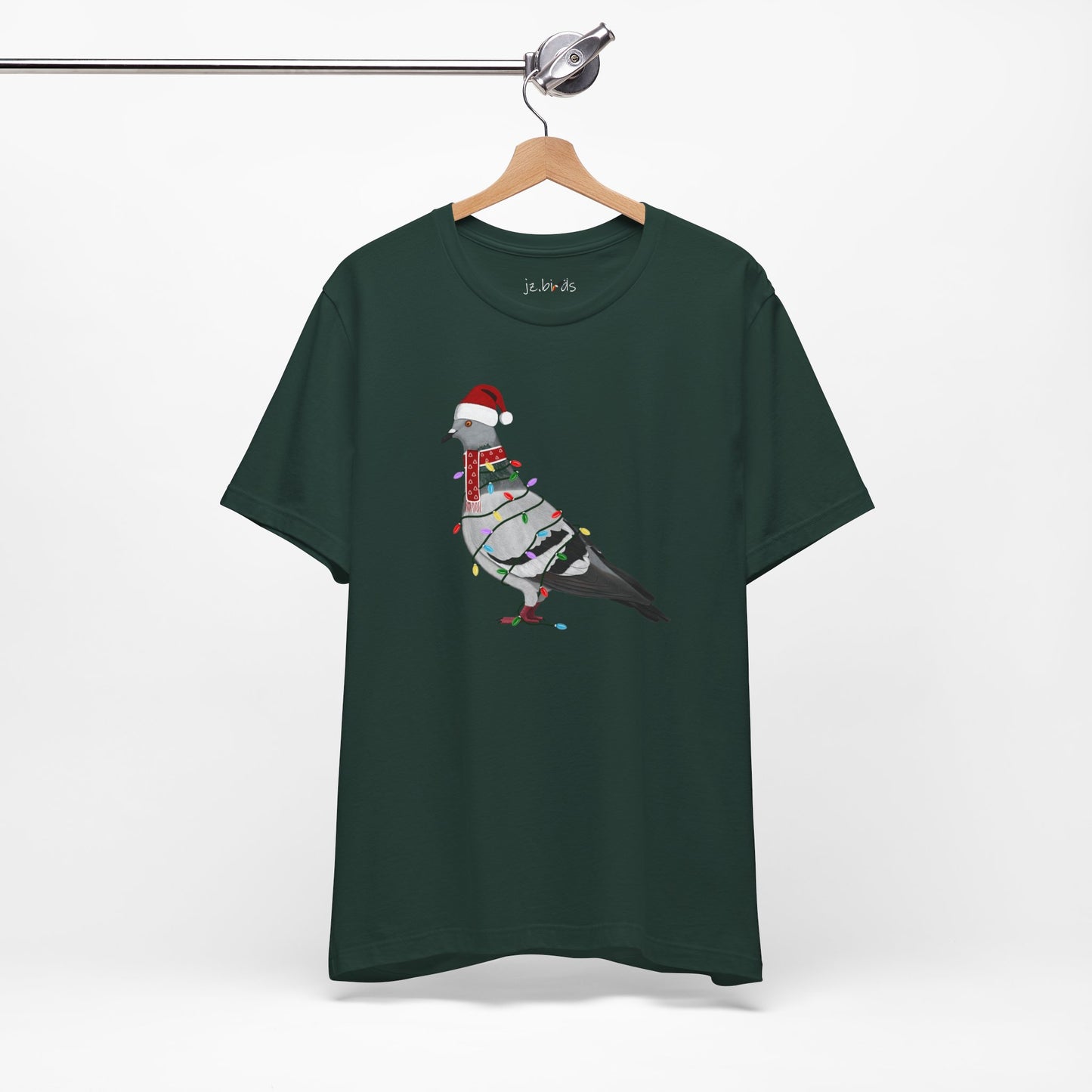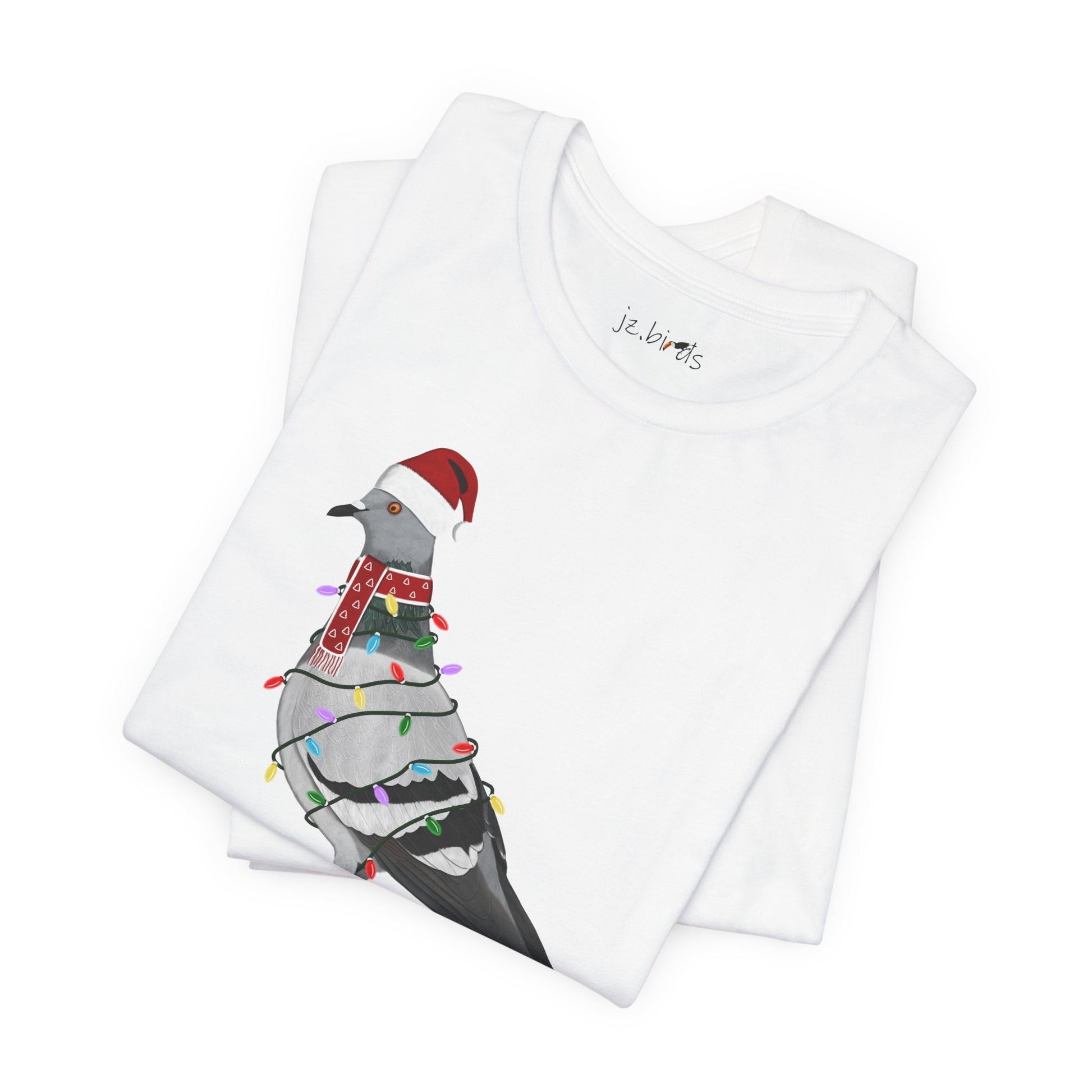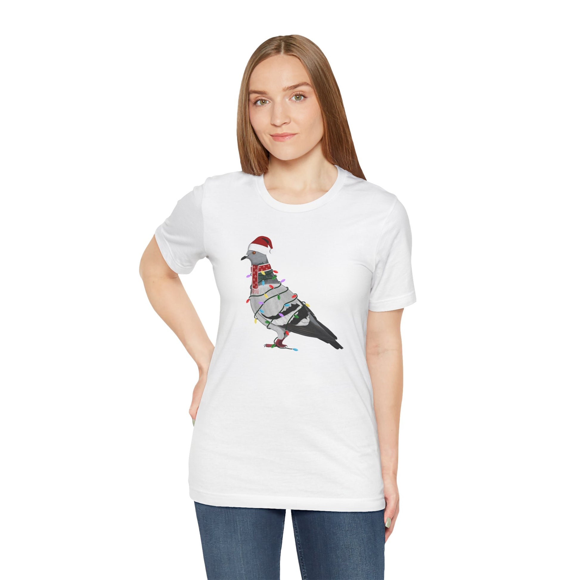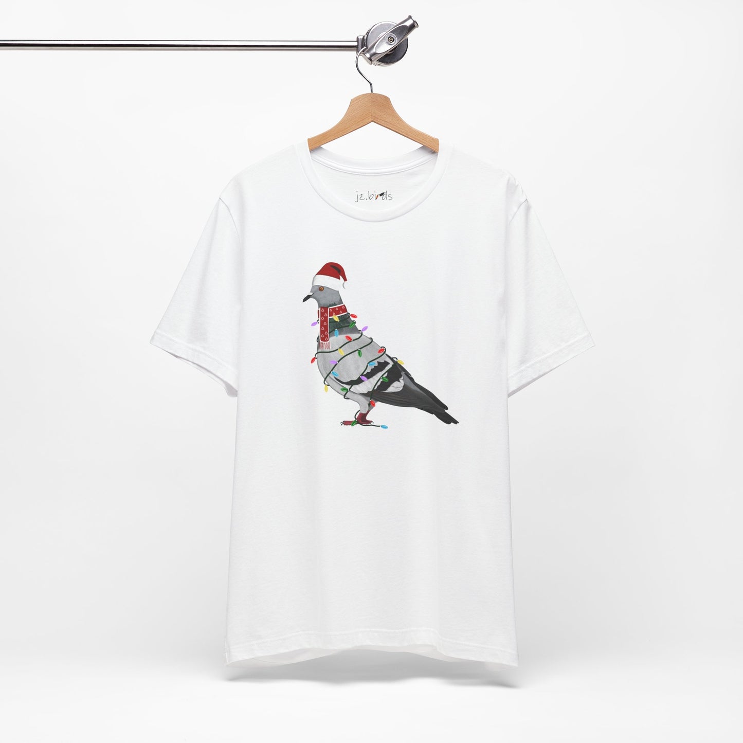 Pigeon with Fairy Lights Christmas Bird T-Shirt