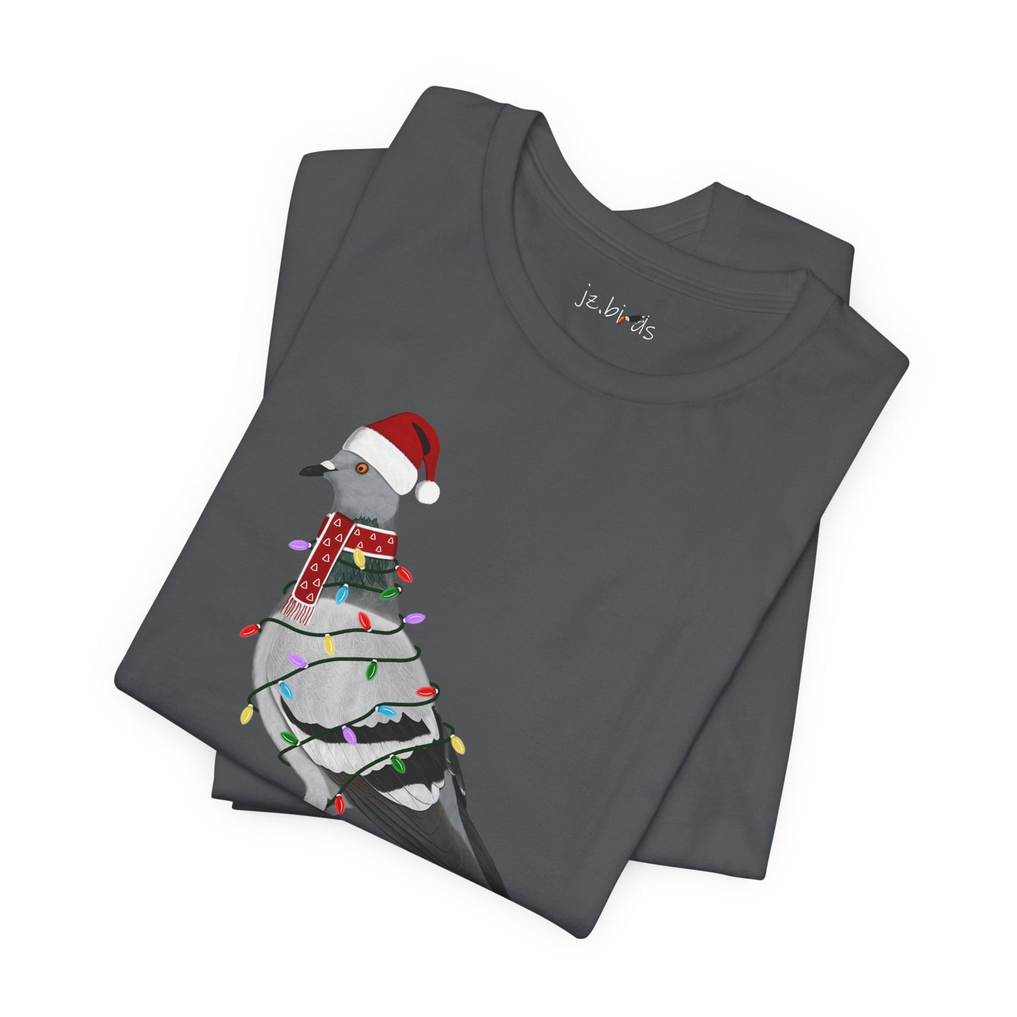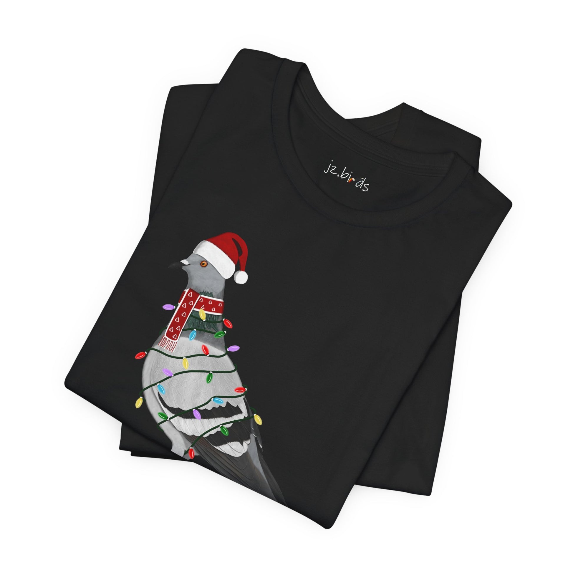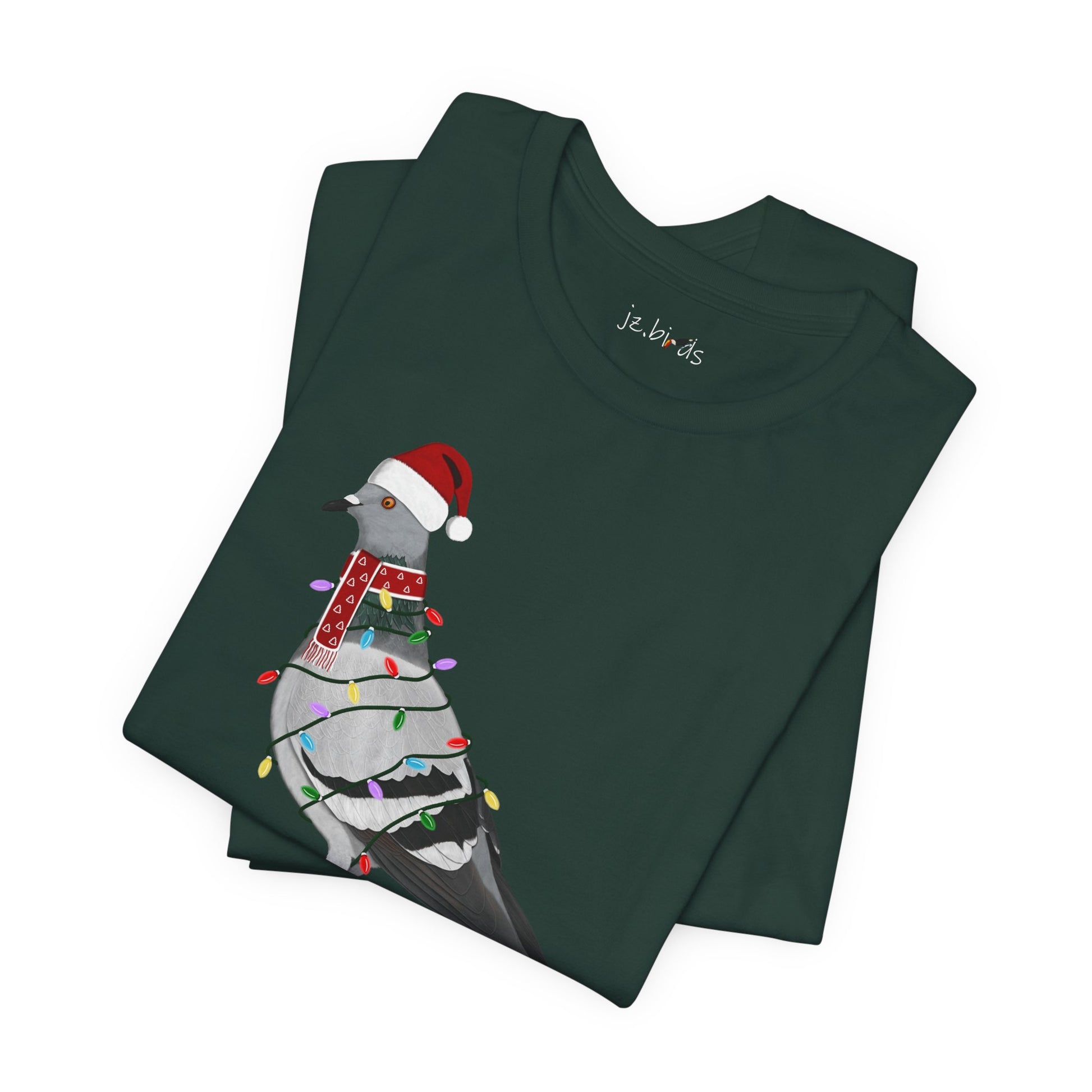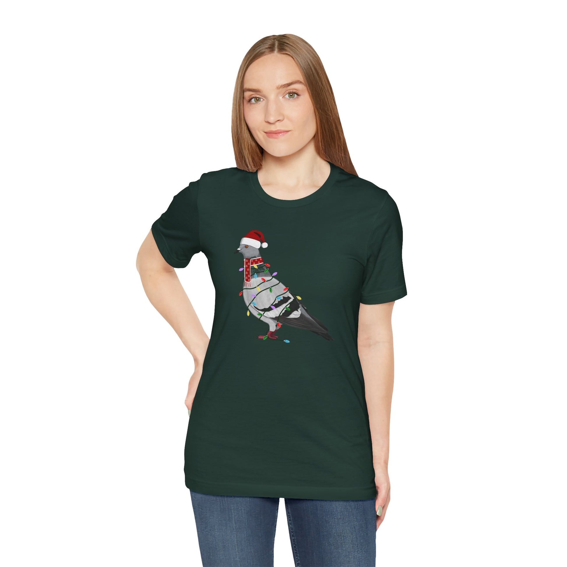 Pigeon with Fairy Lights Christmas Bird T-Shirt