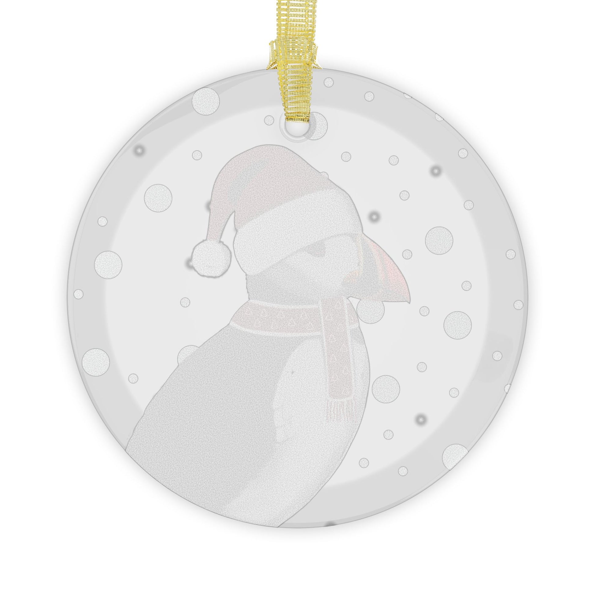 Puffin as Santa Claus Christmas Bird Glass Ornament Transparent
