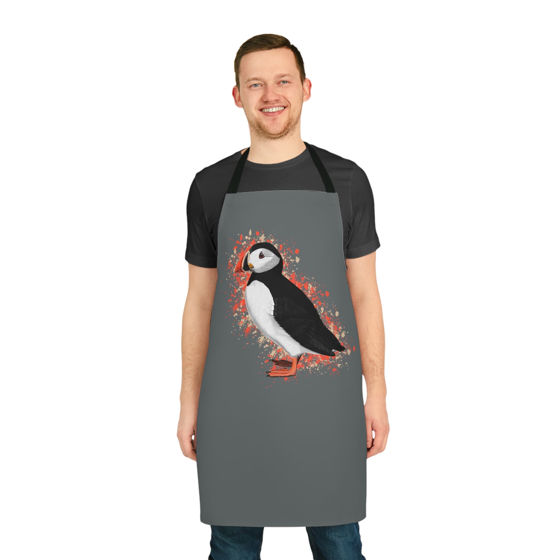 Puffin Bird Art Apron Dark Grey