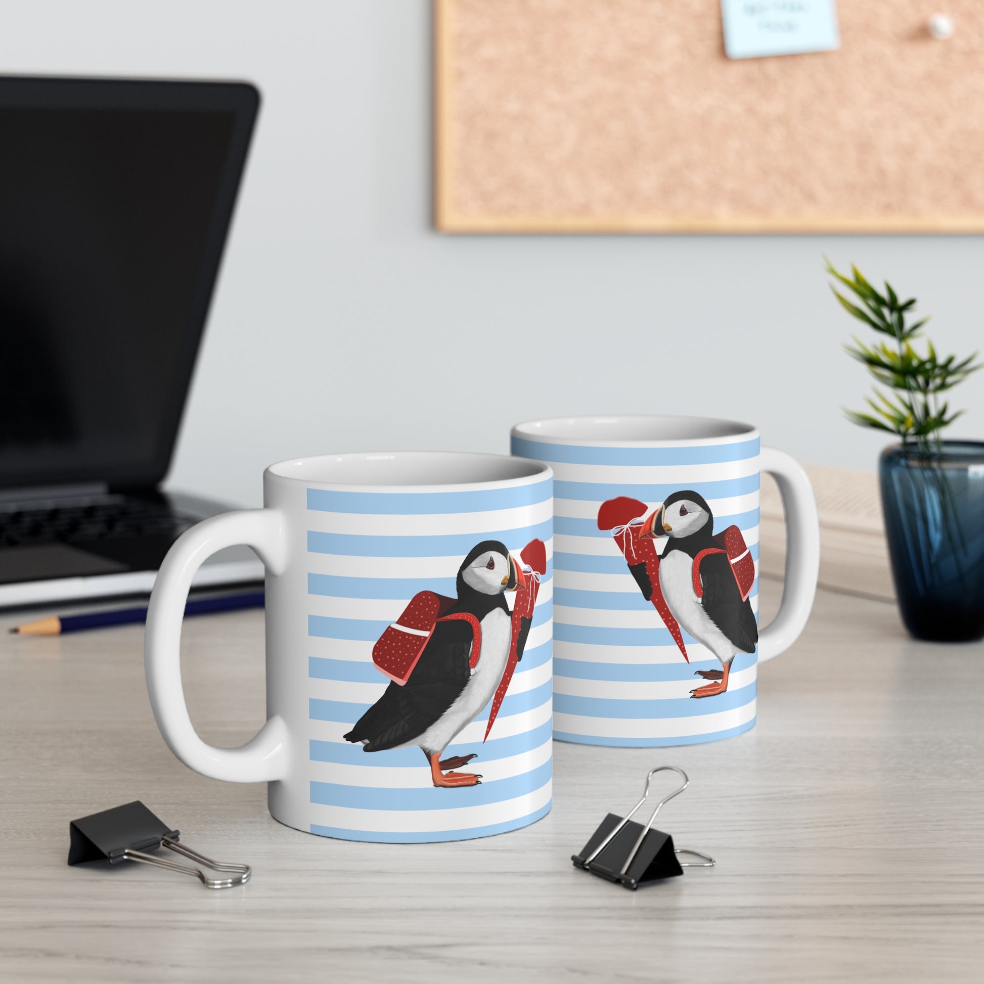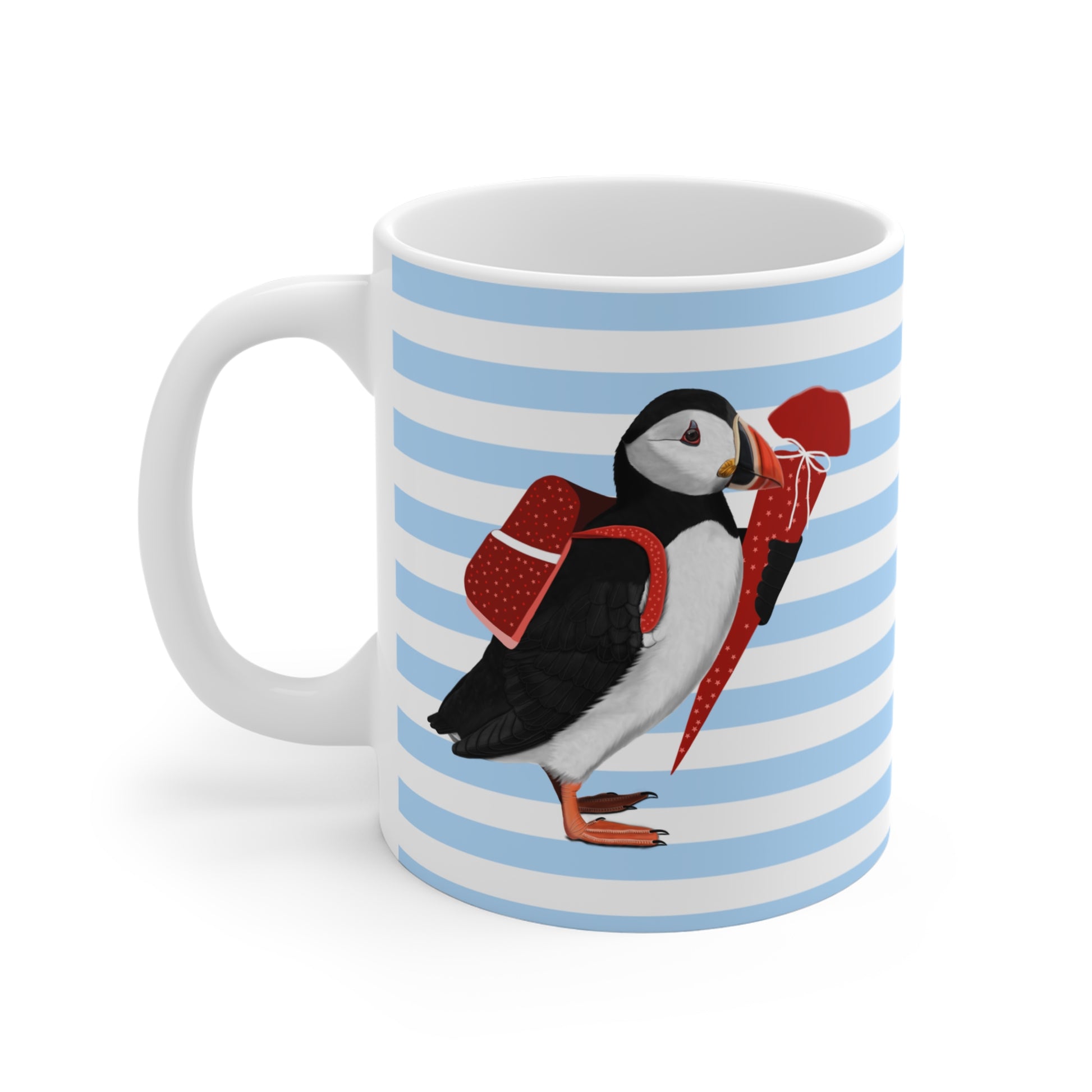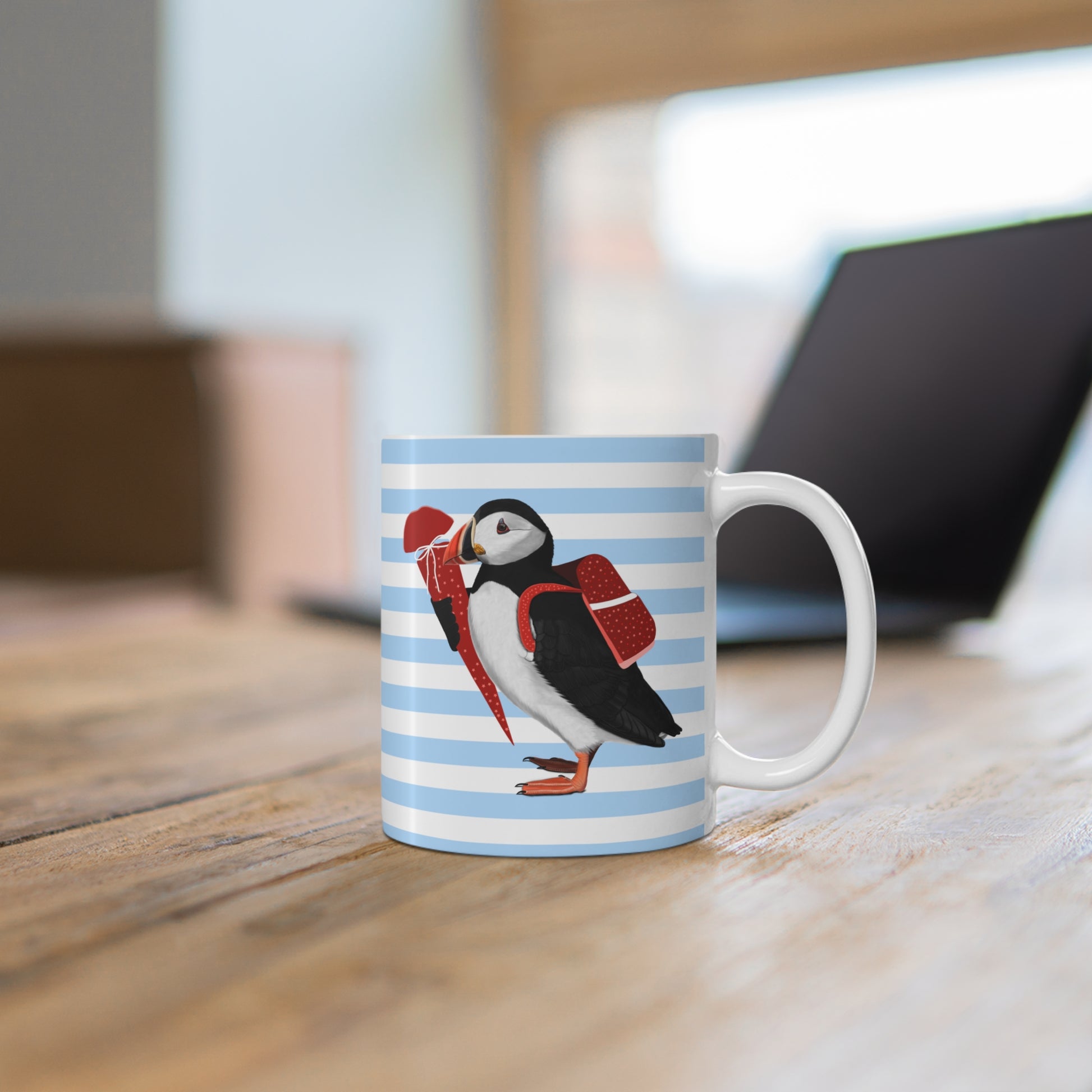 Puffin School Enrollment First Day of School Bird Ceramic Mug 11oz Blue