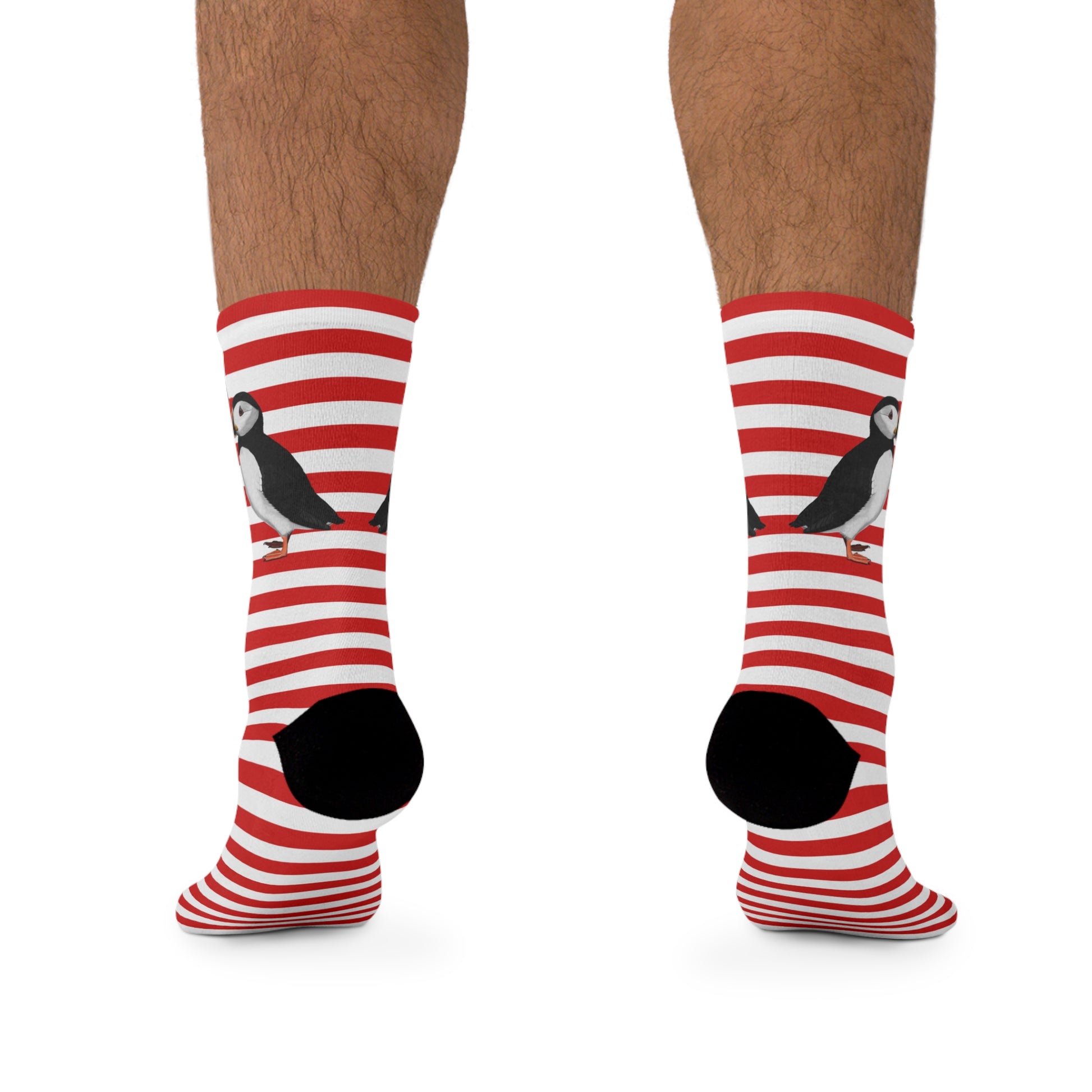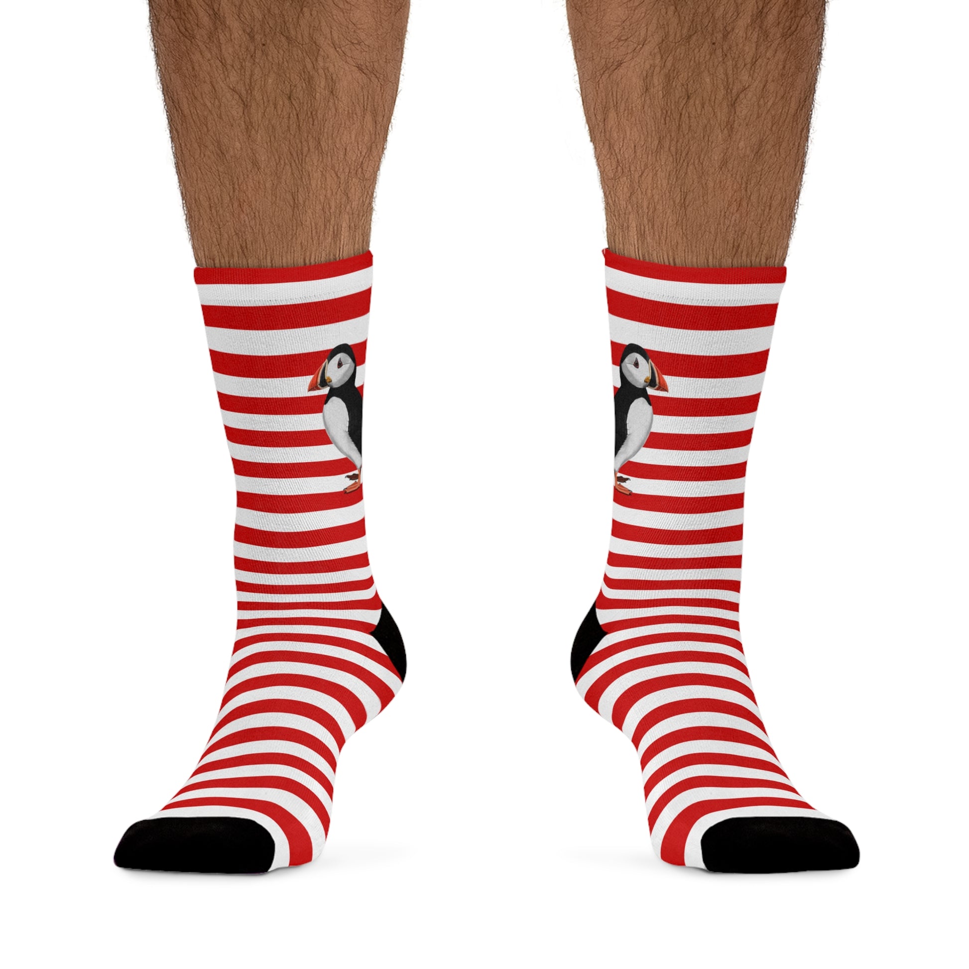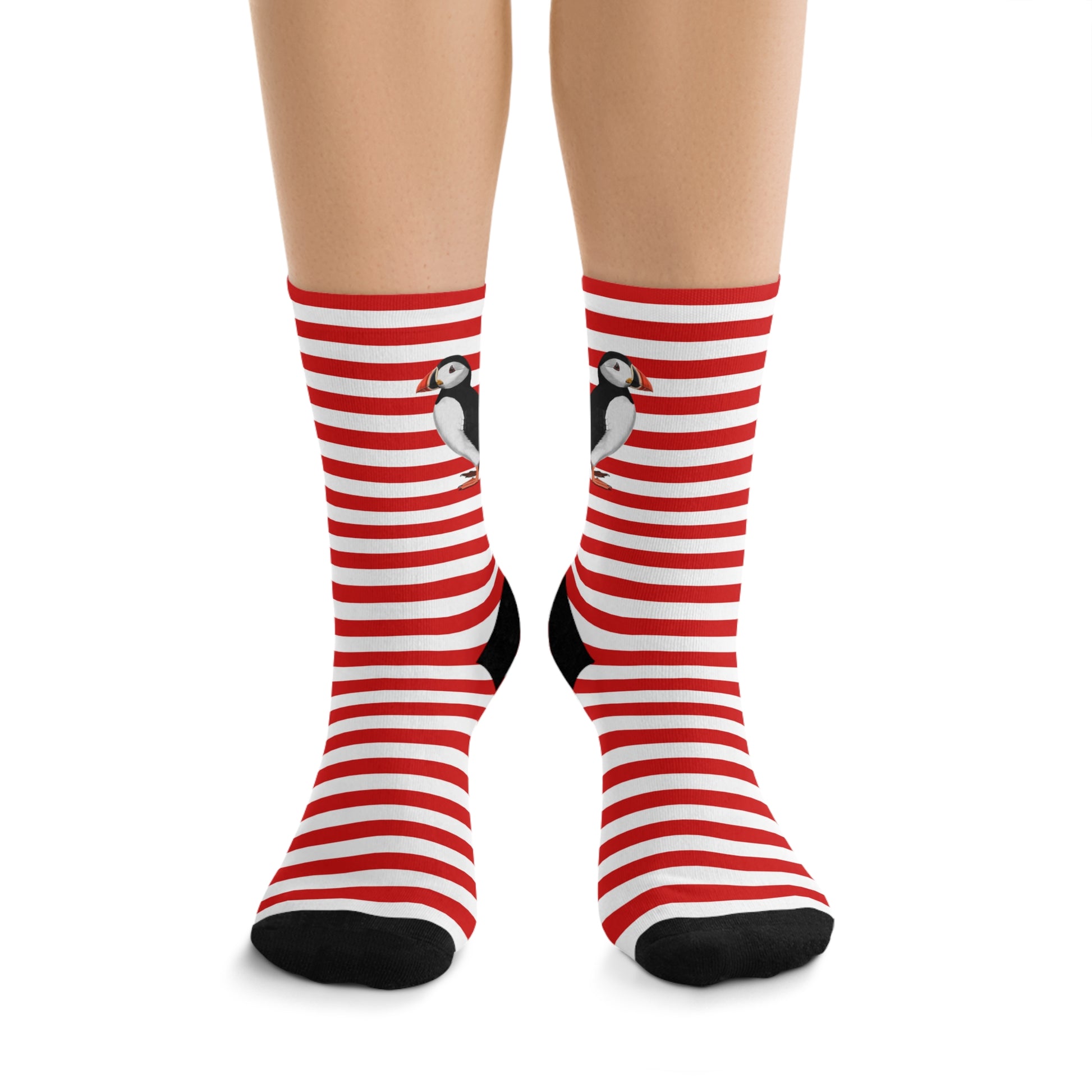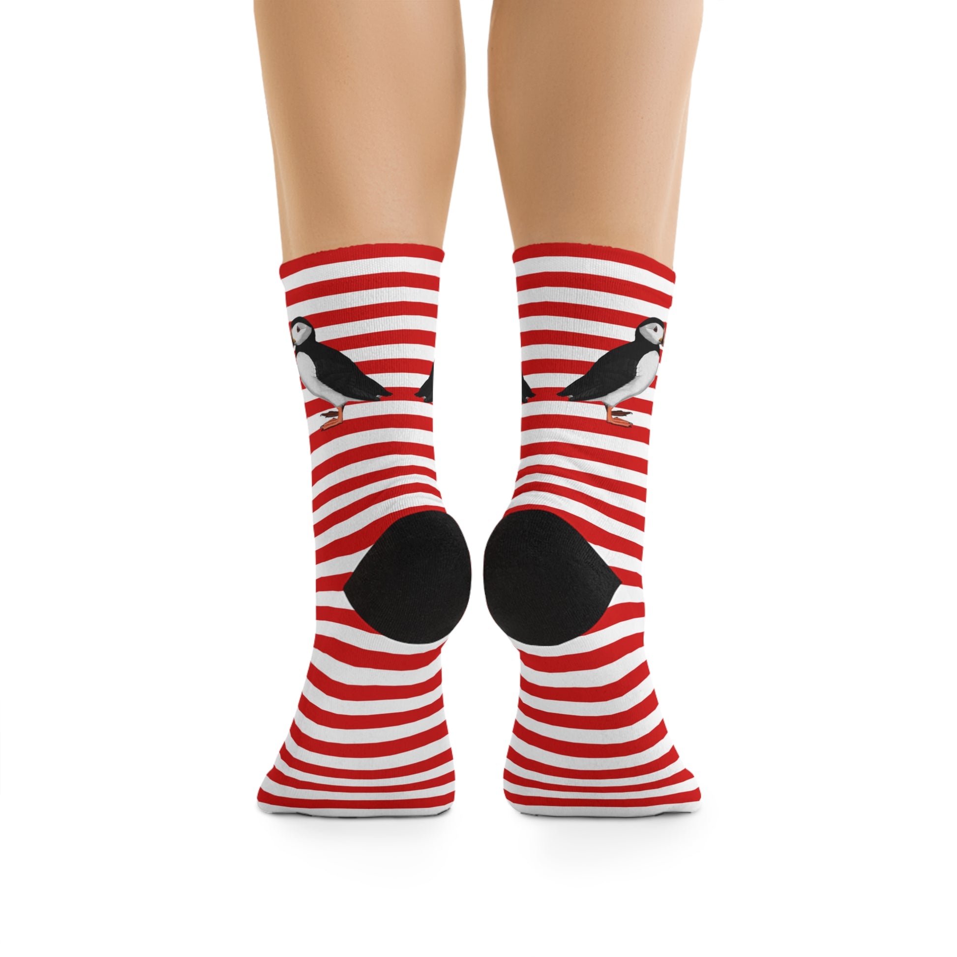 Puffin Stripes Red White Birding & Birdwatching Bird Socks