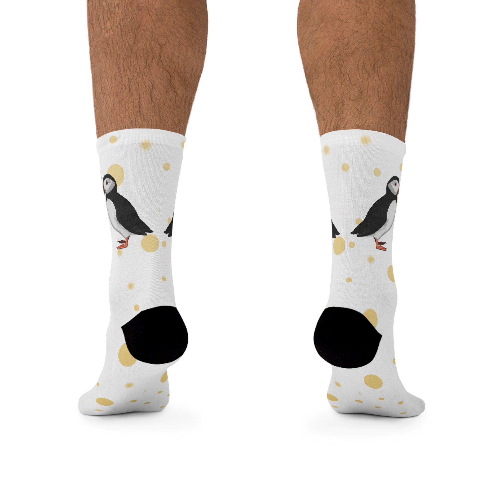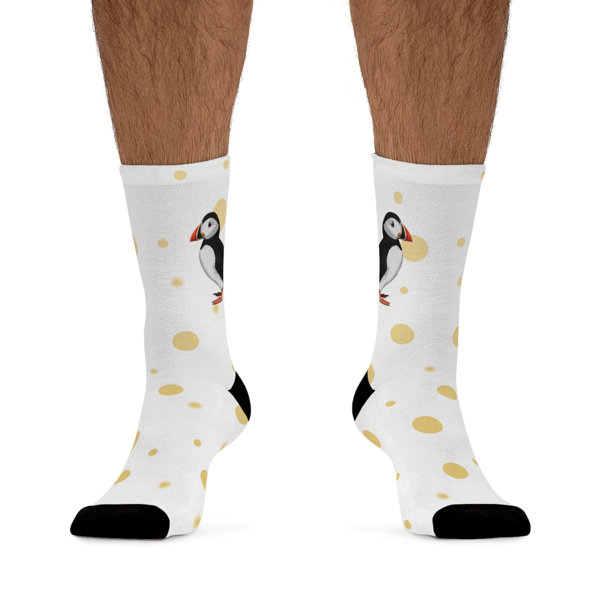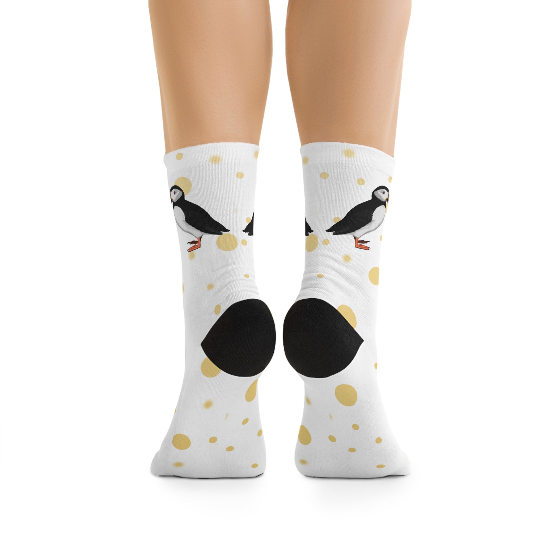 Puffin with Golden Dots Birding & Birdwatching Bird Socks White