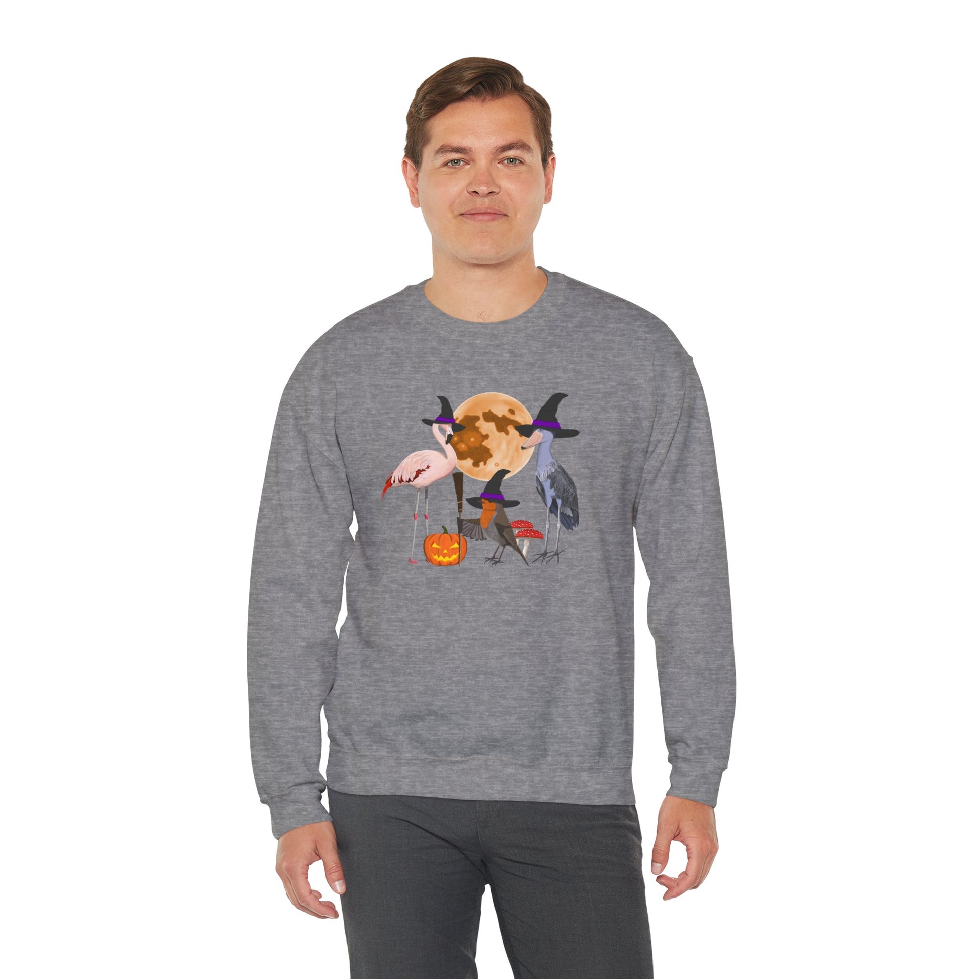 Robin Flamingo Shoebill Halloween Birds Witch Birdwatcher Sweatshirt