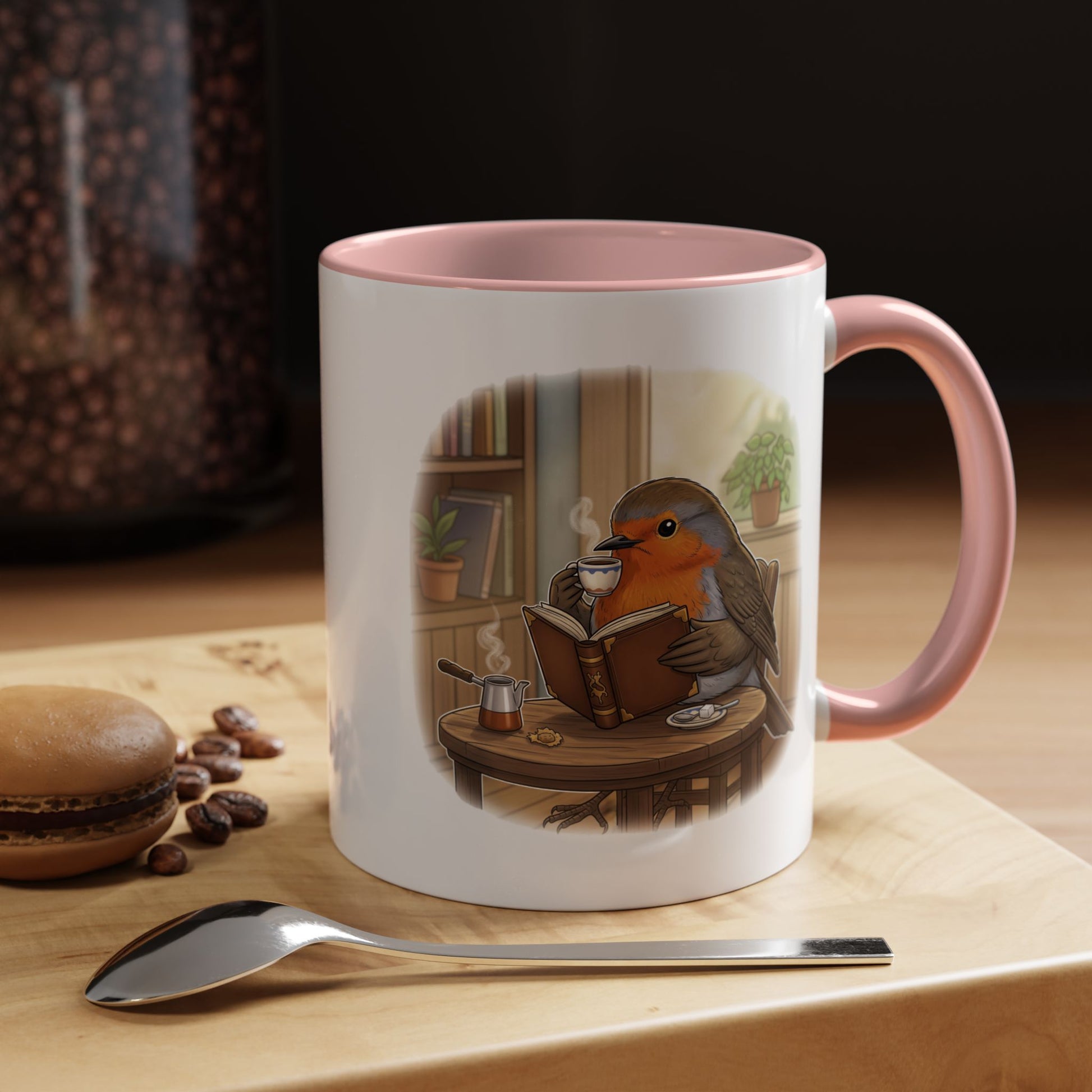 Robin Reads Books and Drinks Coffee Bird Mug for Bird and Book Lovers