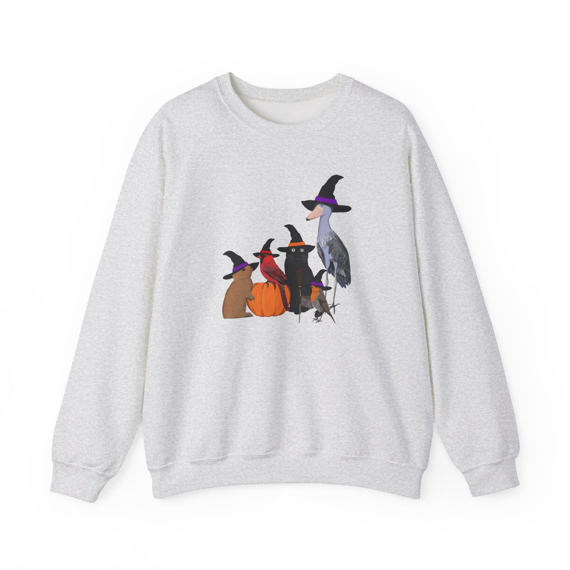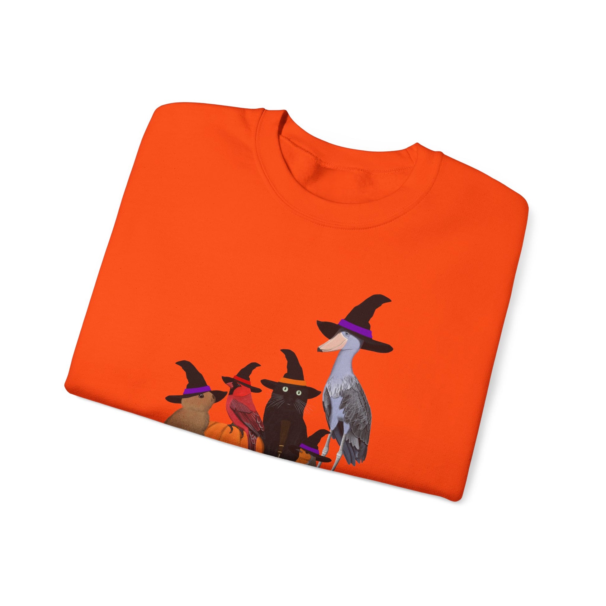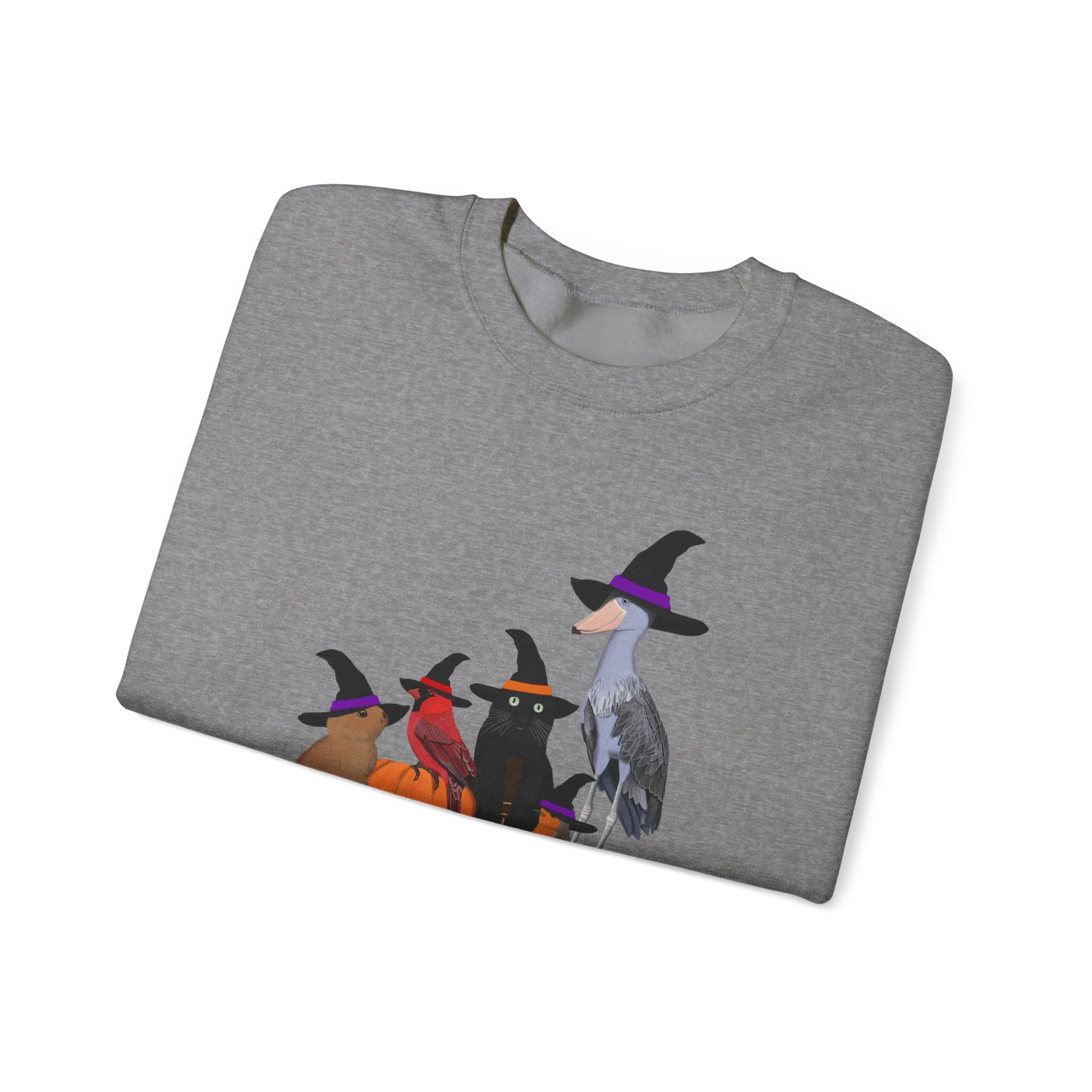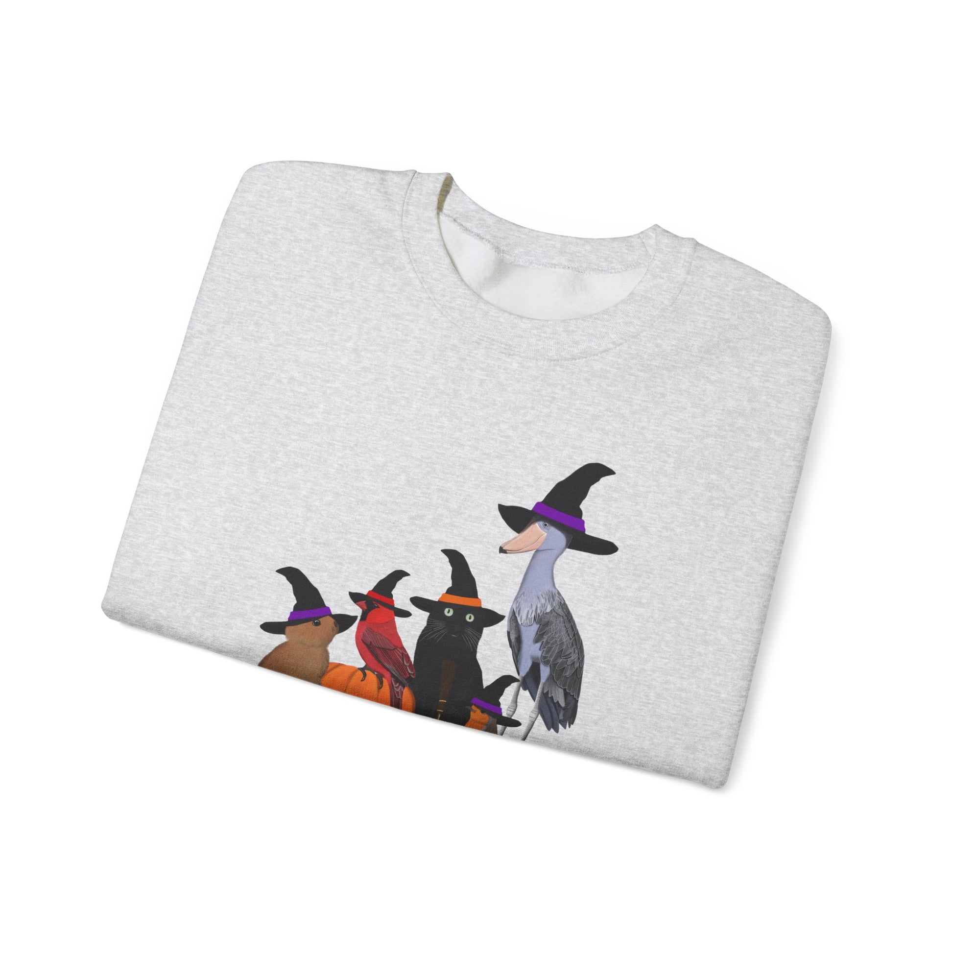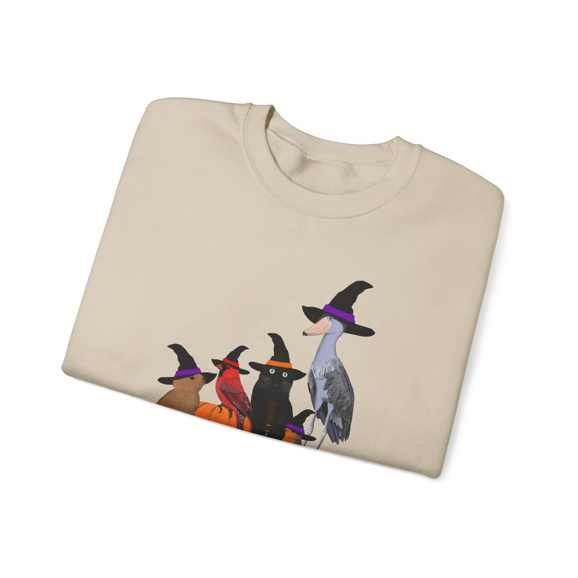 Robin Shoebill Cardinal Rabbit with Cat Happy Halloween Birds Sweatshirt