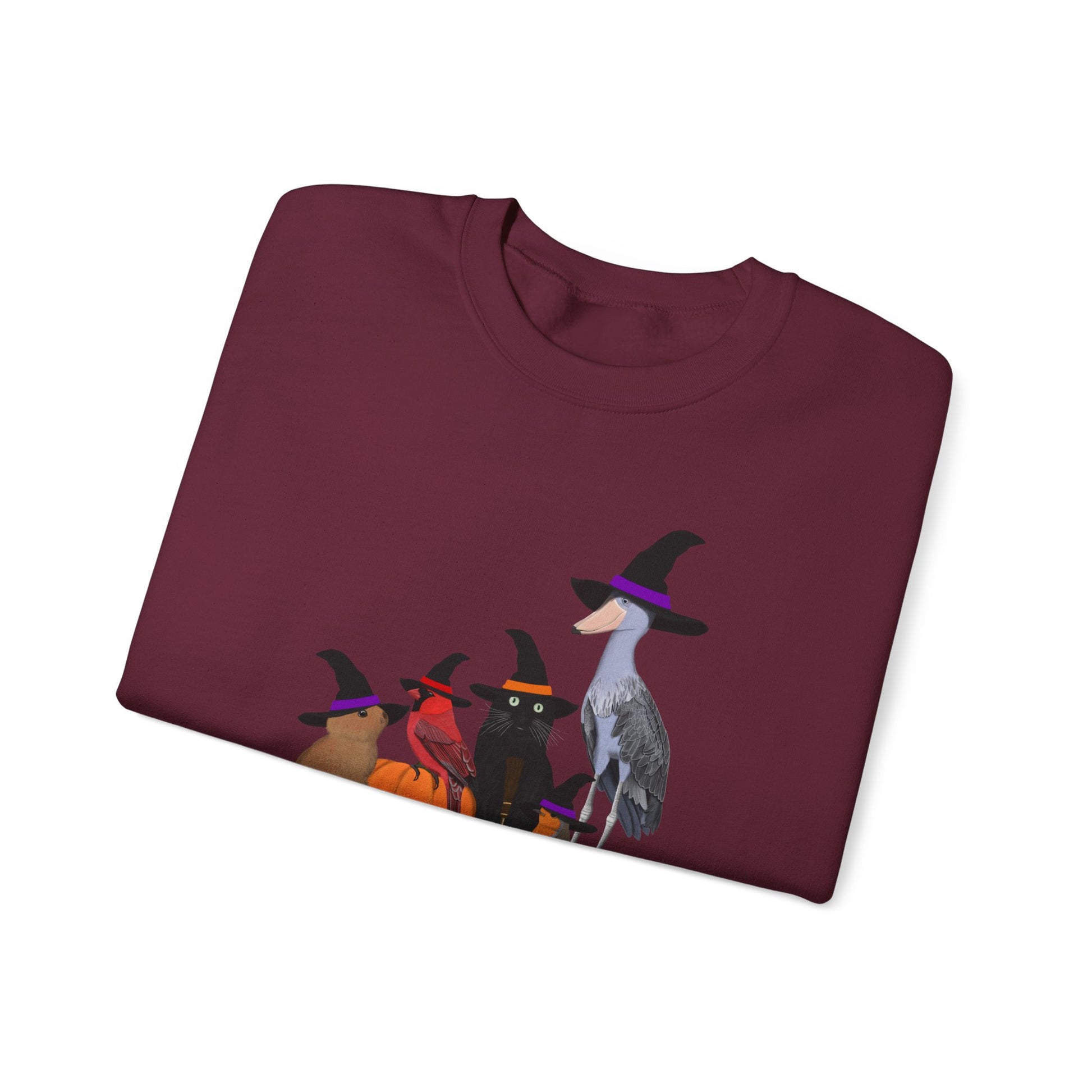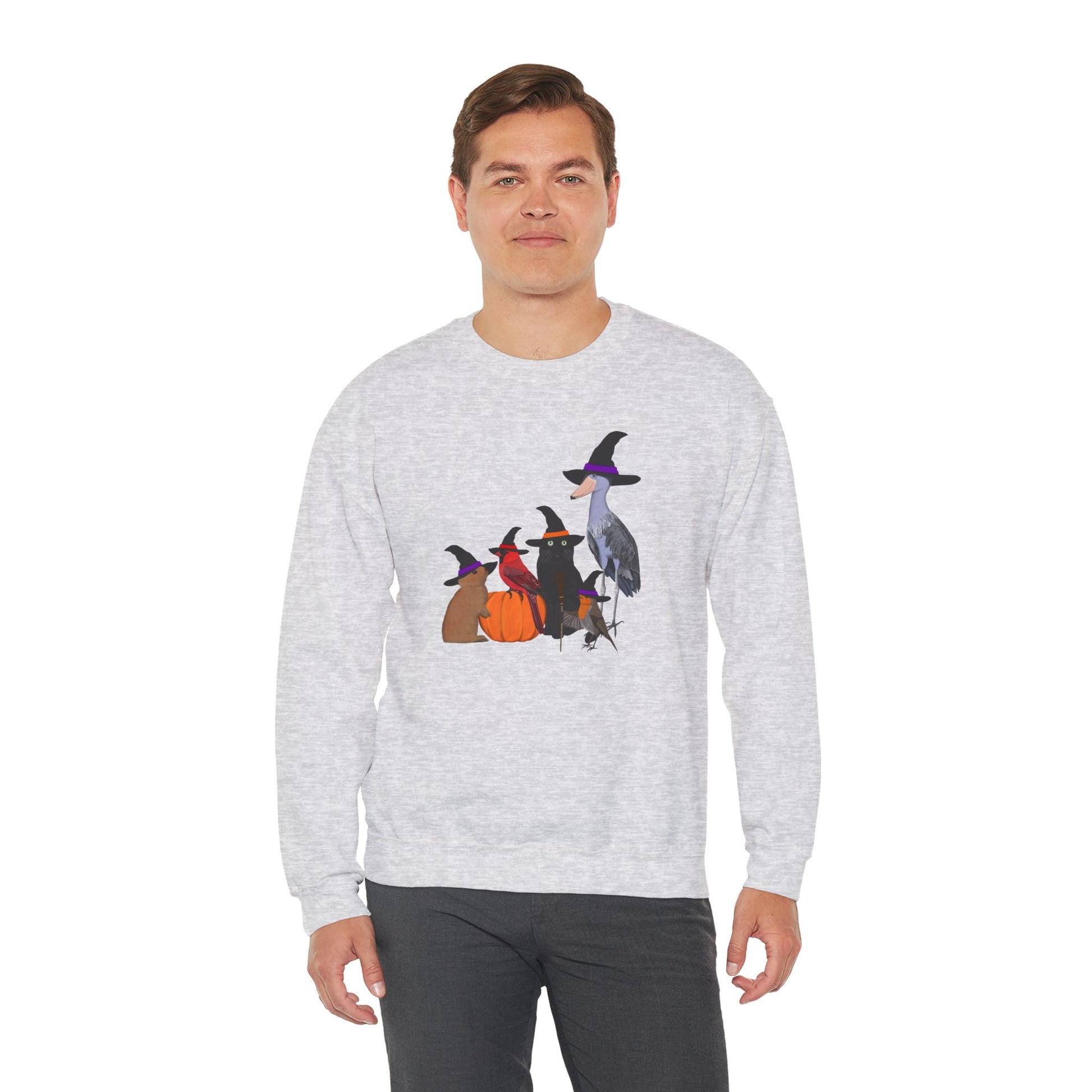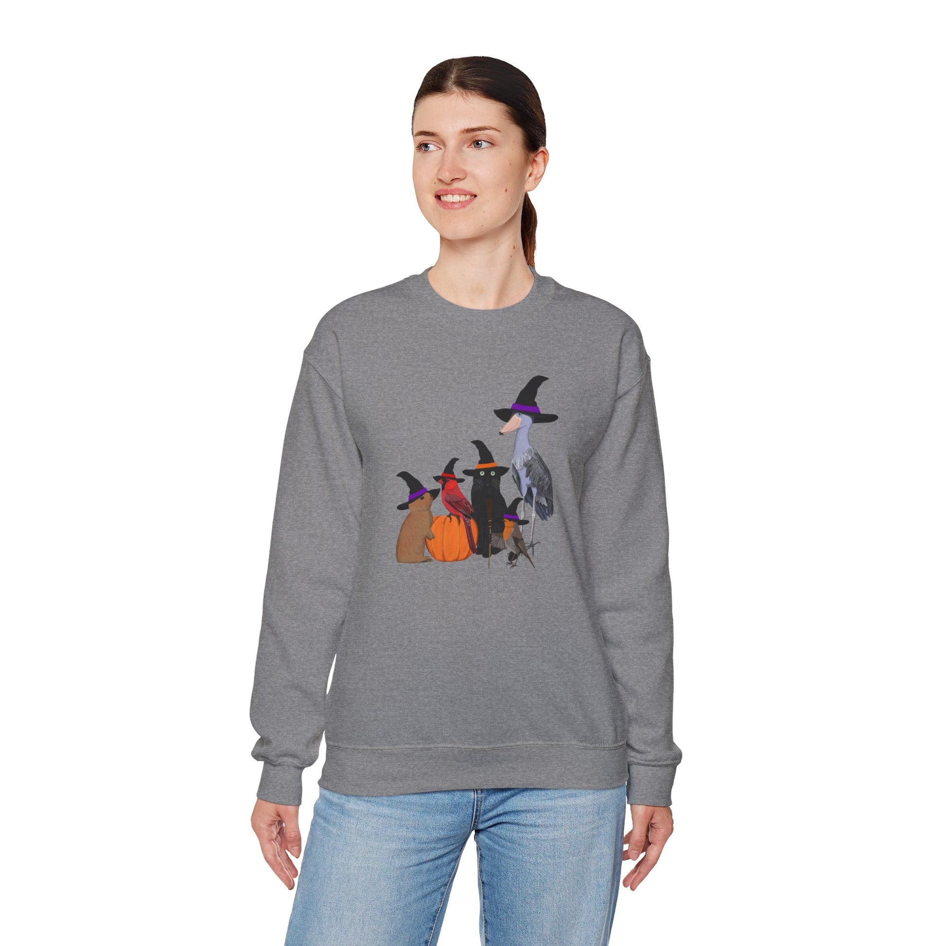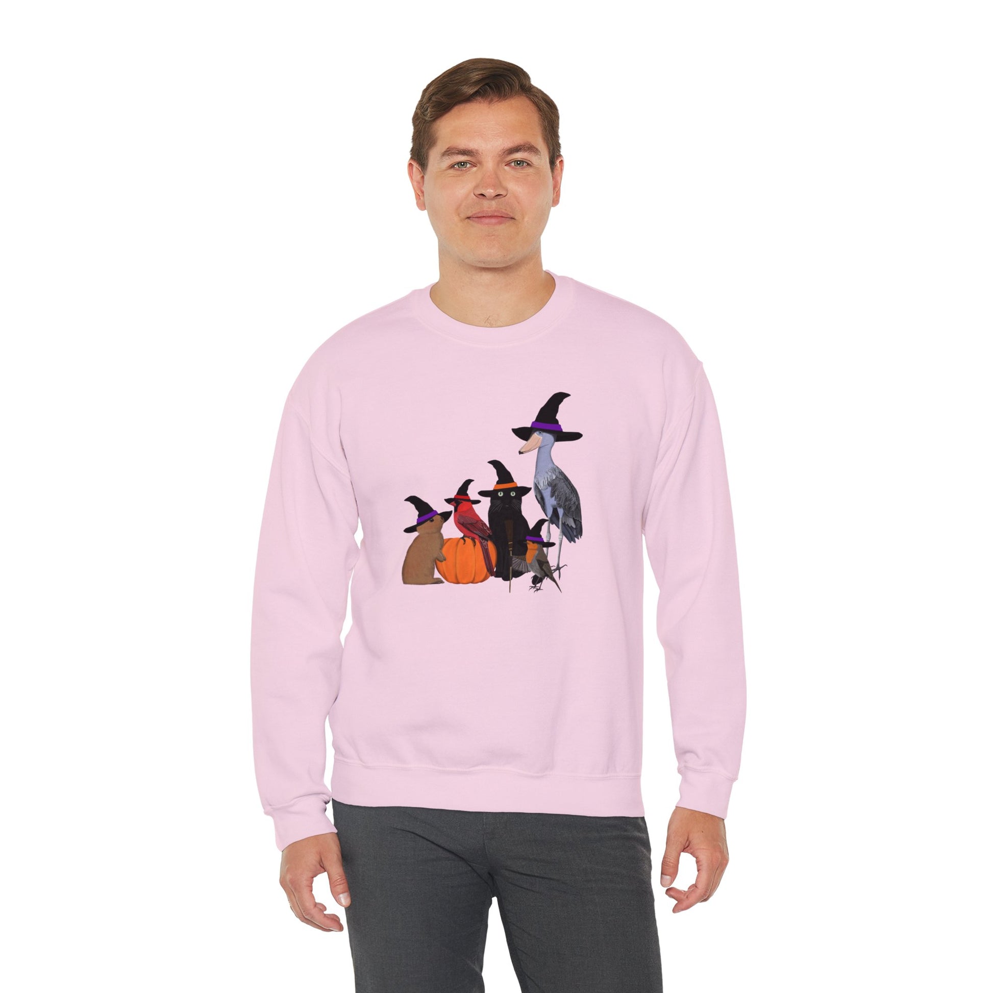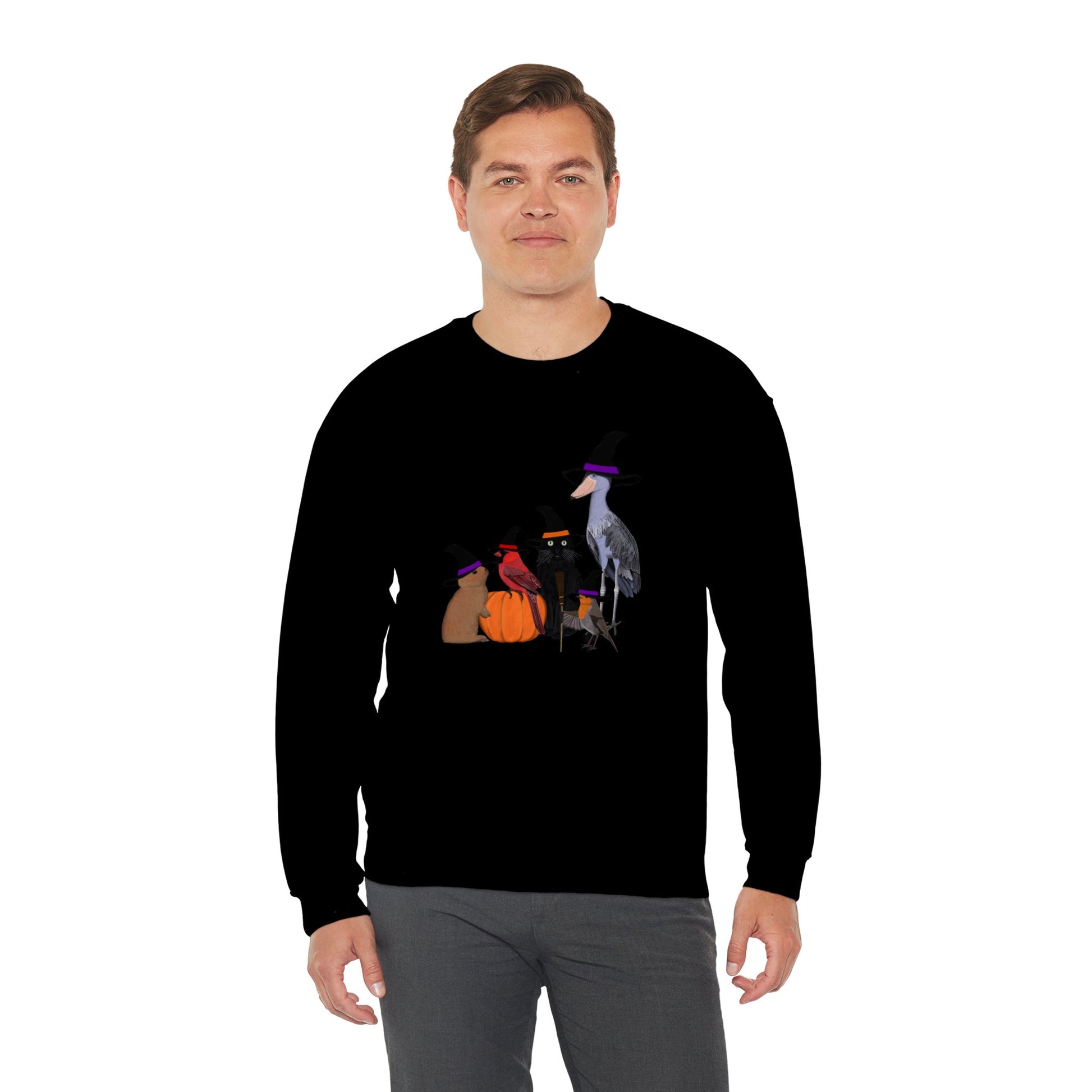 Robin Shoebill Cardinal Rabbit with Cat Happy Halloween Birds Sweatshirt