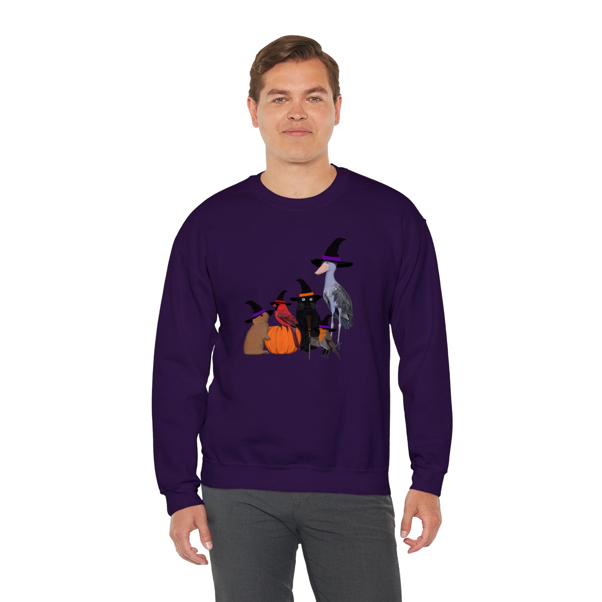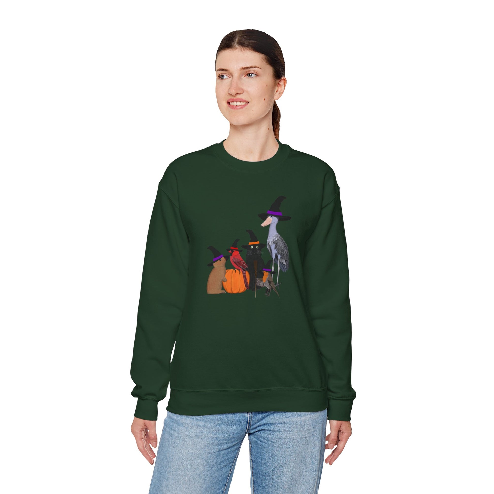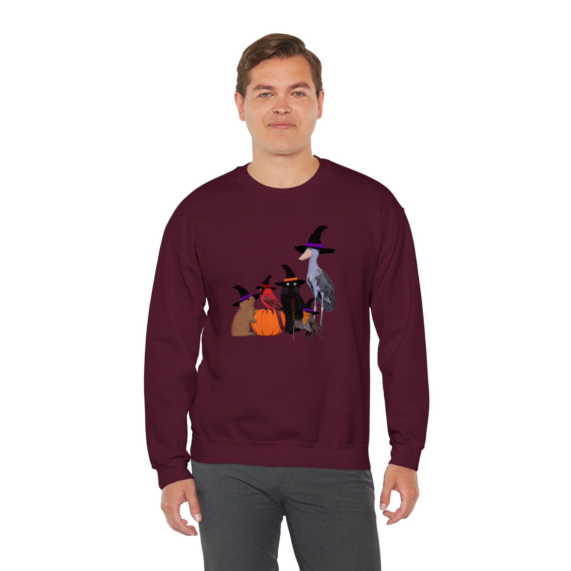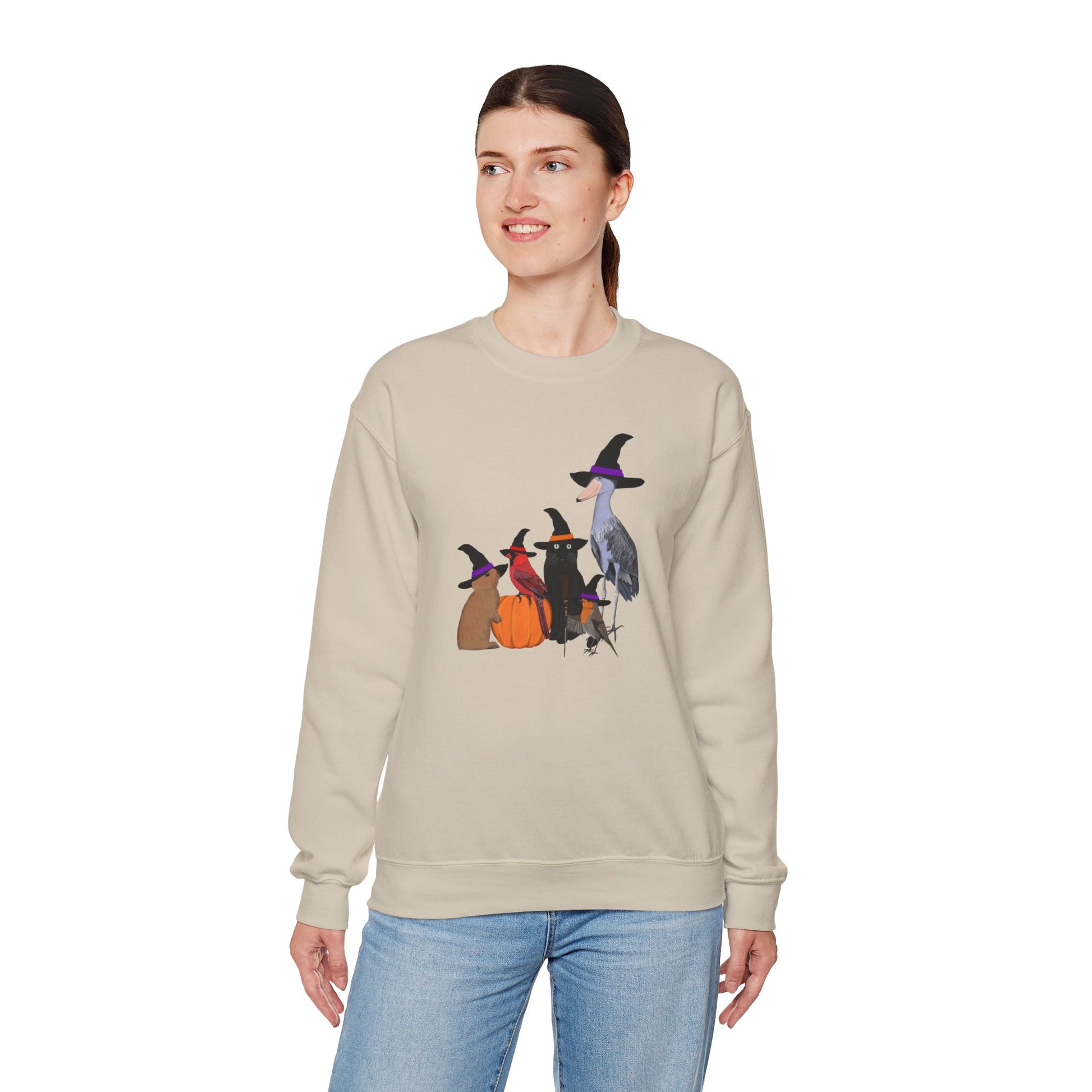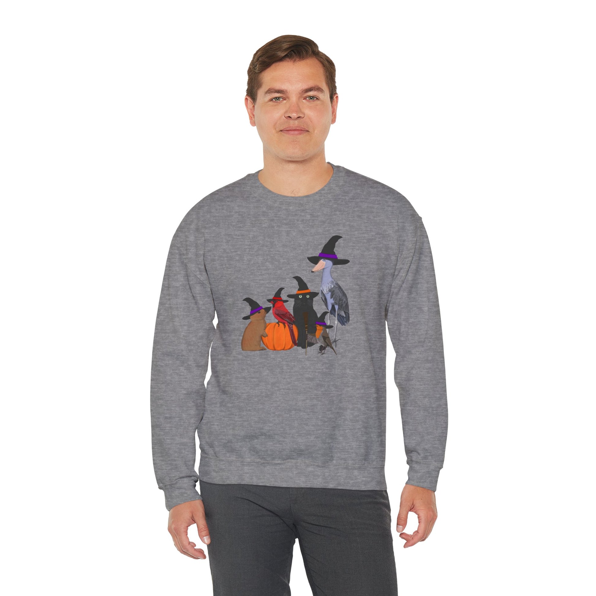 Robin Shoebill Cardinal Rabbit with Cat Happy Halloween Birds Sweatshirt