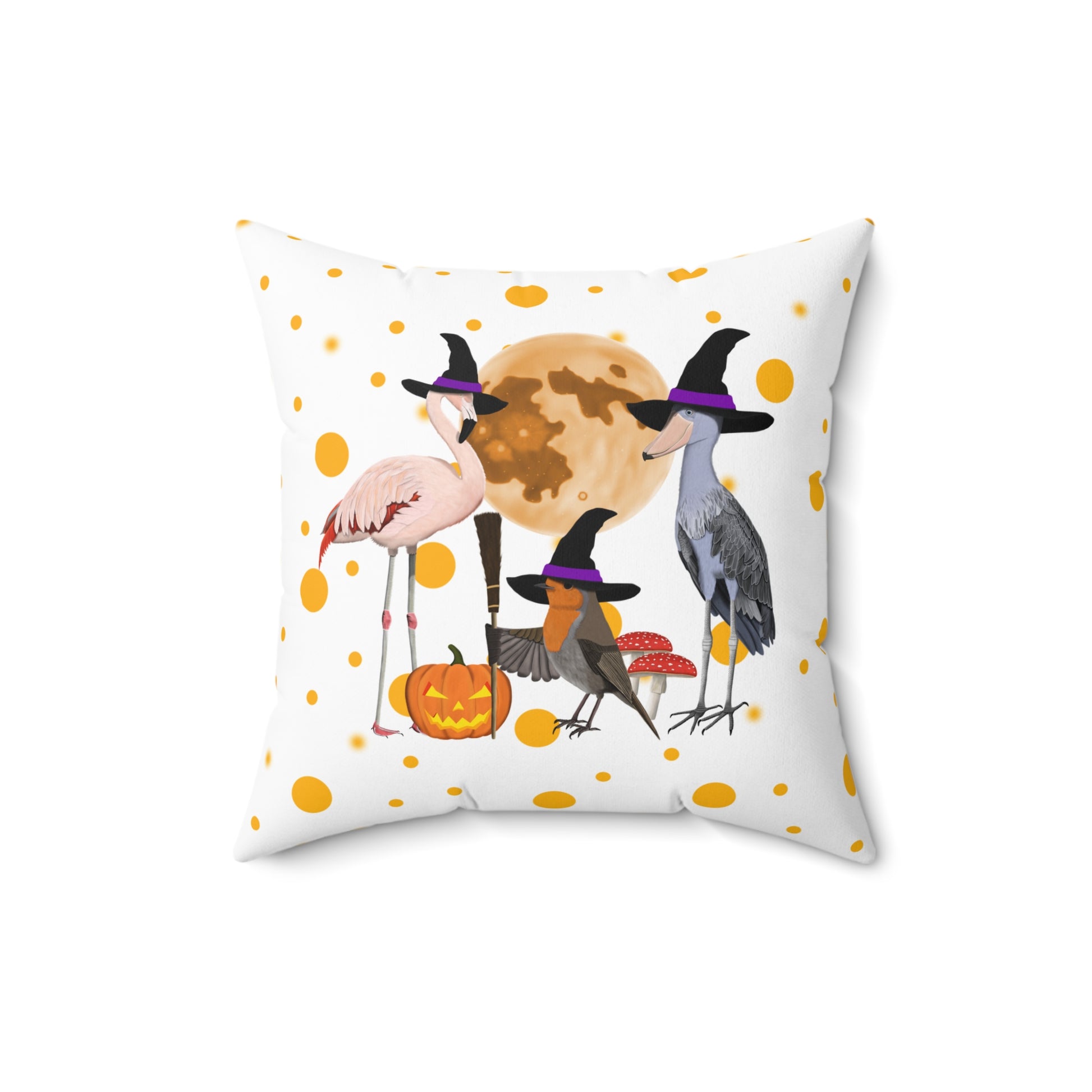 This Halloween, add a touch of humor to your home decor with our Robin, Shoebill, Flamingo halloween throw pillow. Featuring a funny halloween bird design, it's the perfect addition to your spooky season. Made with high-quality materials, it's sure to impress your guests and elevate your Halloween aesthetic.