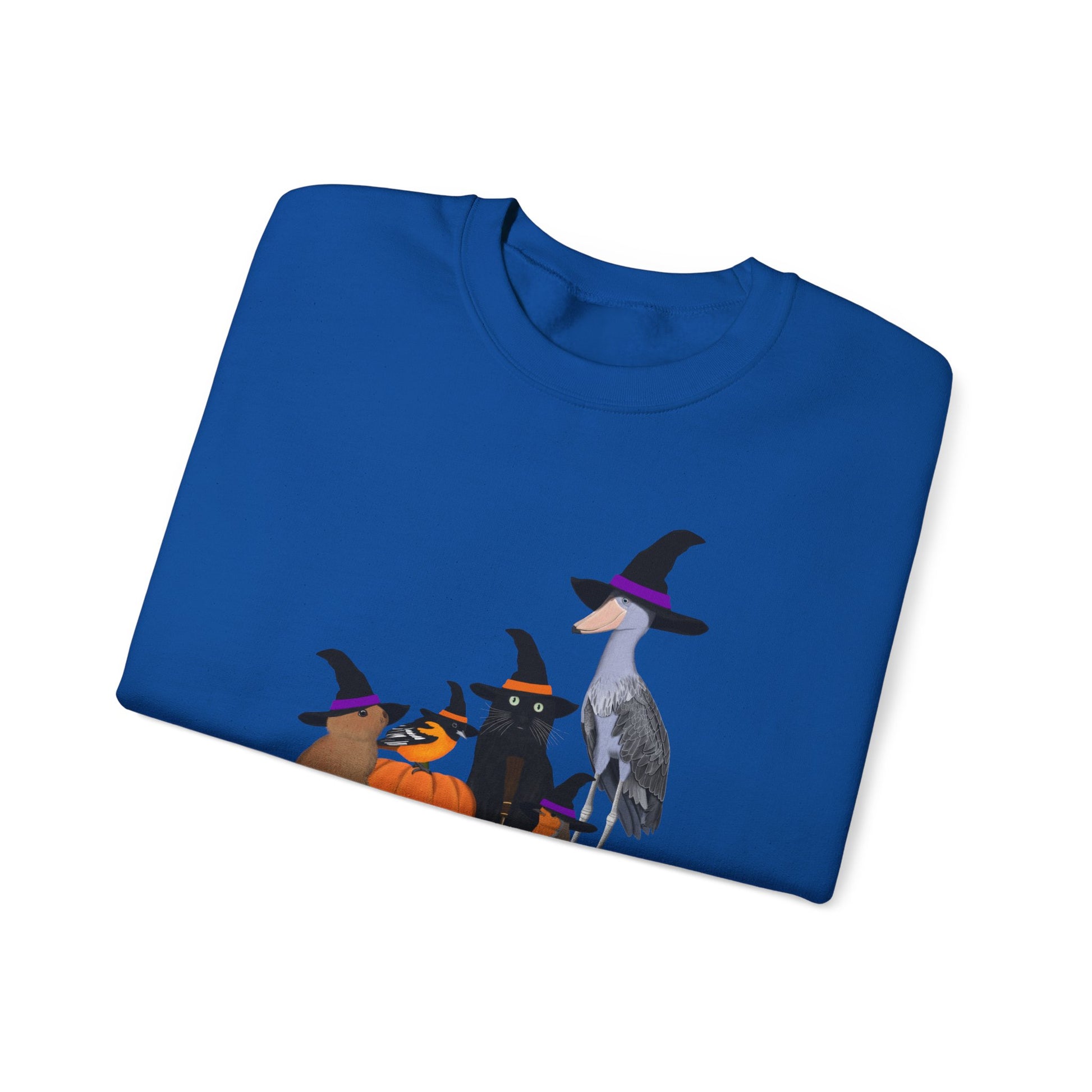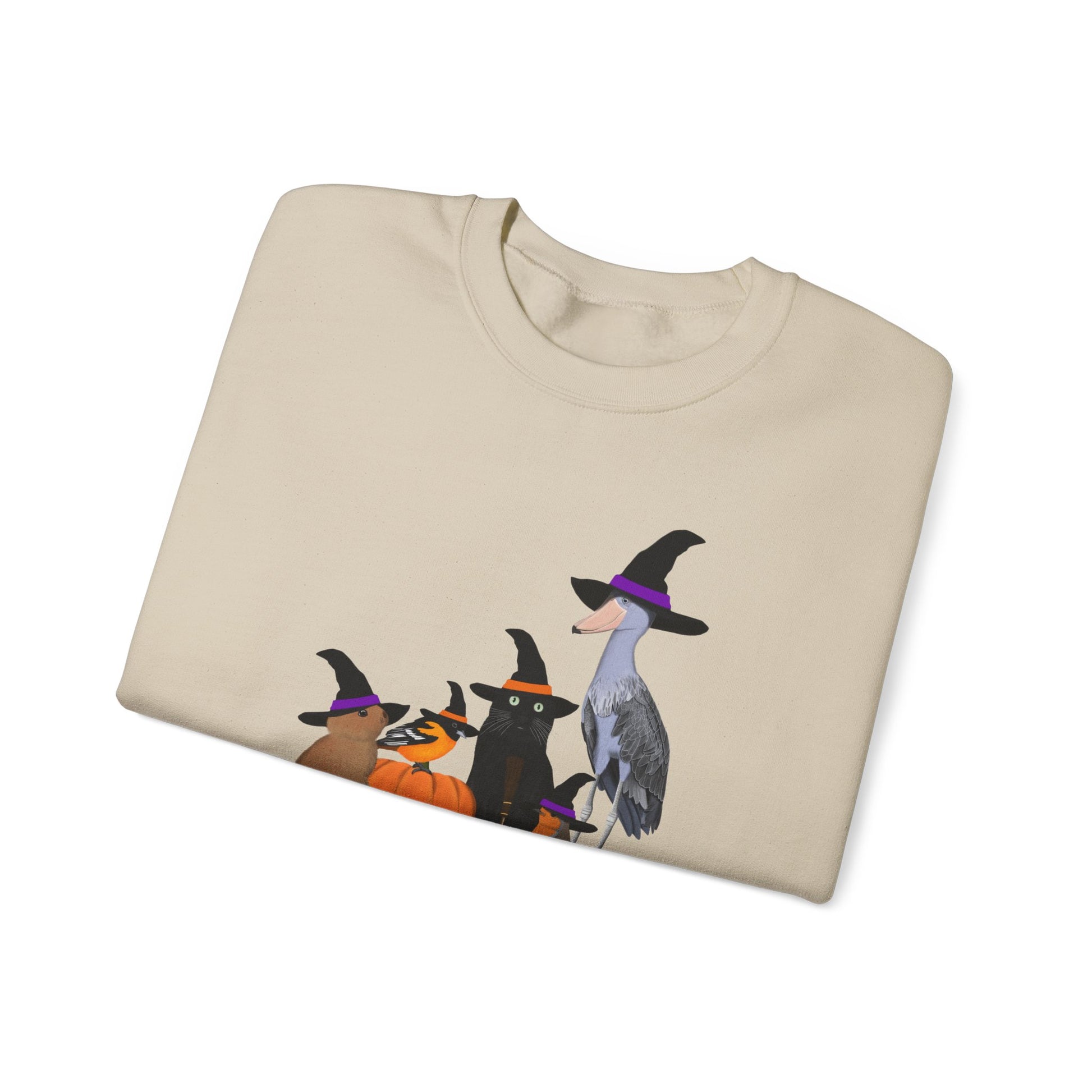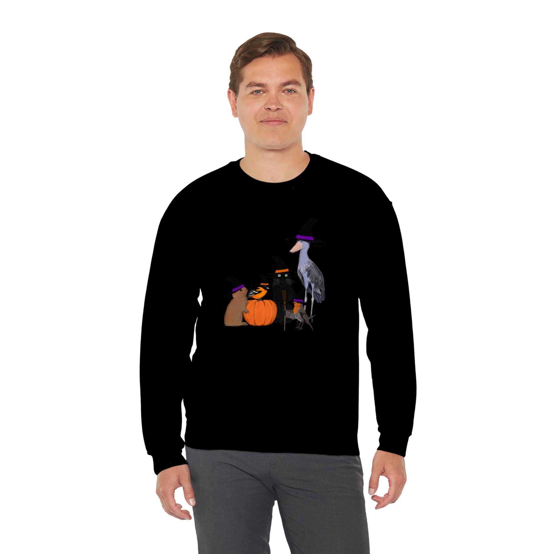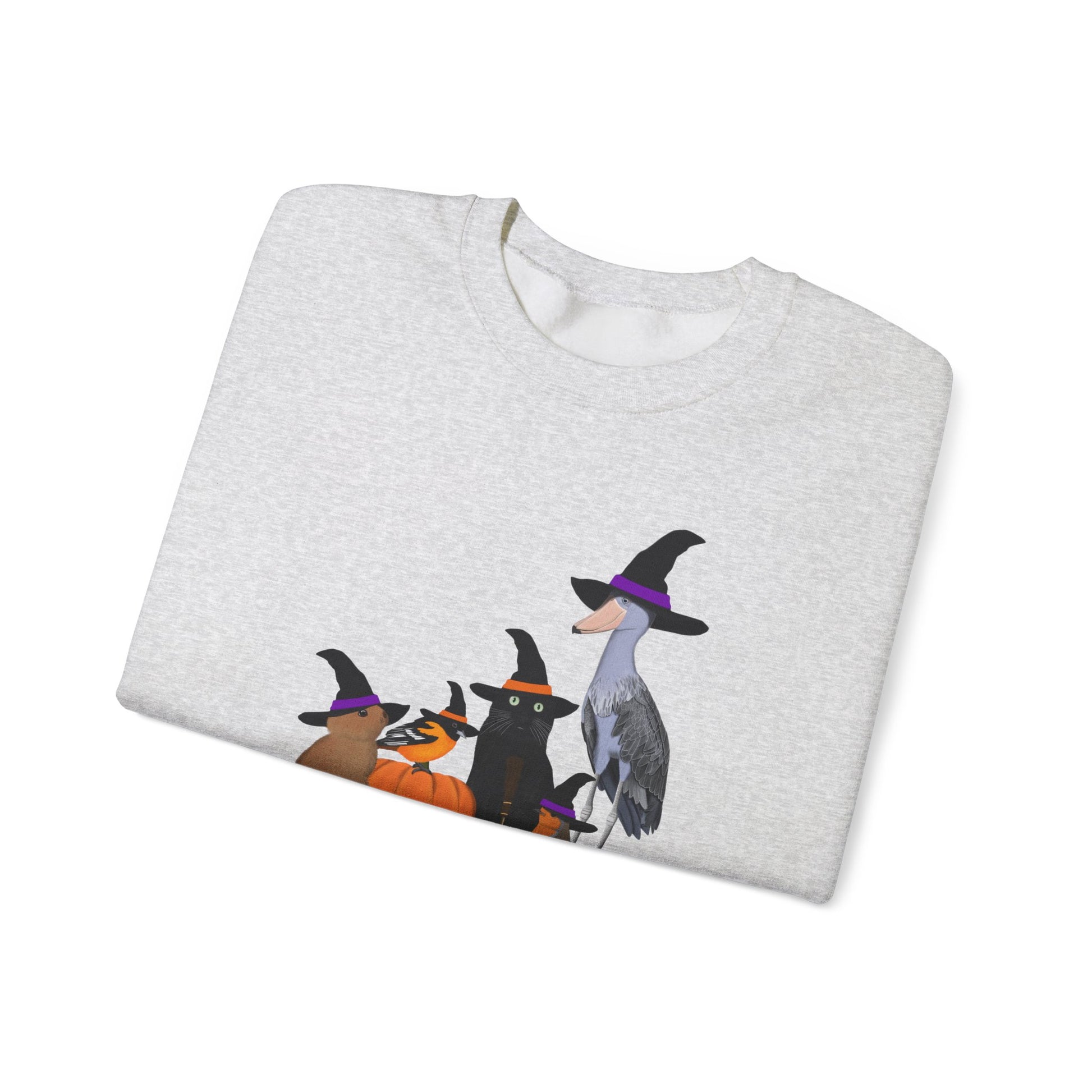 Robin Shoebill Oriole Rabbit with Cat Halloween Birds Sweatshirt