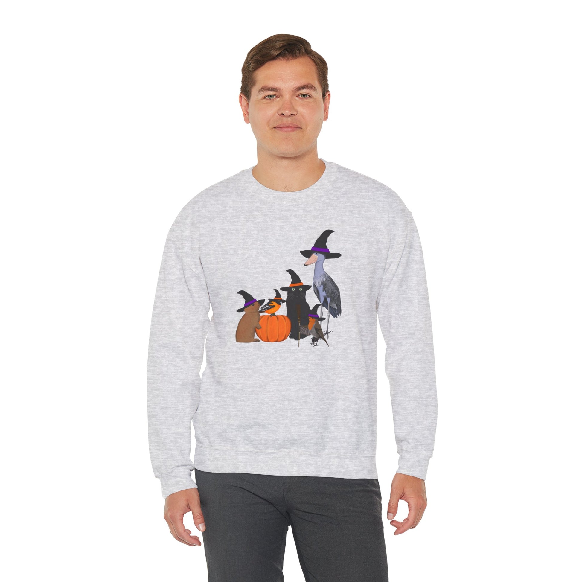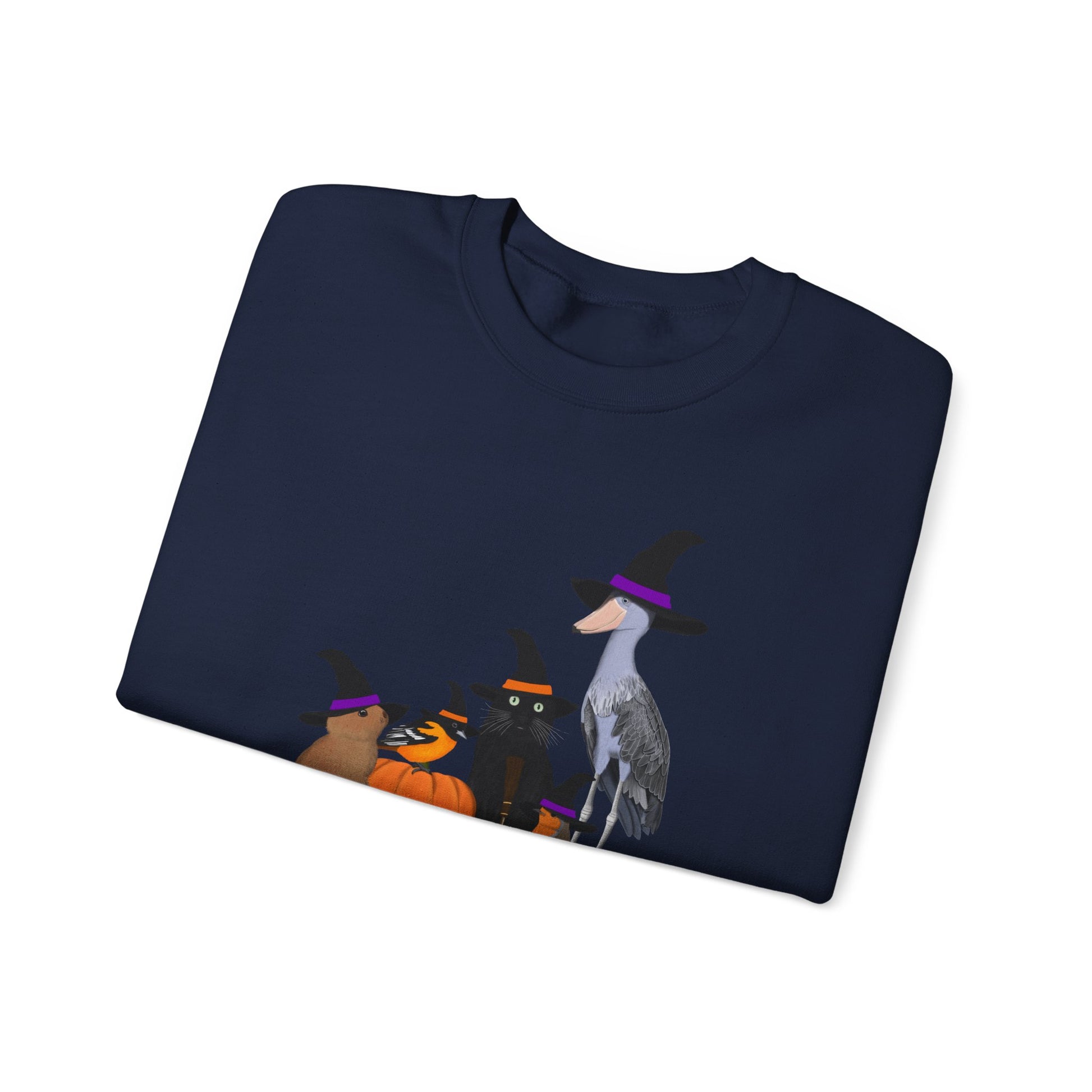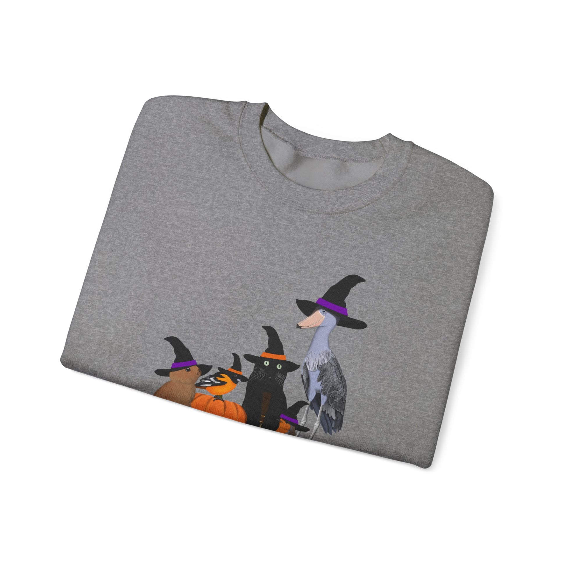 Robin Shoebill Oriole Rabbit with Cat Halloween Birds Sweatshirt