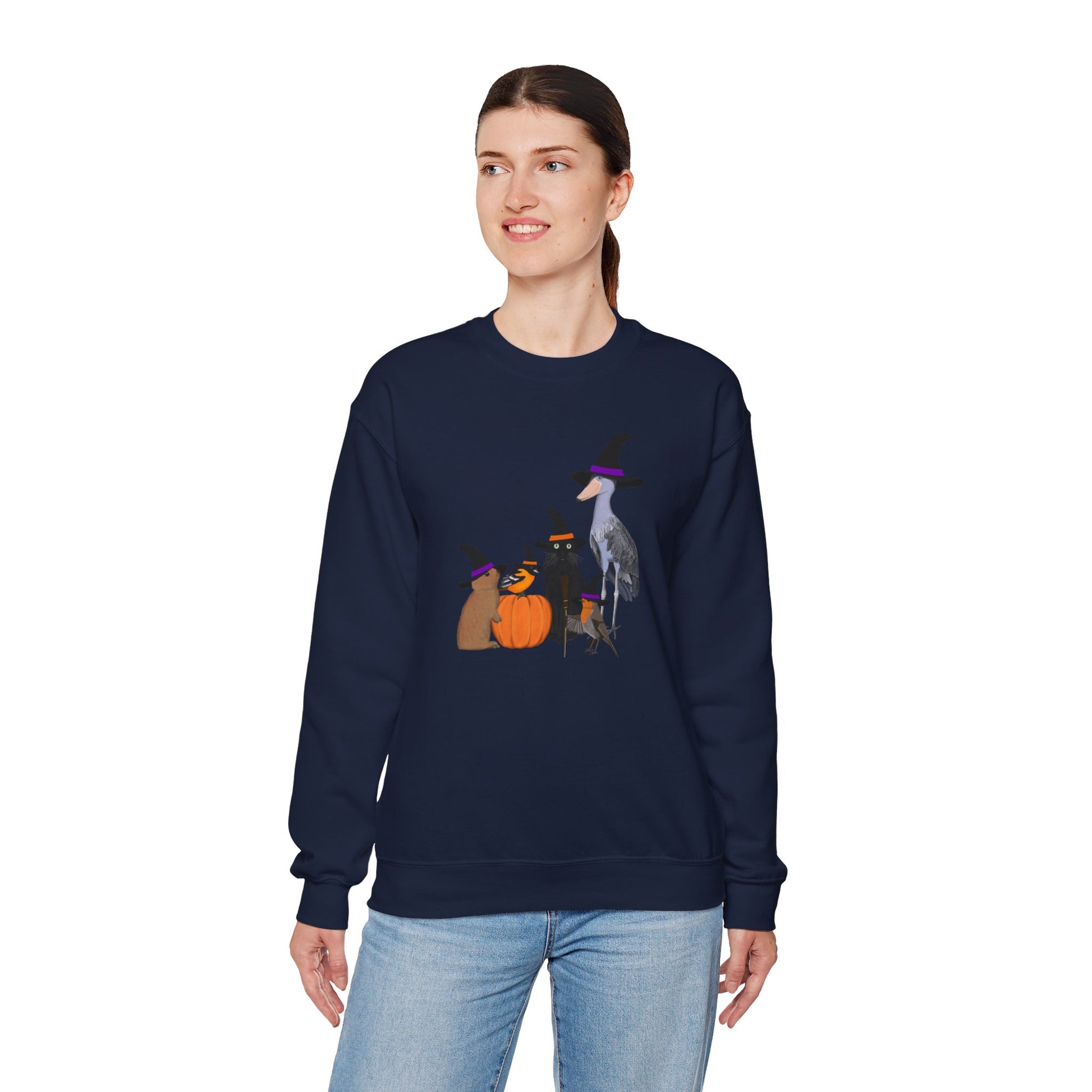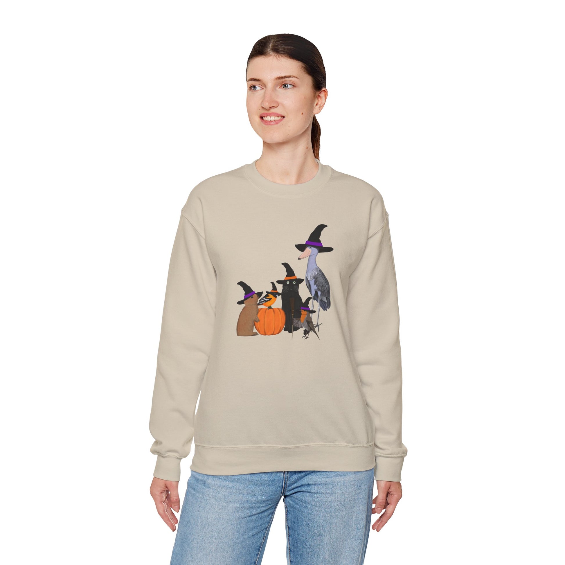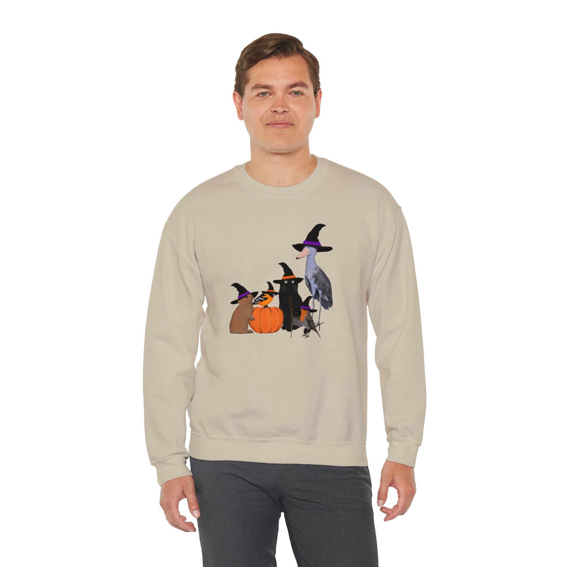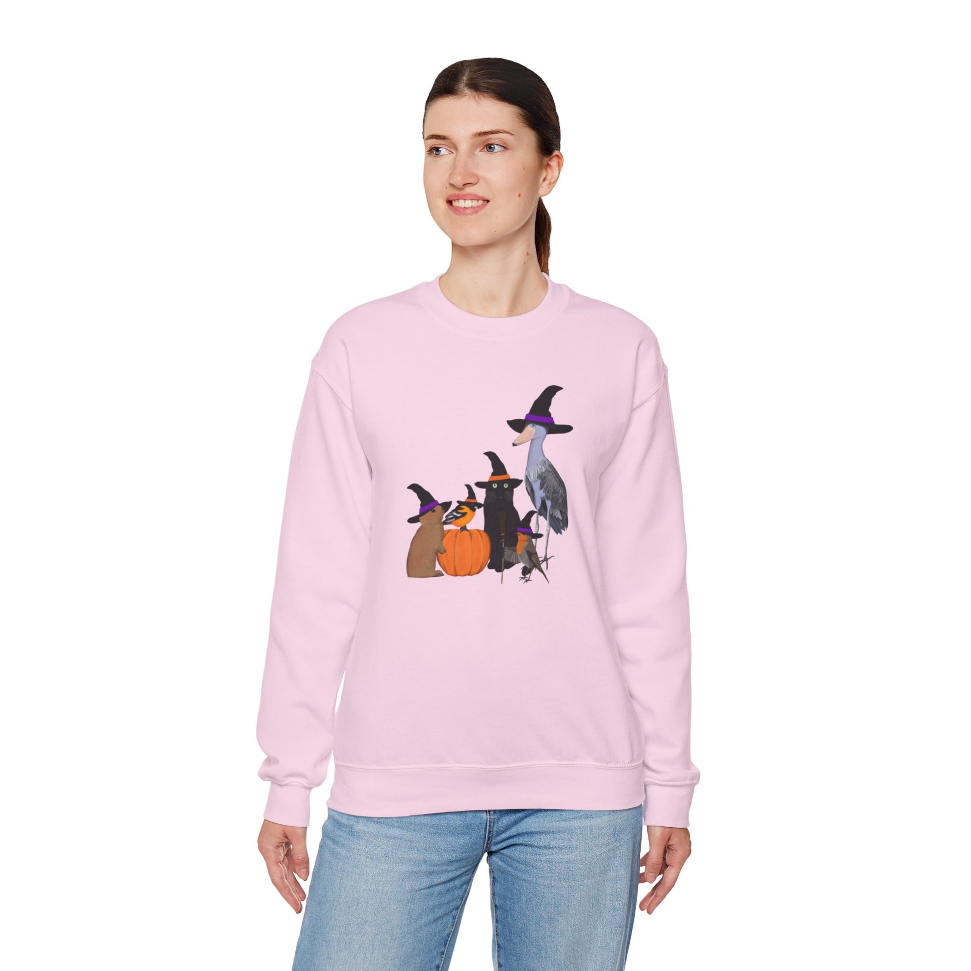 Robin Shoebill Oriole Rabbit with Cat Halloween Birds Sweatshirt