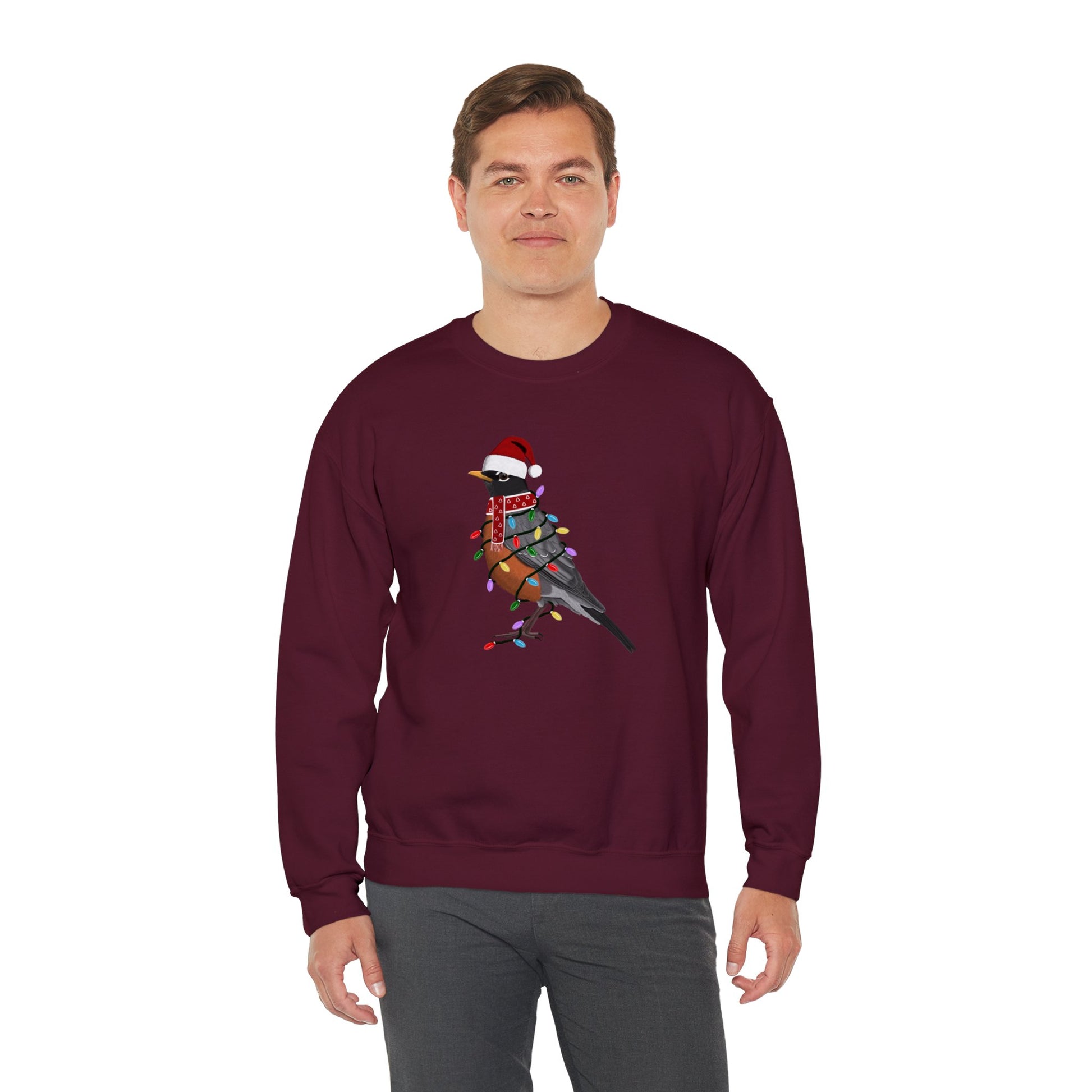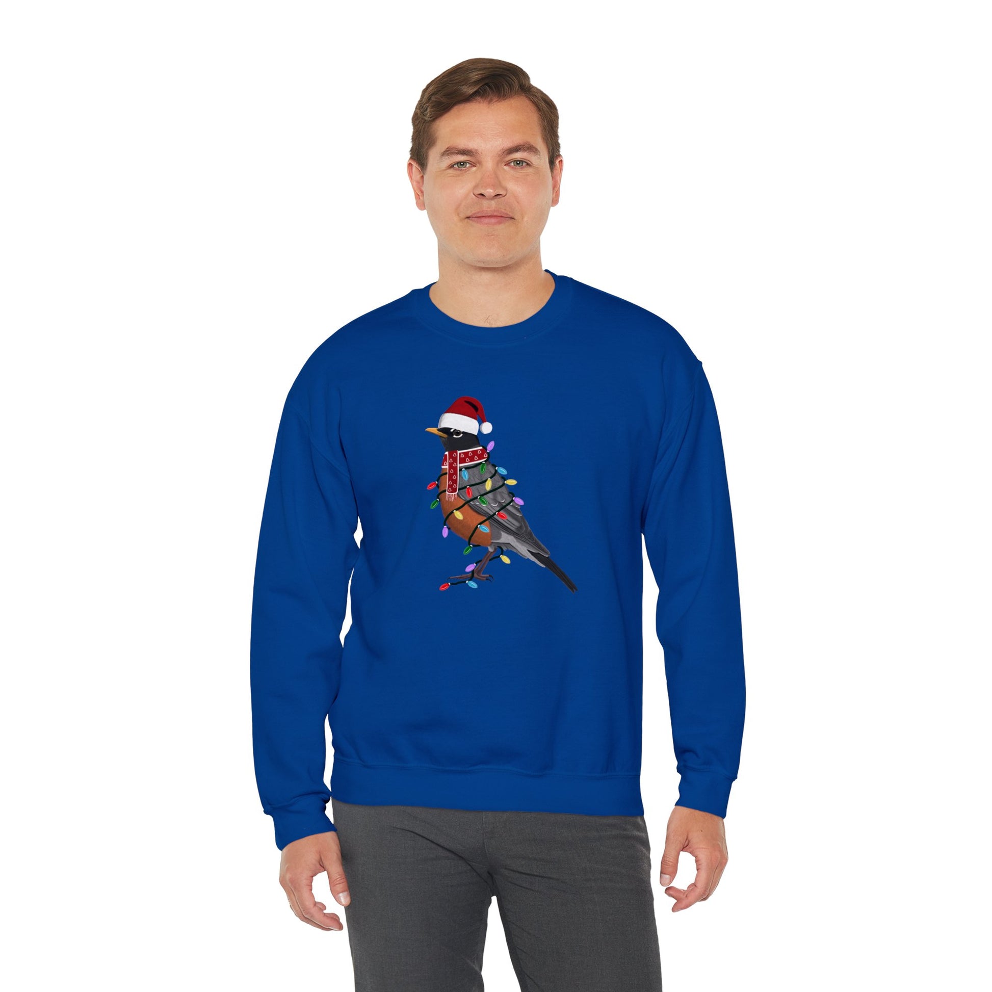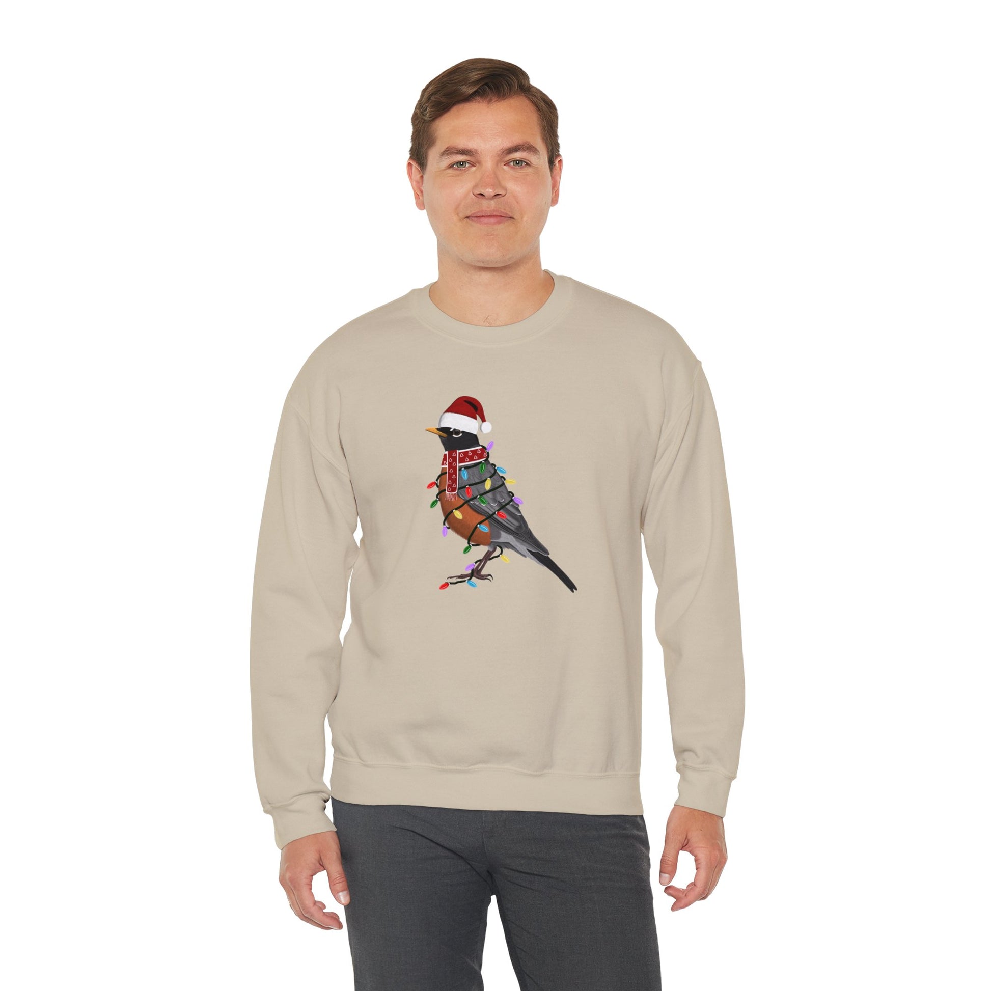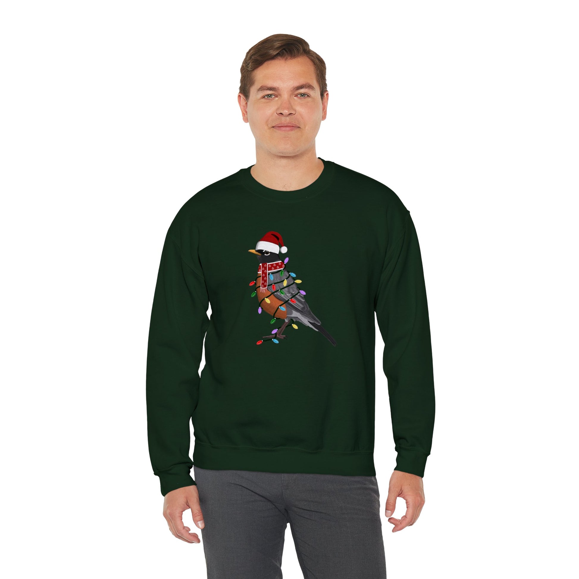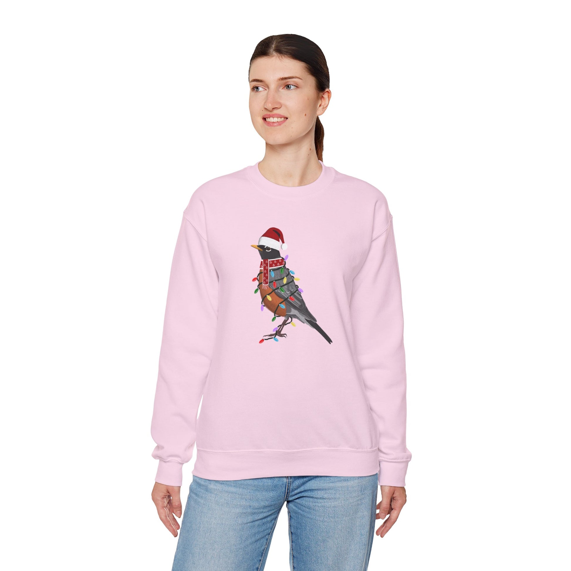 Robin with Fairy Lights Santa Claus Christmas Bird Sweatshirt