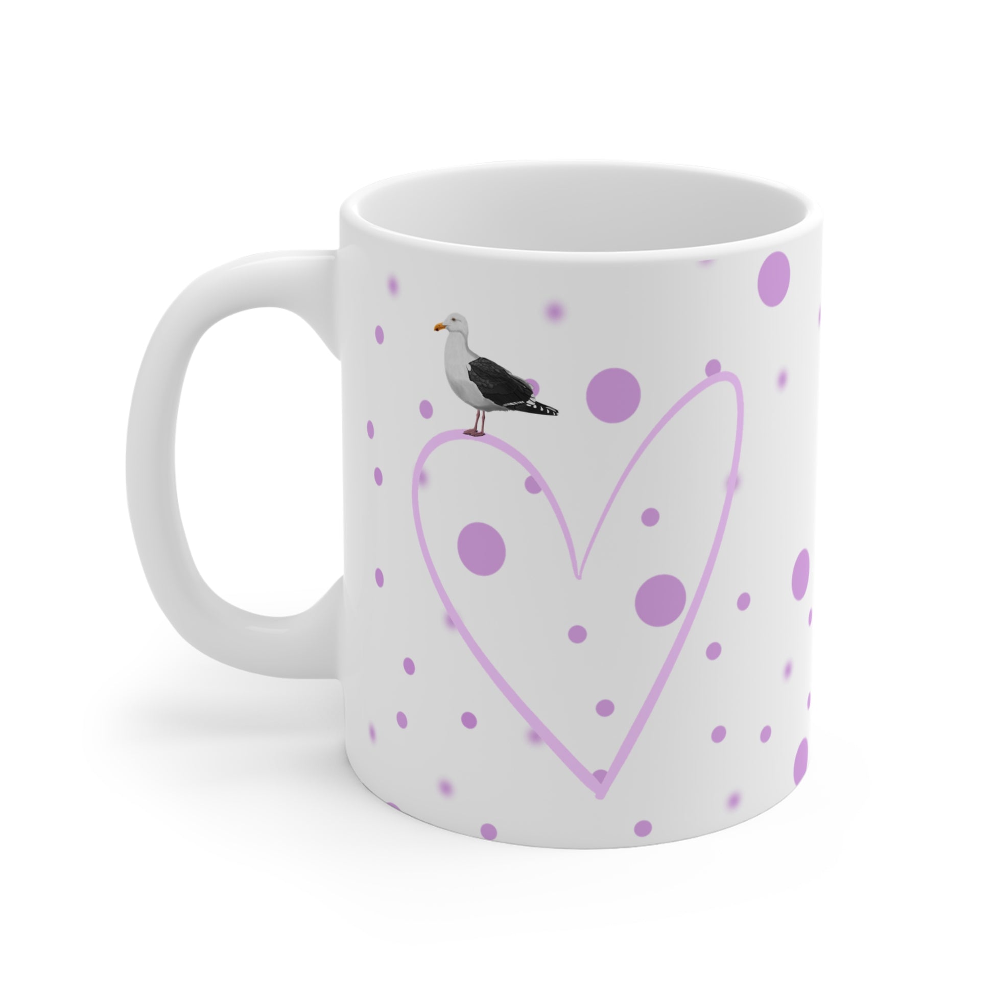 Seagull Valentine's Day Bird Mug 11oz Pink Heart