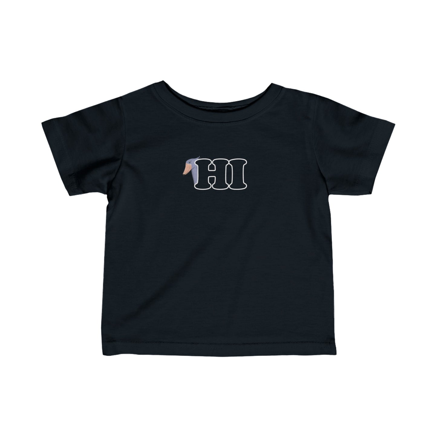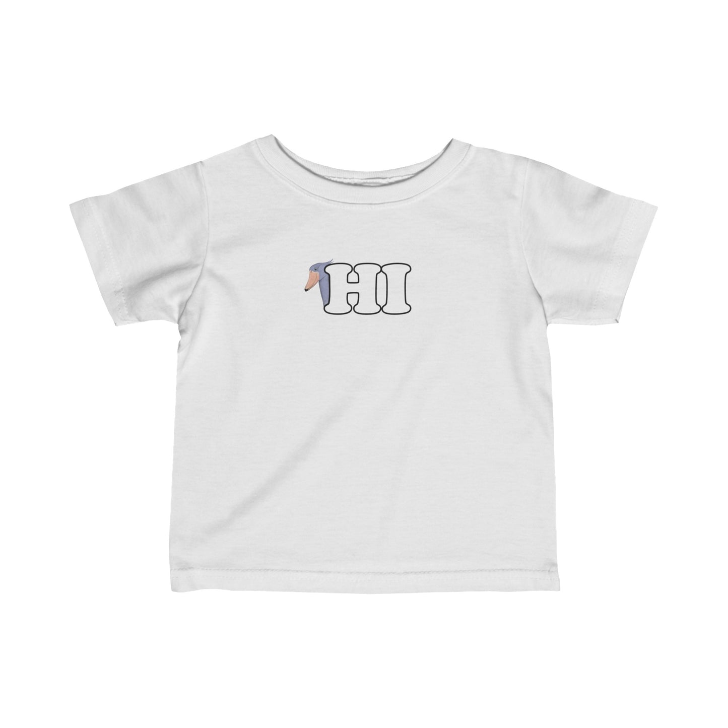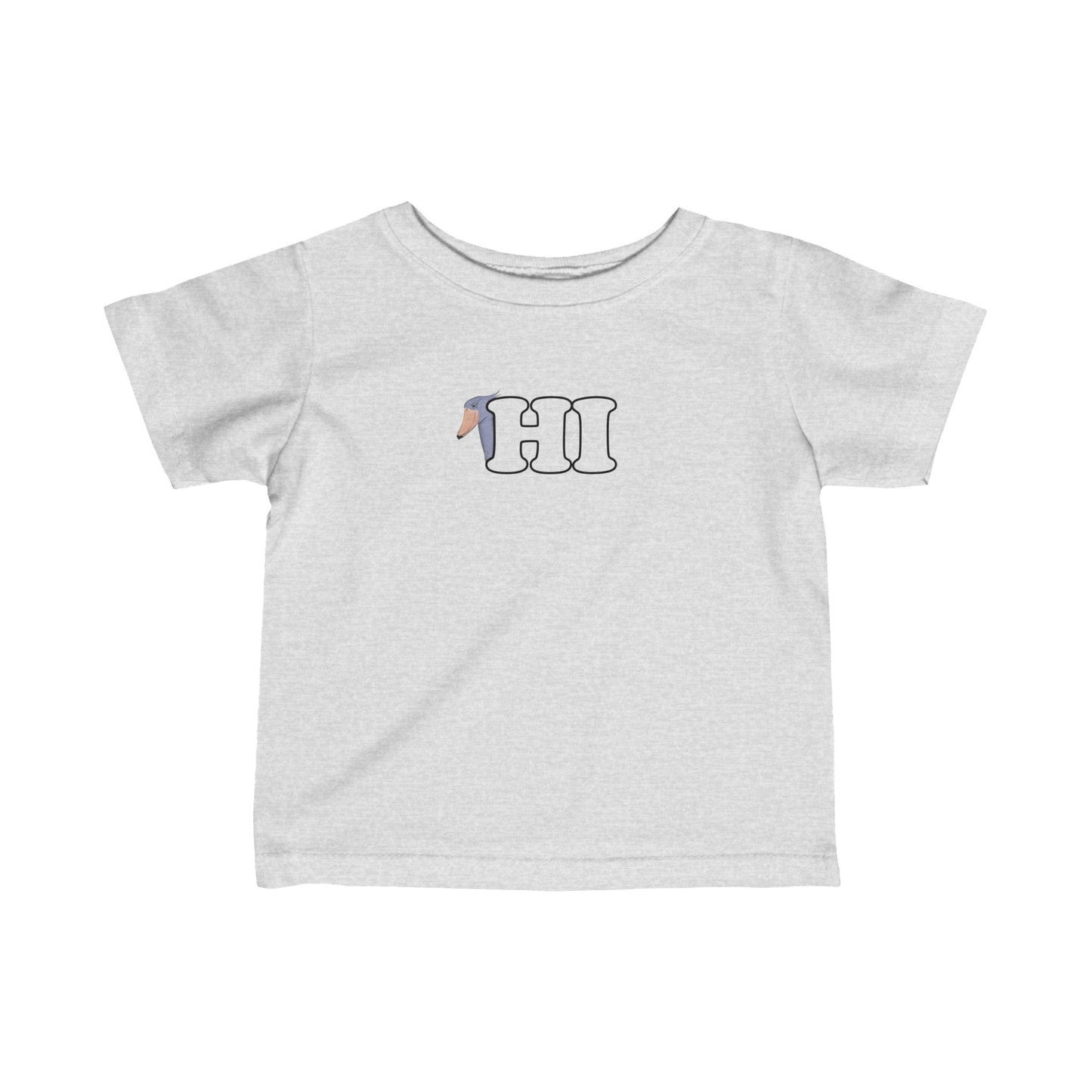 Tweet all day with our adorable Baby & Toddler Shoebill Bird T-Shirt! Perfect for your little one, this tee features a playful 'Hi' bird design for a fun and unique look. Let your little birdie stand out in style with our comfy and cute bird tees!