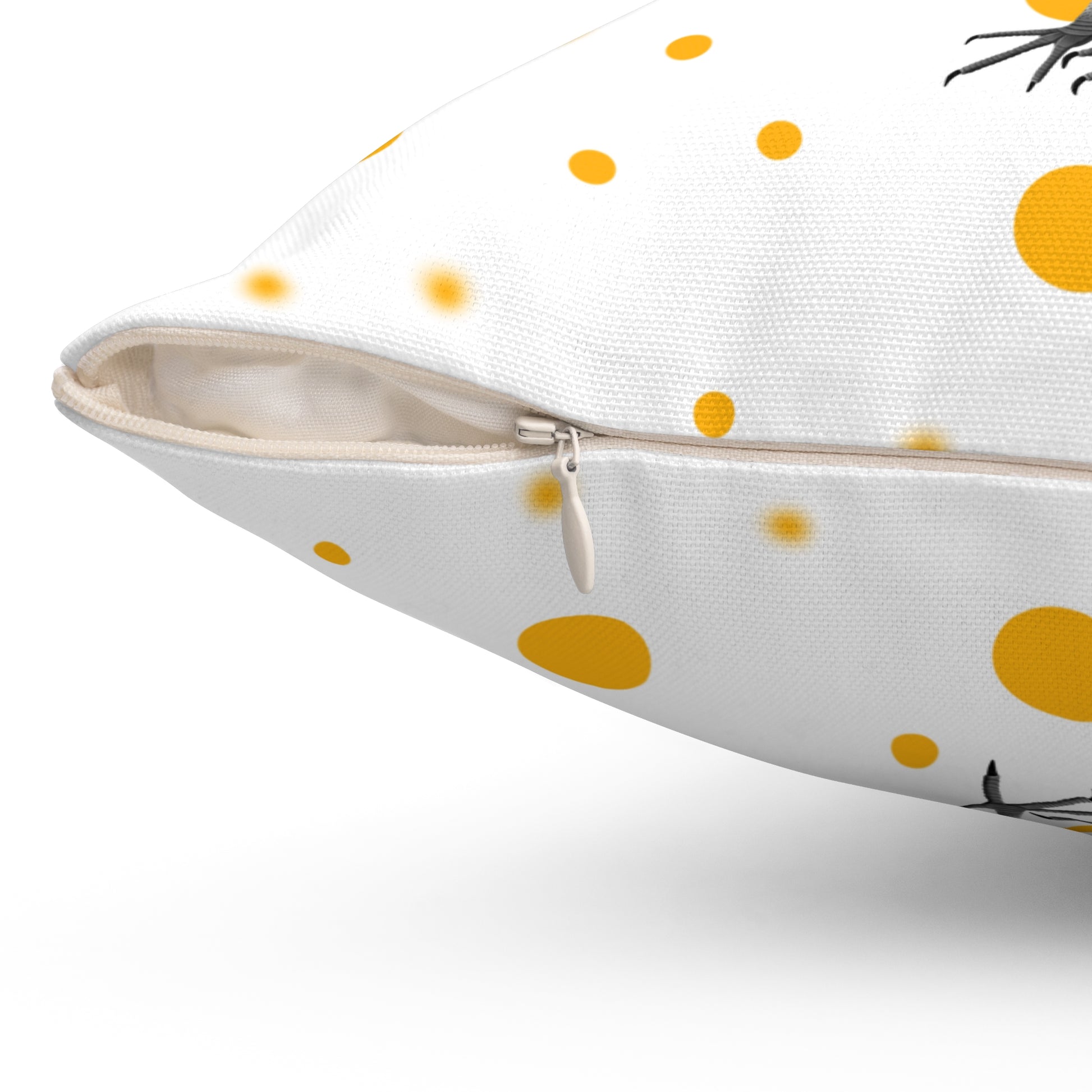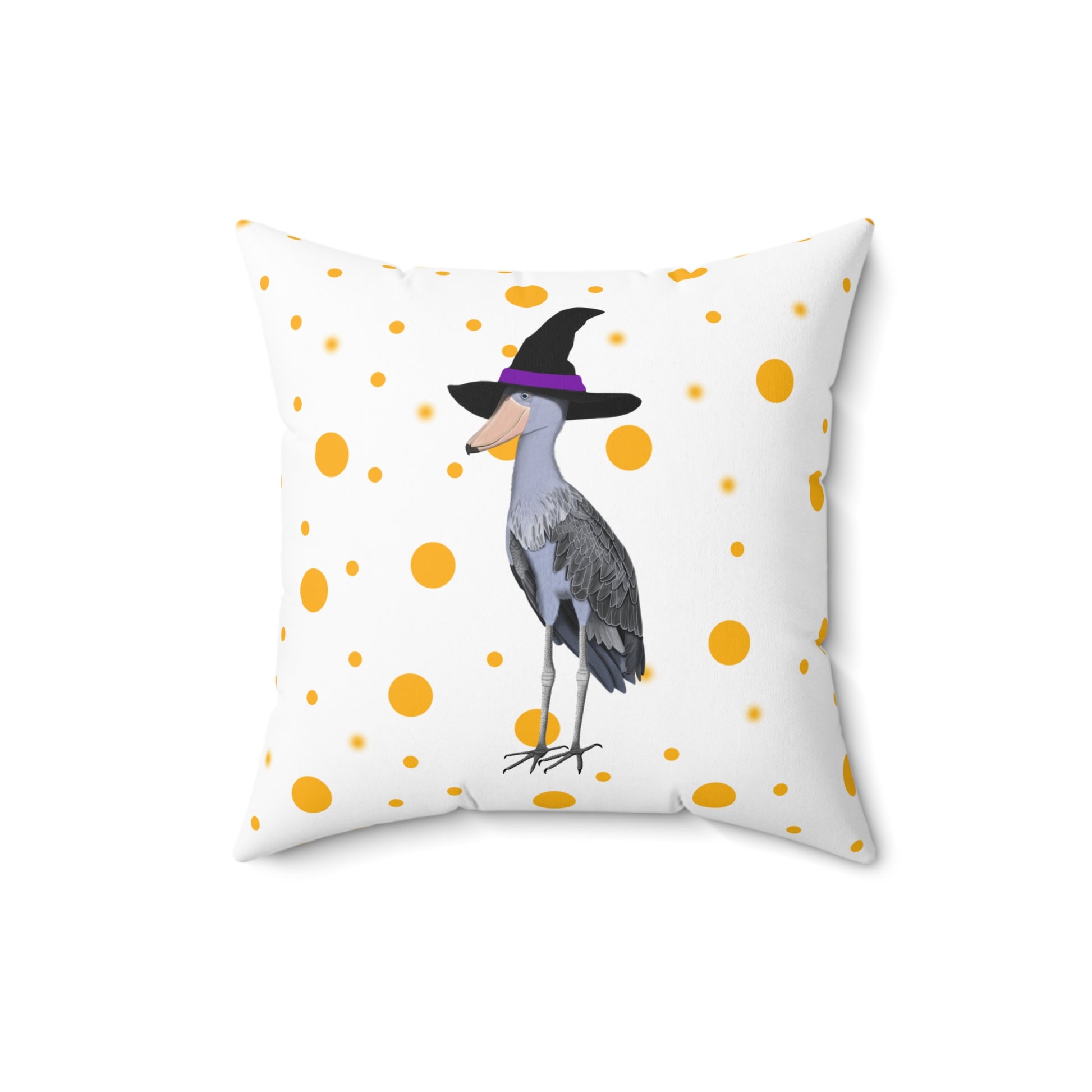 Shoebill Halloween Bird Throw Pillow White 16"x16" Orange Dots