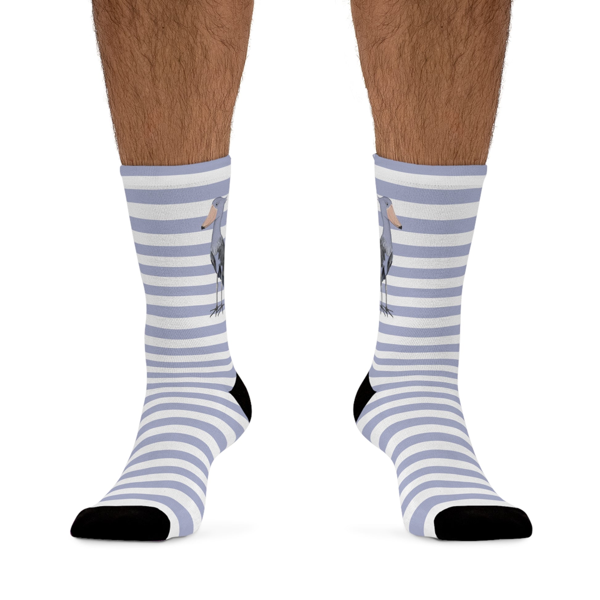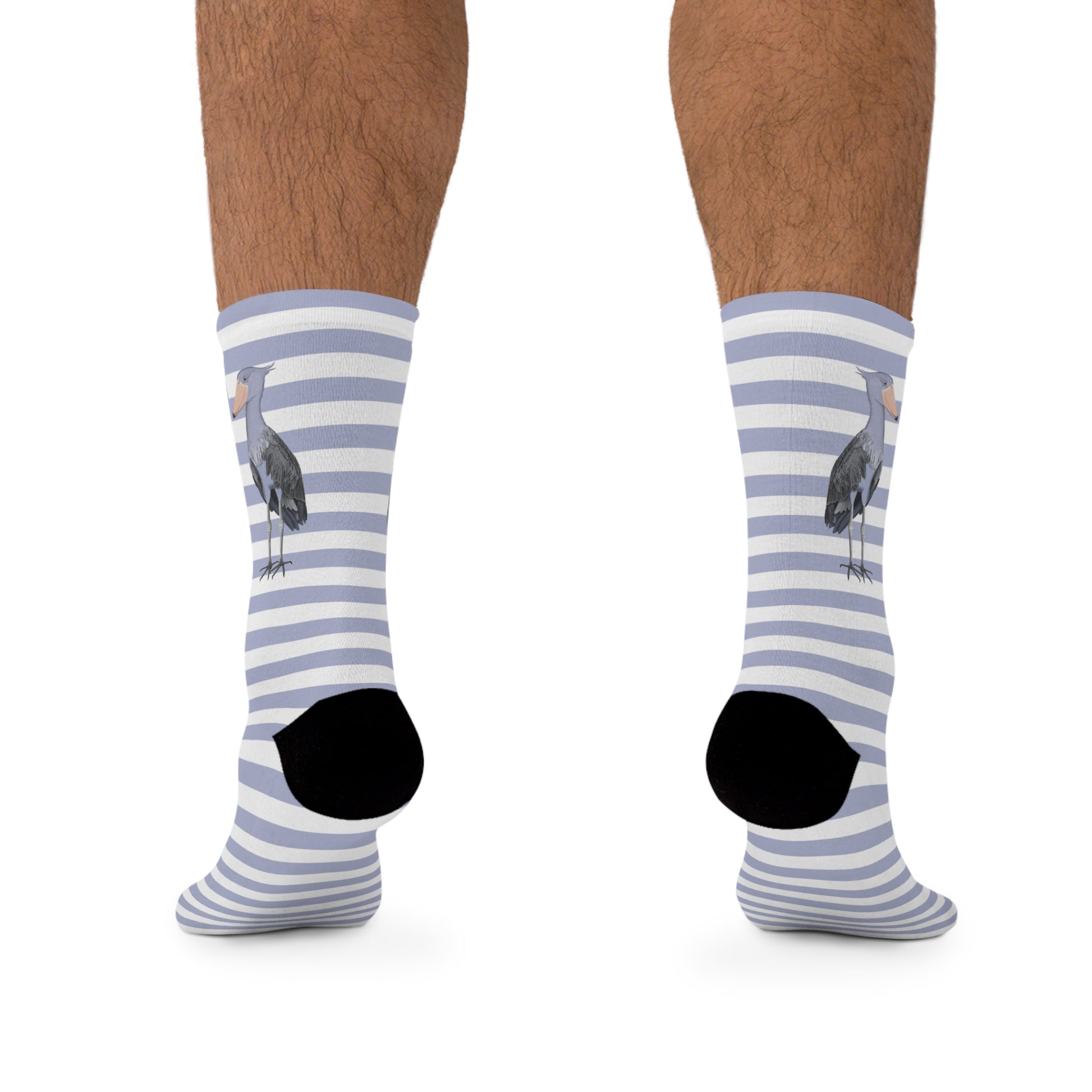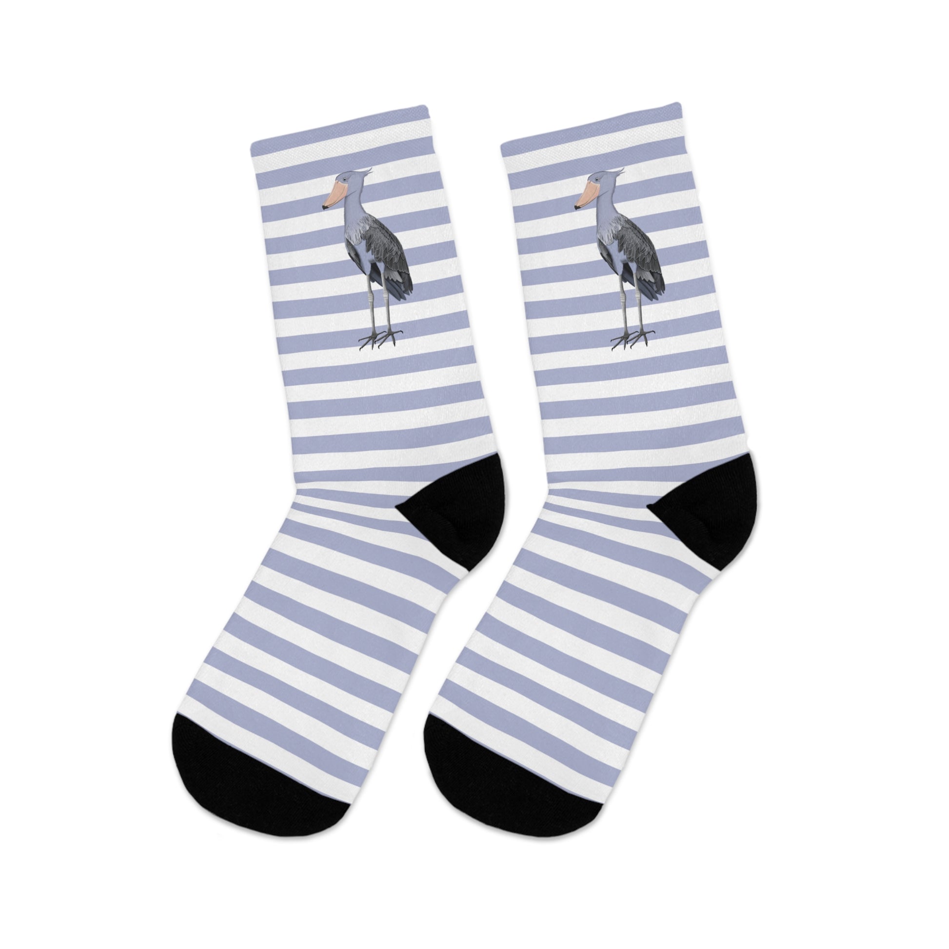 Shoebill Stripes Purple White Birding & Birdwatching Bird Socks