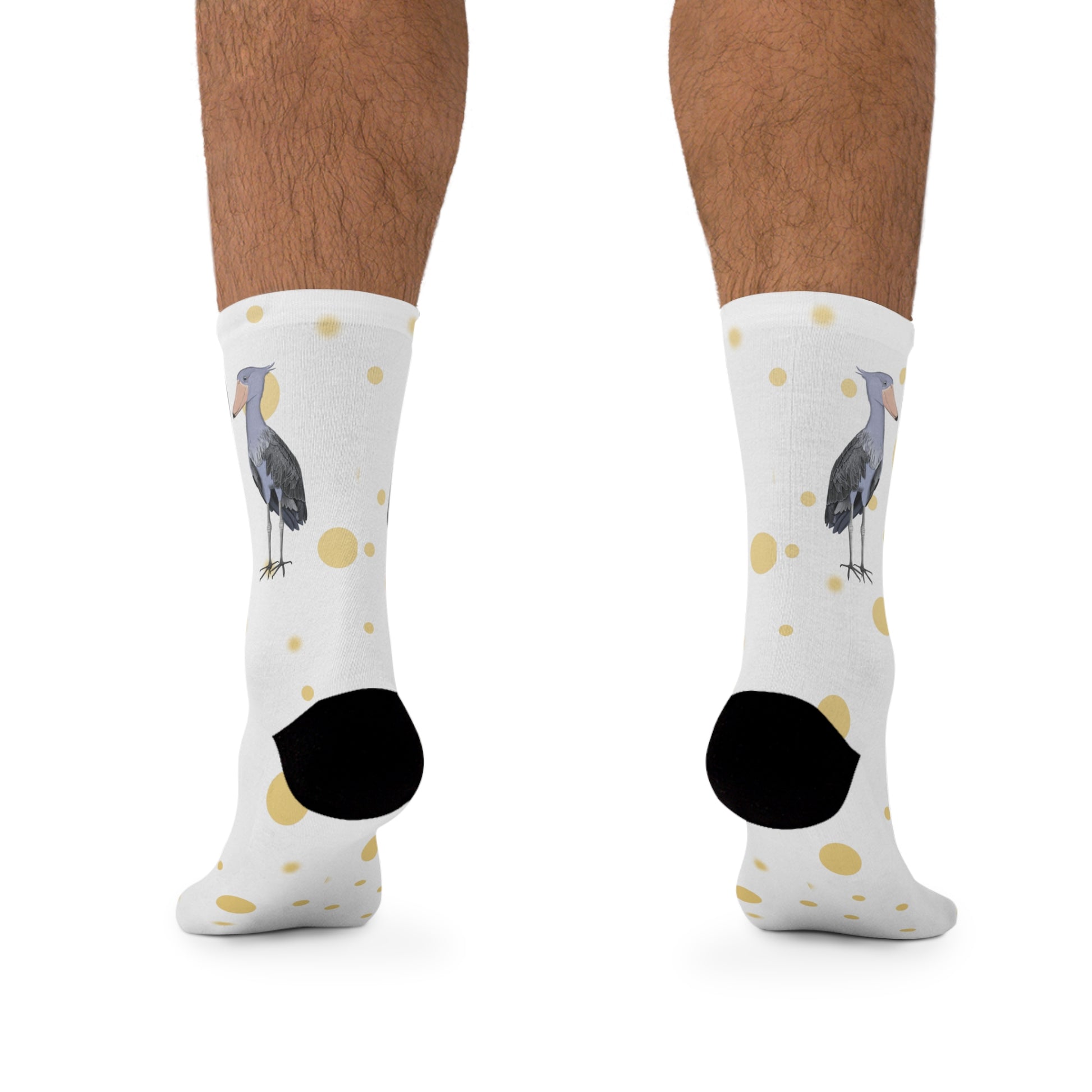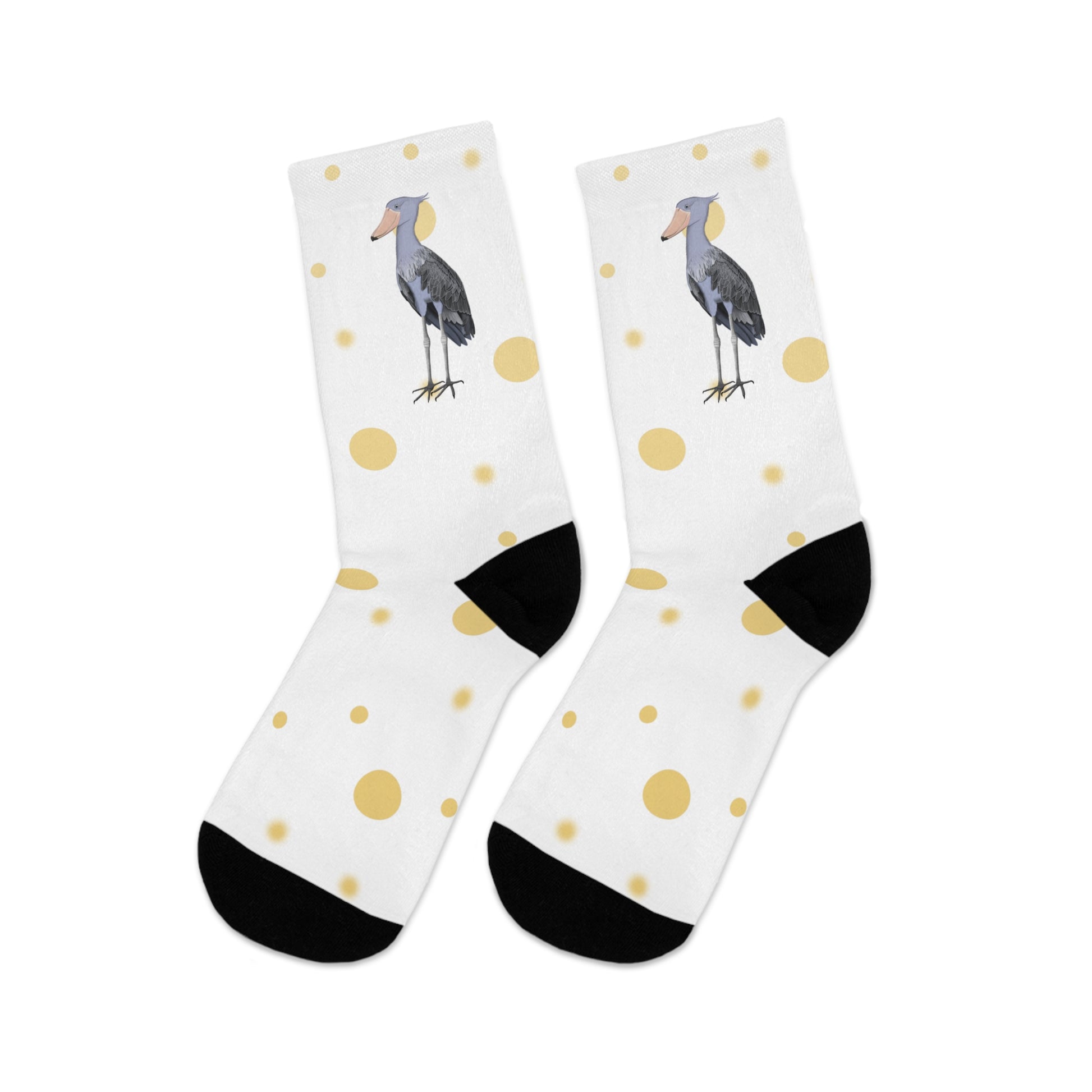 Shoebill with Golden Dots Birding & Birdwatching Bird Socks White