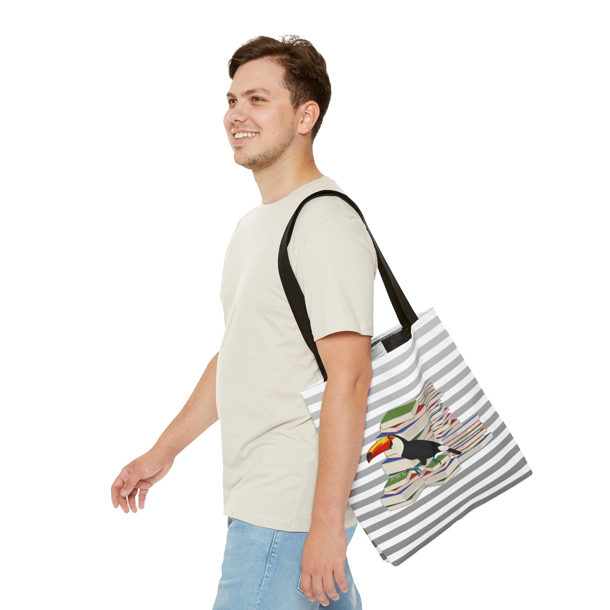 This 16"x16" tote bag features a charming Toucan bird design, perfect for carrying your books and essentials. Made with durable material, this tote bag is both functional and stylish. Perfect for everyday use or as a thoughtful gift for any bird and book lover.
