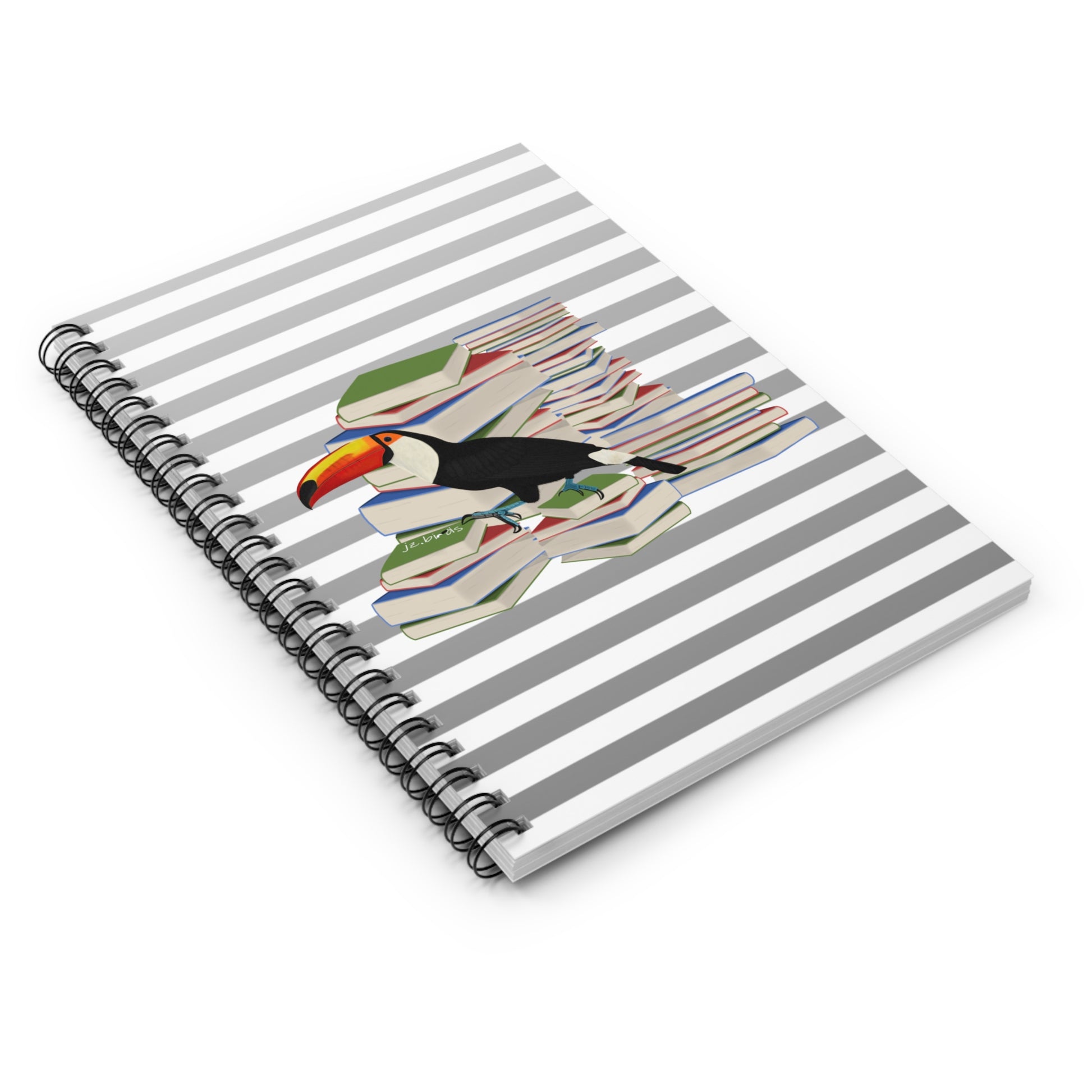 Toucan Bird with Books Birdlover Bookworm Spiral Notebook Ruled Line
