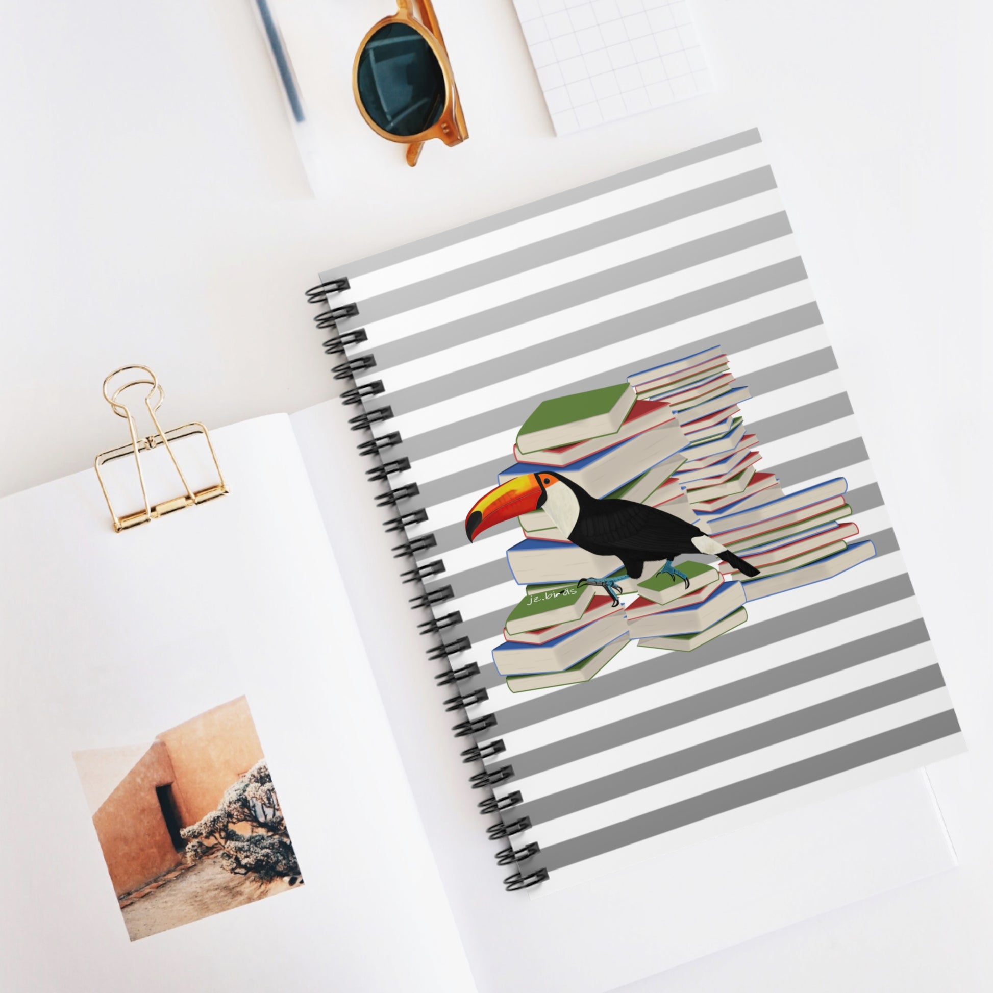 This spiral Toucan Bird with Books notebook is the ultimate companion for bird lovers and bookworms alike. With a ruled line design, it provides a perfect platform for note-taking and jotting down observations on your feathered friends. Let this notebook capture every detail of your avian adventures.