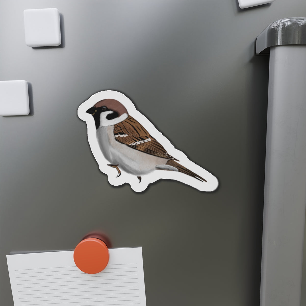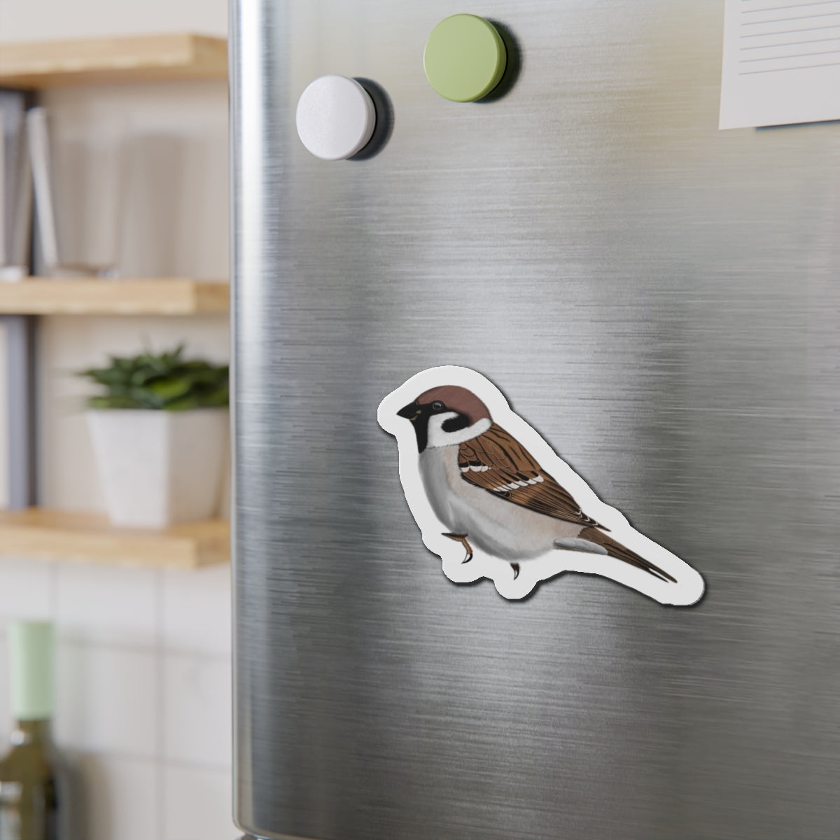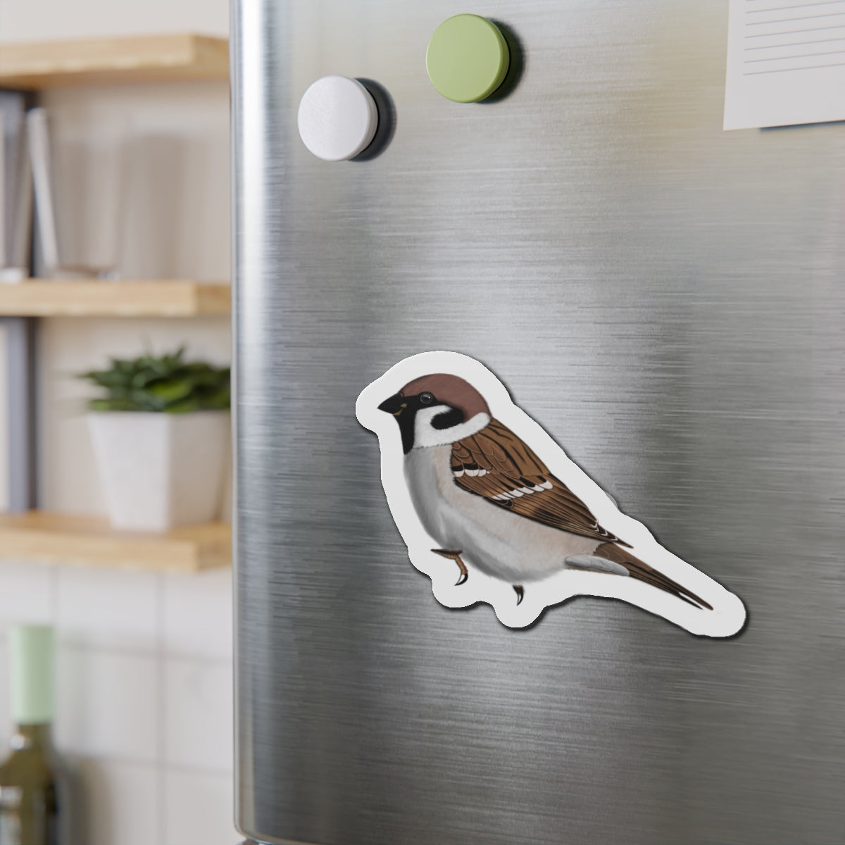This magnet features a beautiful Tree Sparrow bird illustration. It serves as both a useful tool and a lovely decoration for any home or office space. Made with high-quality materials, it is sure to add a touch of elegance to any setting.