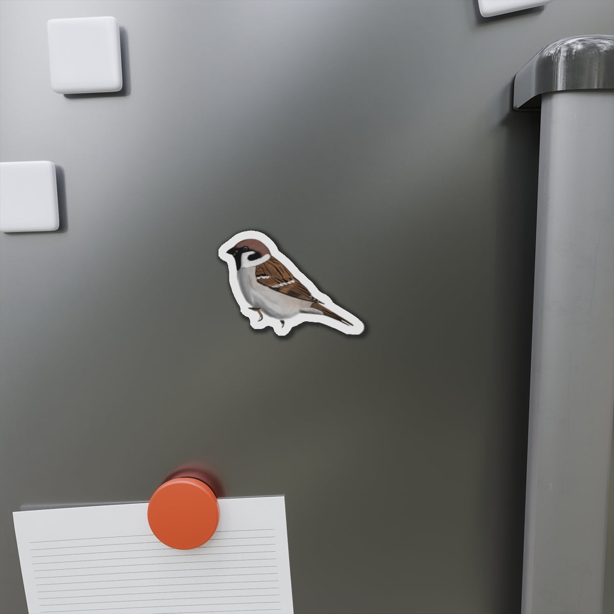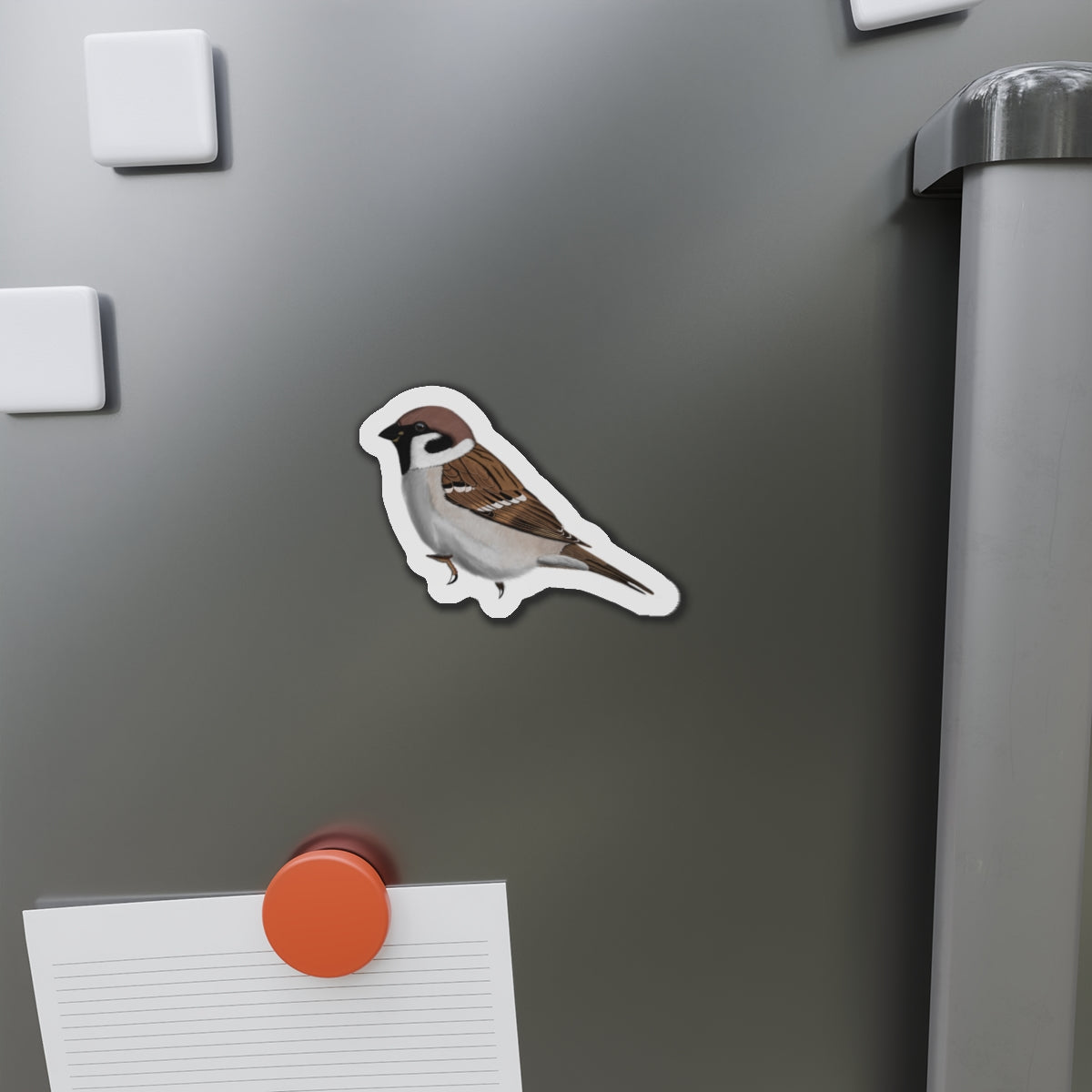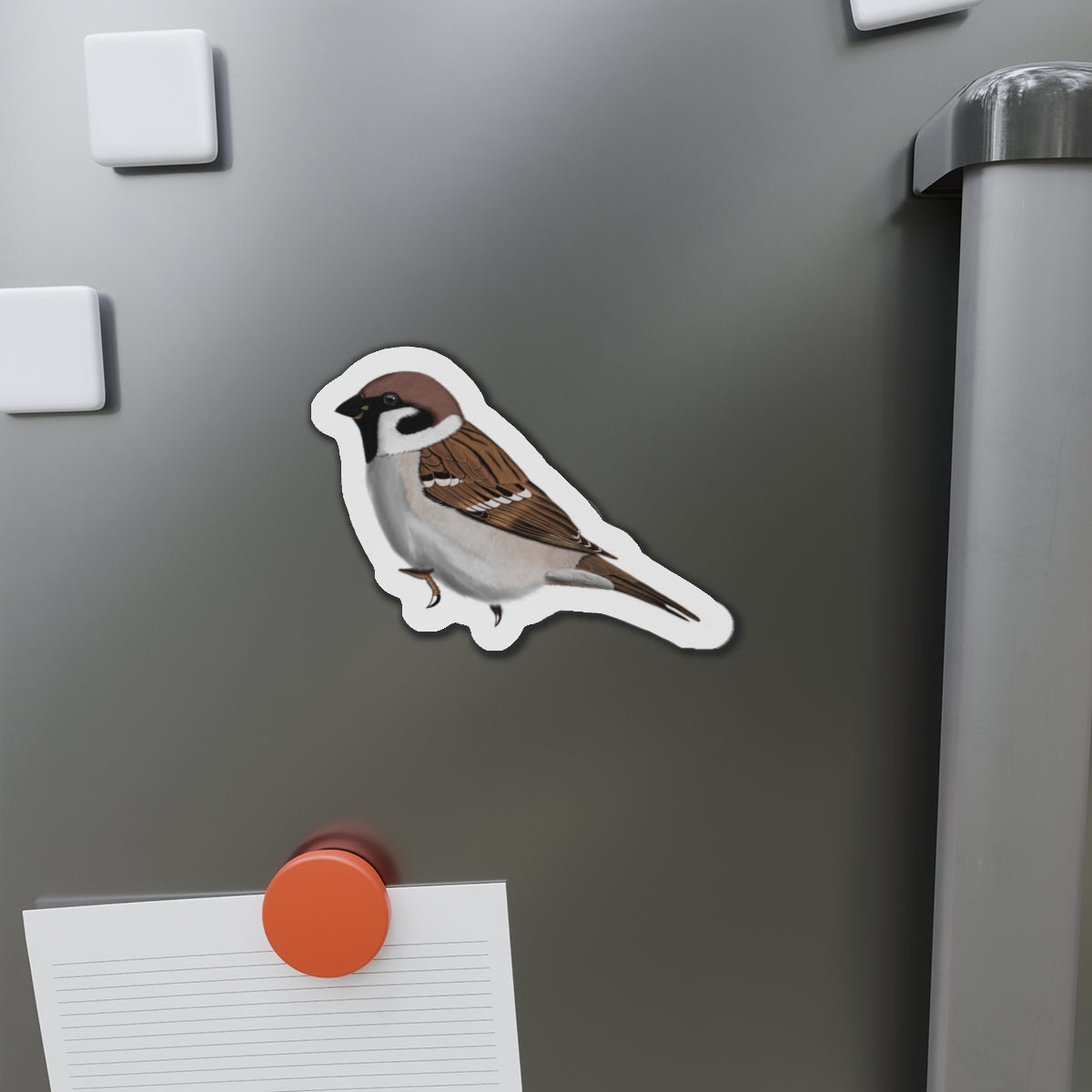 This magnet features a beautiful Tree Sparrow bird illustration. It serves as both a useful tool and a lovely decoration for any home or office space. Made with high-quality materials, it is sure to add a touch of elegance to any setting.