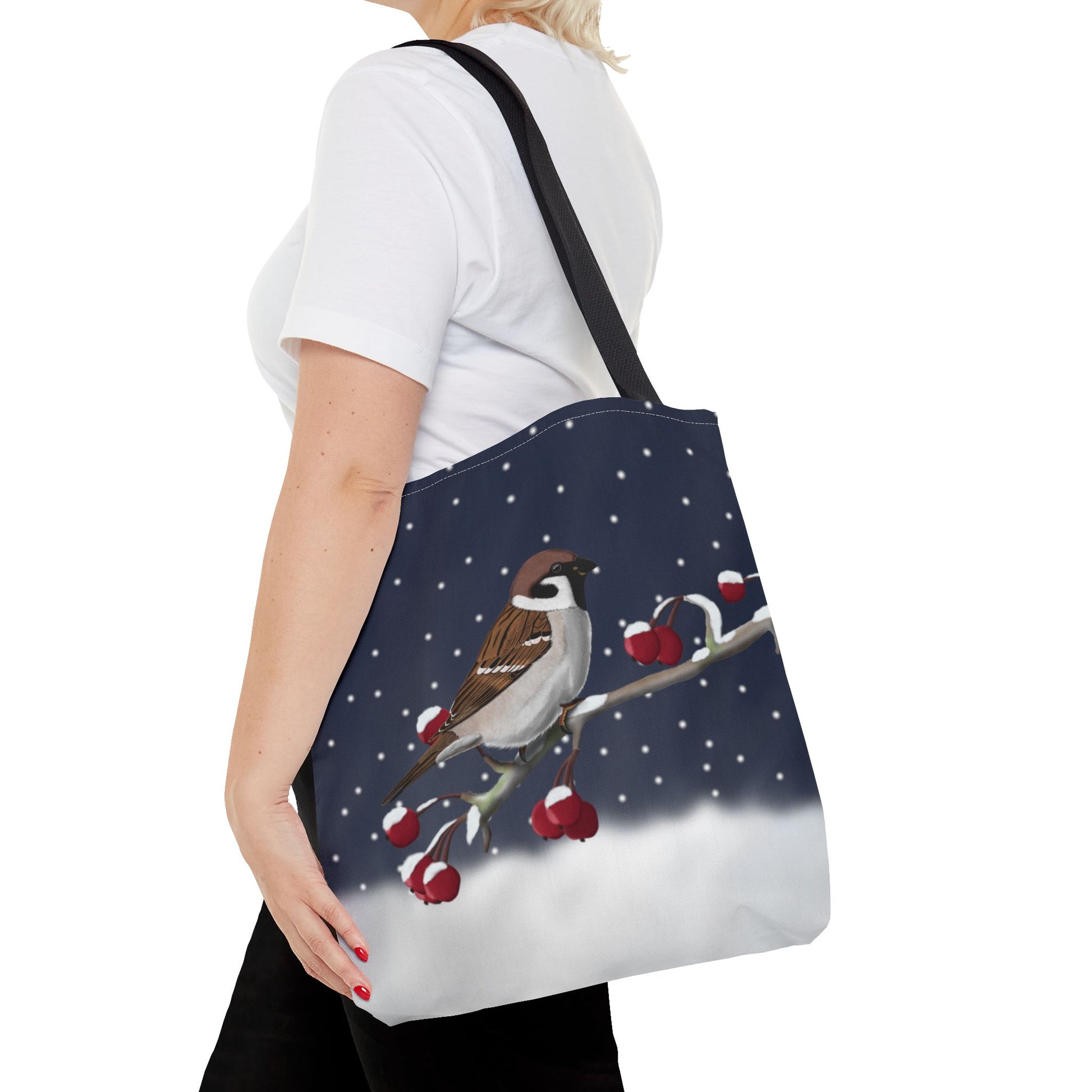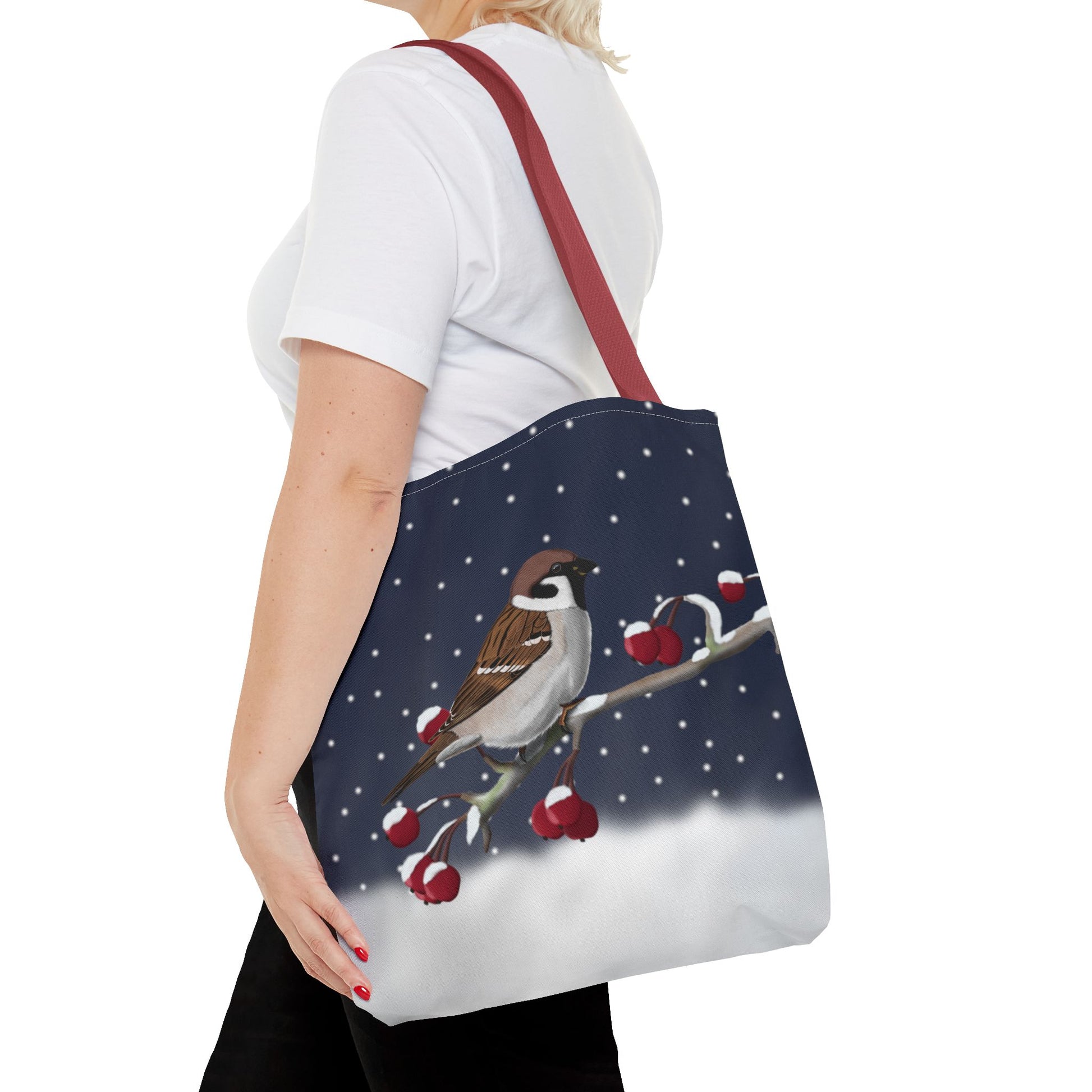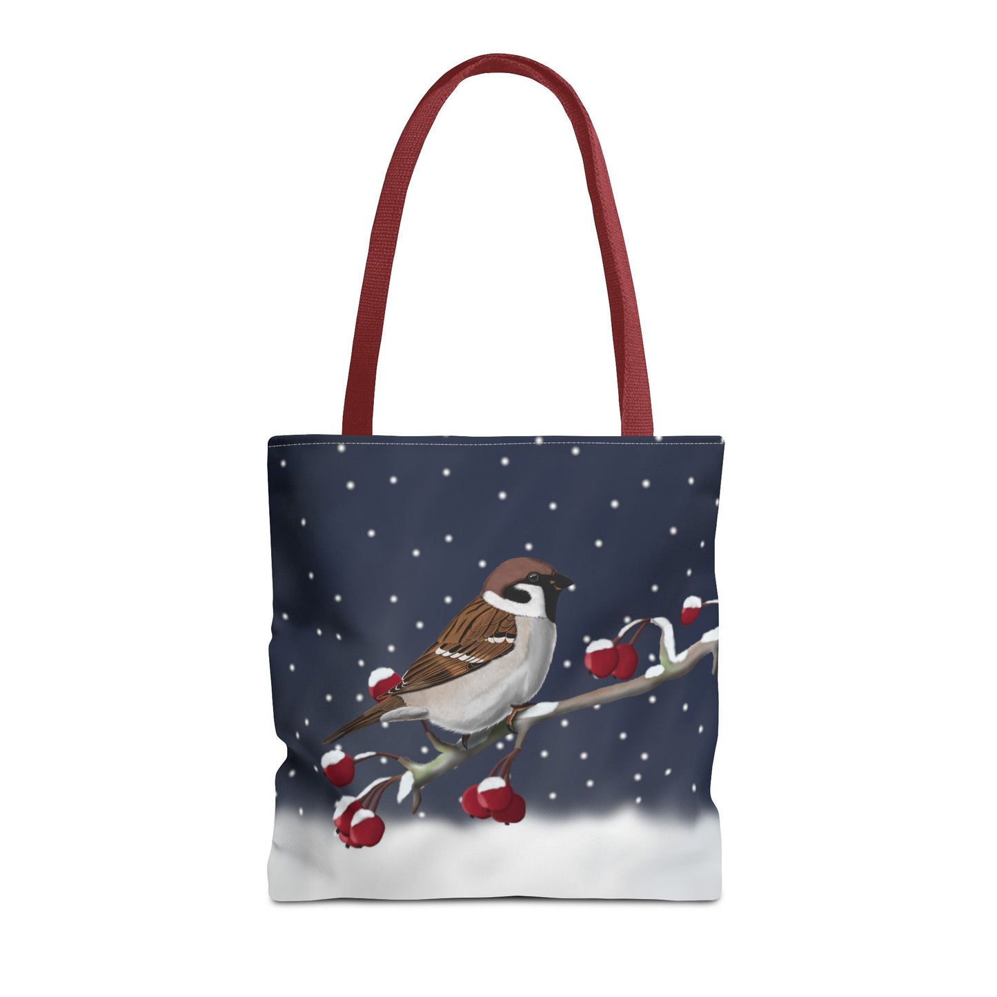 Experience the joy of birdwatching with our Tree Sparrow on a Winter Branch Christmas Bird Tote Bag! Measuring 16"x16", this stylish bag features a vibrant Christmas design and is perfect for carrying all your birdwatching essentials. Whether you're a seasoned birder or just starting out, this bag is a must-have for all bird enthusiasts.
