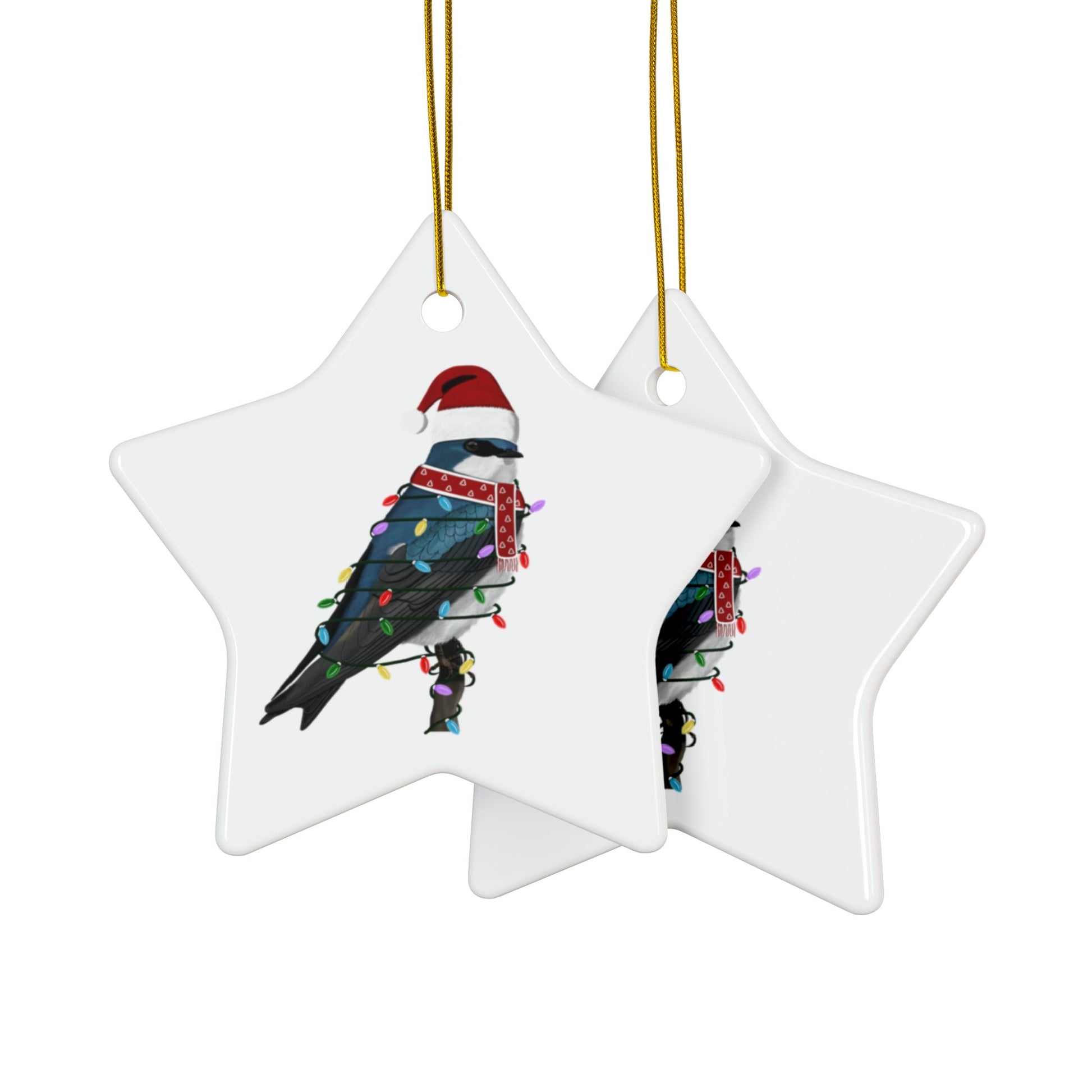 Tree Swallow as Santa Ceramic Bird Christmas Ornament | Durable Double-Sided Bird Lover Decor