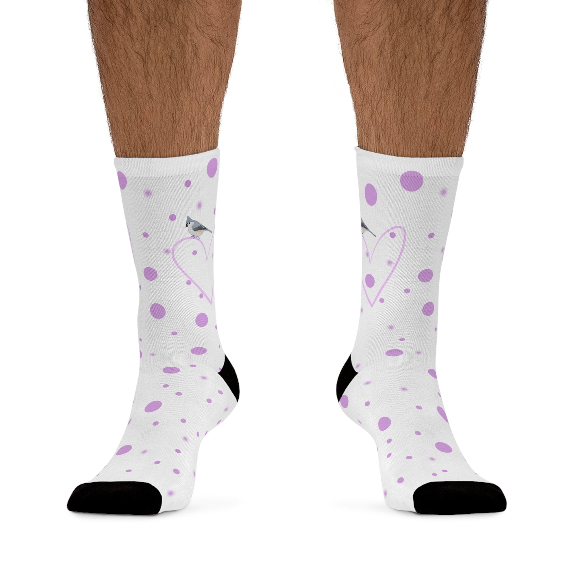 Tufted Titmouse Valentine's Day Pink Heart and Dots Bird Socks White