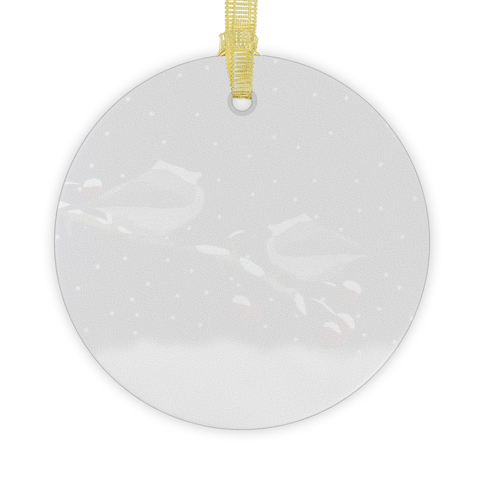 Willow Titmice on a Winter Branch Christmas Bird Glass Ornament